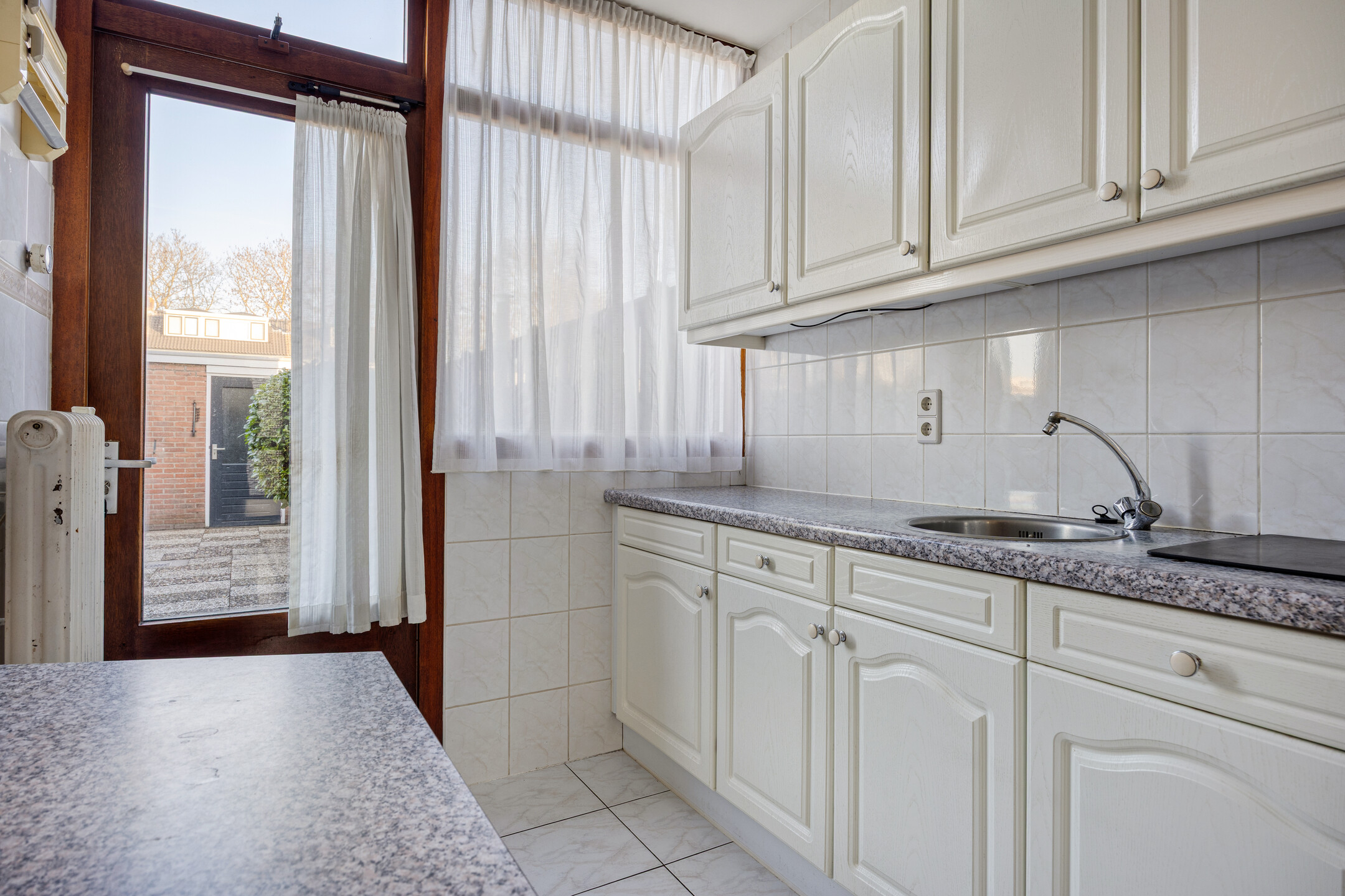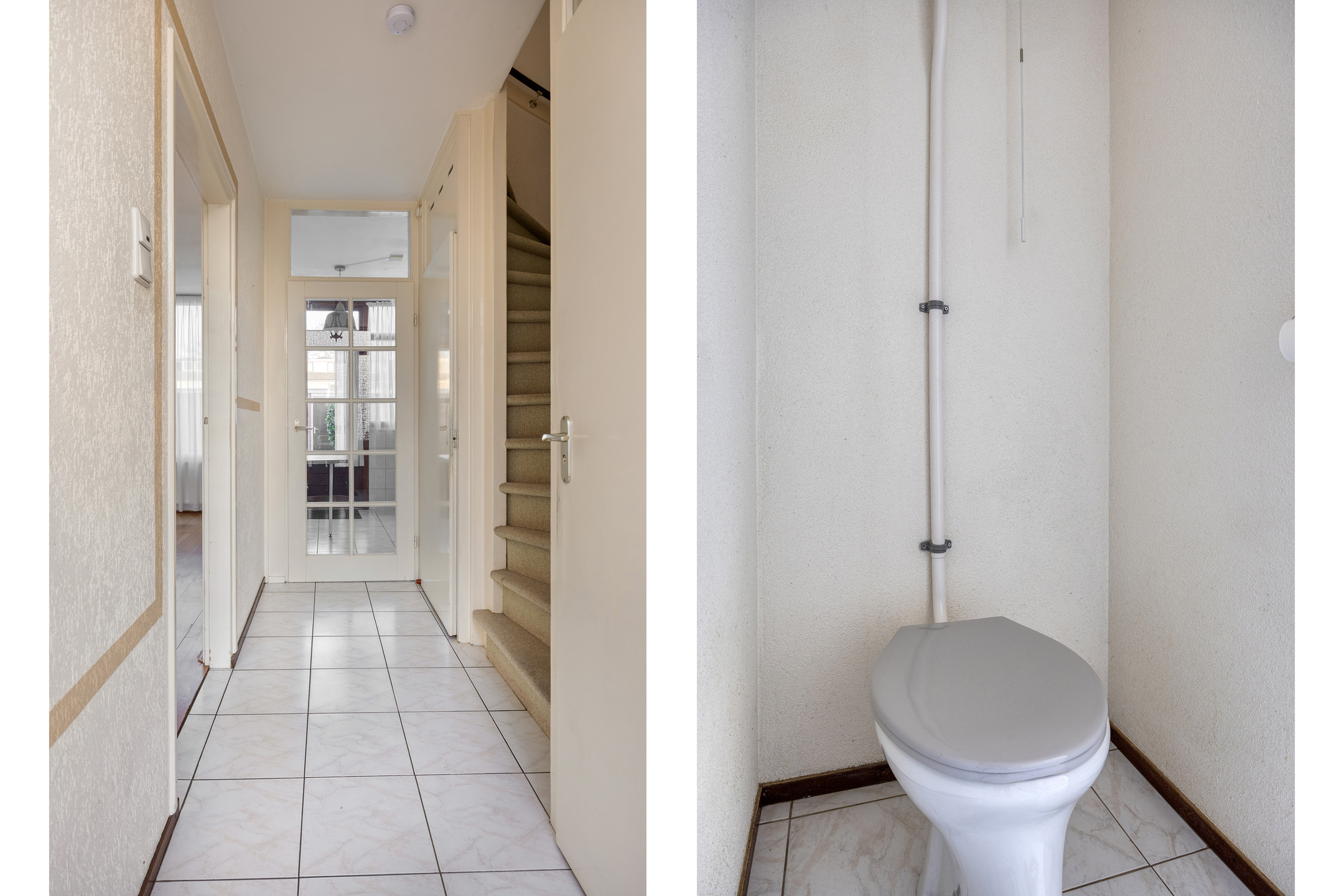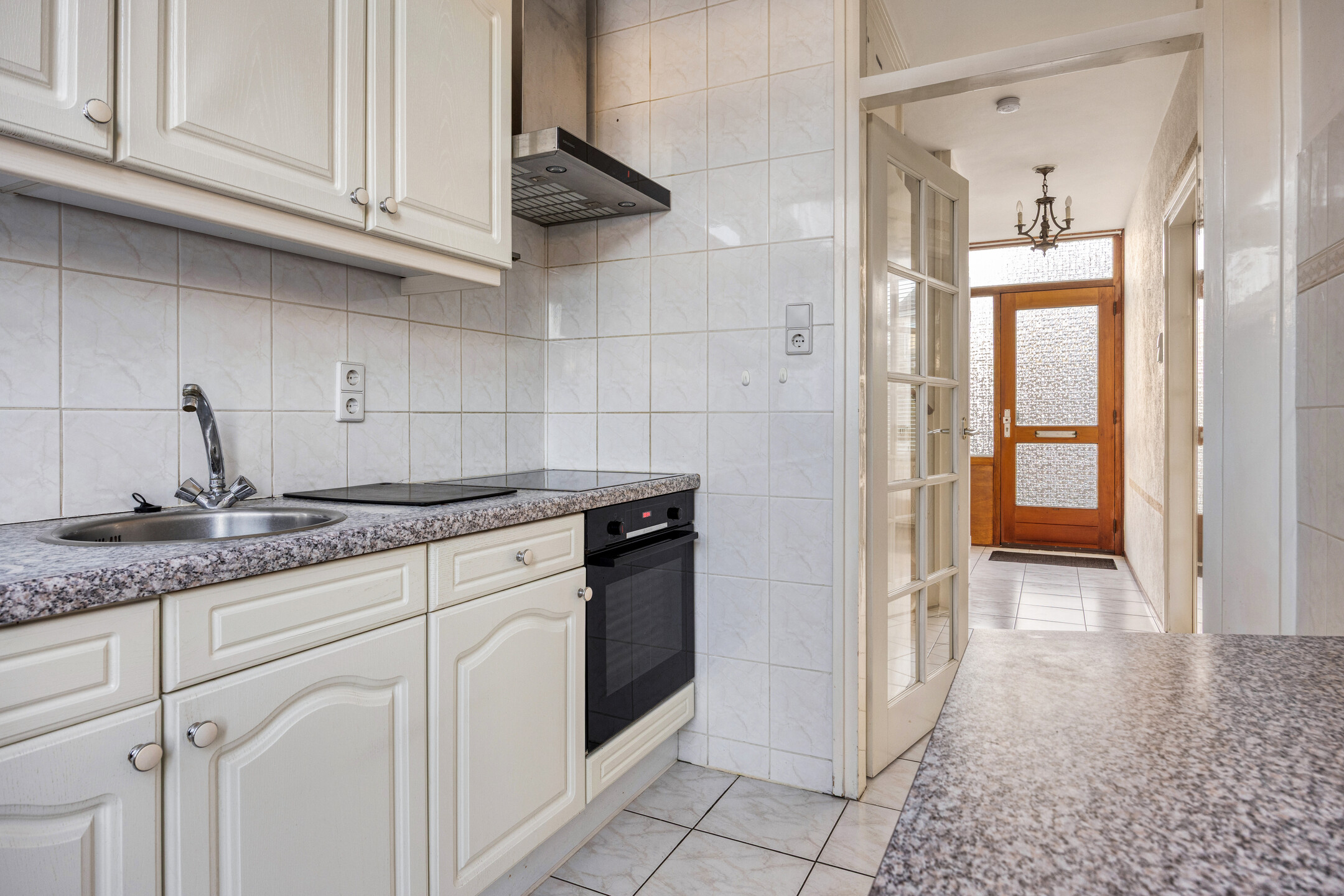 Je komt binnen in de entree met hal, waar zich het toilet en de trapopgang naar de eerste verdieping bevinden. De hal is afgewerkt met een stenen vloer. Het toilet is staand en tot aan het plafond betegeld. Vanuit de hal loop je door naar de woon-/eetkamer. Deze lichte leefruimte is voorzien van een parketvloer, spachtelputz wanden, een gestuukt plafond en een open haard (momenteel niet in gebruik). Aan de achterzijde van de woning bevindt zich de keuken, uitgevoerd in een rechte opstelling. De keuken is uitgerust met diverse inbouwapparatuur (vernieuwd in 2021), waaronder een 4-pits inductiekookplaat, afzuigkap en oven. Via de deur in de keuken heb je direct toegang tot de achtertuin.