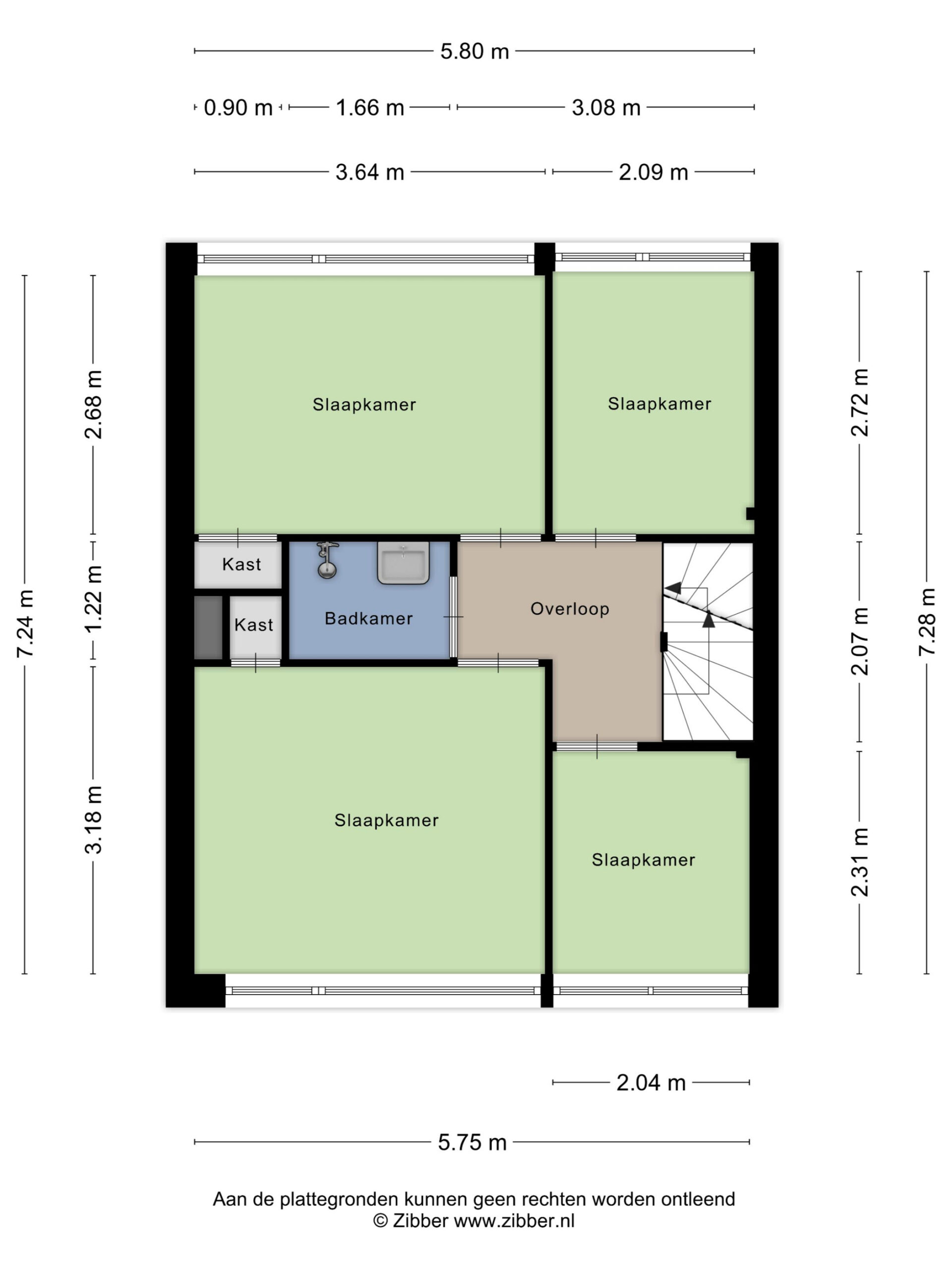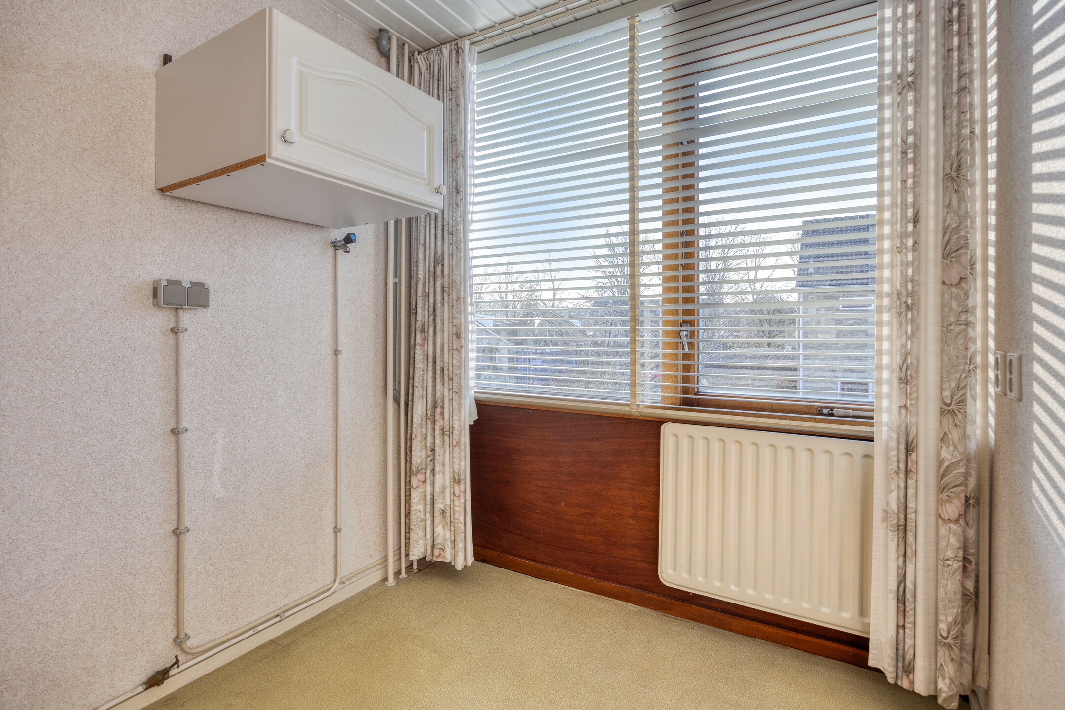Via de overloop bereik je 4 slaapkamers en de badkamer. Alle slaapkamers zijn voorzien van vloerbedekking en afgewerkt met behangwanden. In de 2 grote slaapkamers zijn tevens inbouwkasten aanwezig. De badkamer is eenvoudig uitgevoerd en beschikt over een douche en een wastafel. De wanden zijn tot circa 1.80 meter betegeld. Een praktische extra: één van de vier slaapkamers leent zich uitstekend om te worden ingericht als ruimere badkamer, de wateraansluiting en afvoer zijn al aanwezig. De huidige badkamer kan in dat geval perfect dienen als waskamer.