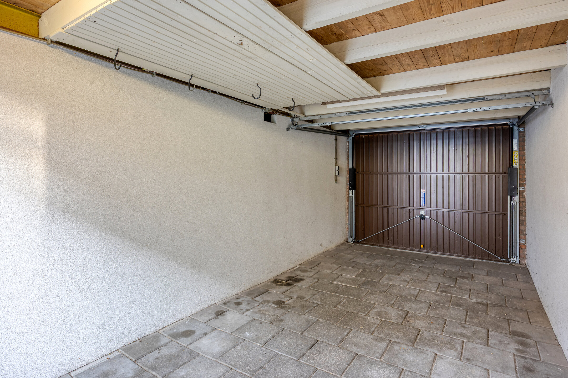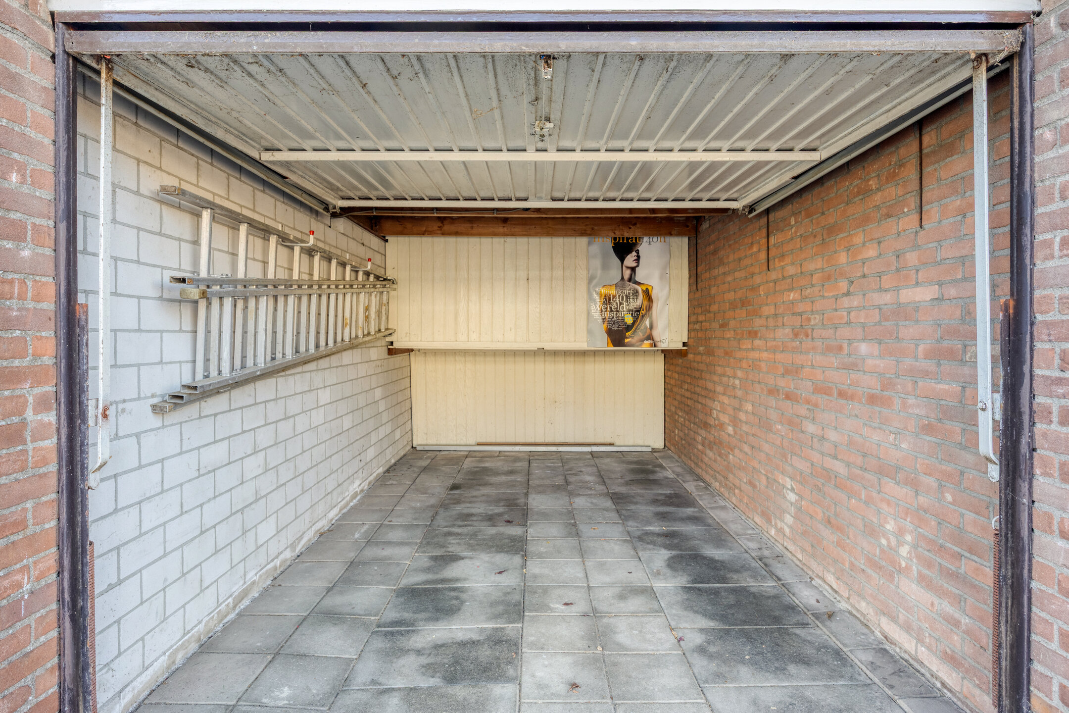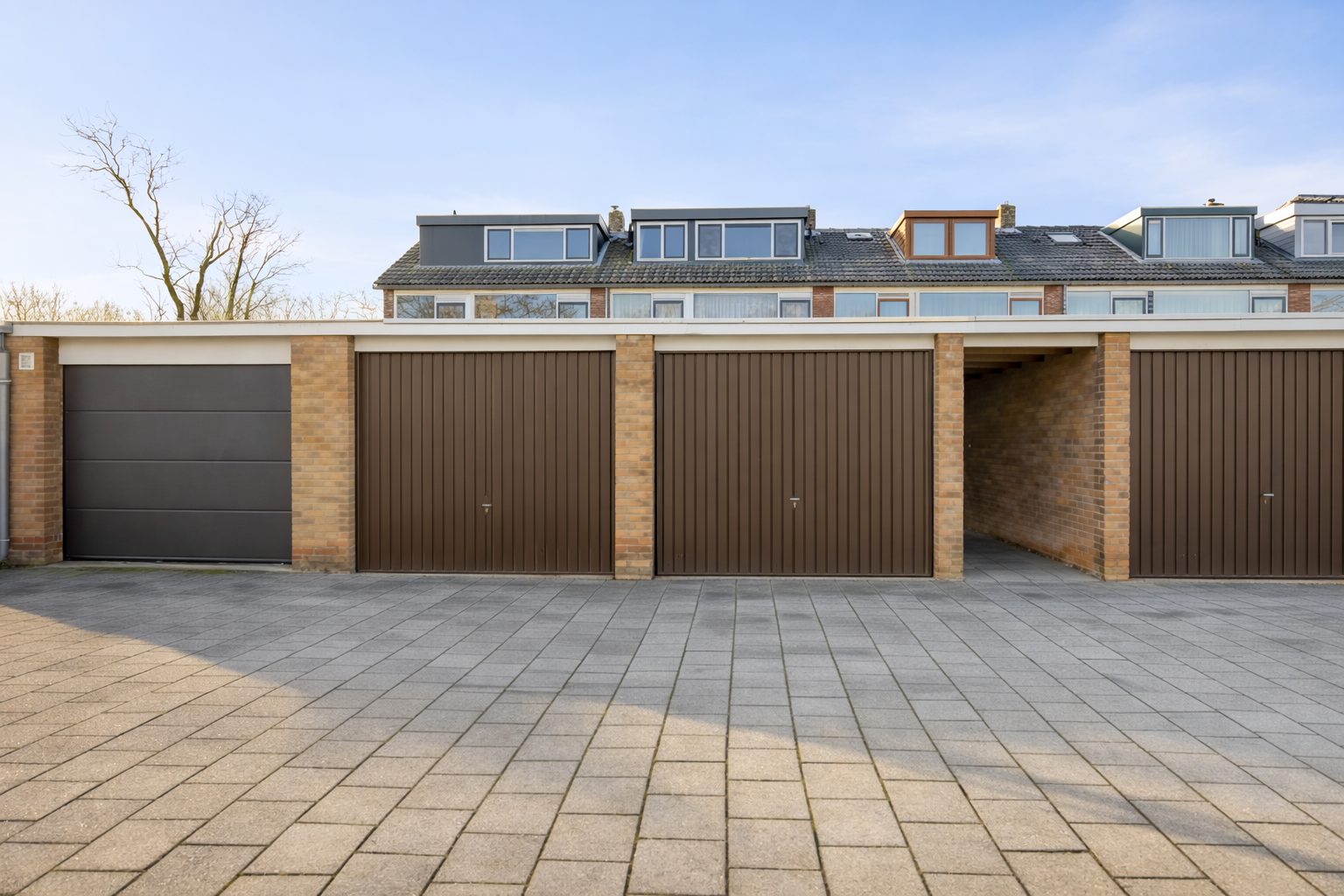 De achtertuin is op het noorden gelegen en heeft, inclusief de dubbele garages, een diepte van circa 14,25 meter. De tuin is onderhoudsvriendelijk aangelegd met bestrating en beschikt over een achterom via een poort langs de garages. De dubbele garages zijn voorzien van een scheidingsmuur en 1 van de garagedeuren is in 2020 vernieuwd. In beide garages is elektra aanwezig en in de grootste is ook wateraansluiting en een afvoer aanwezig.
