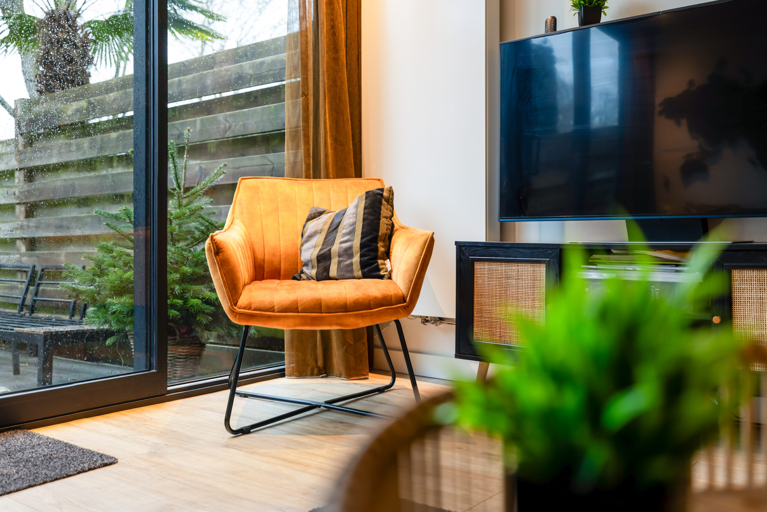 De achtertuin is op het westen gelegen en grenst direct aan een groenvoorziening, waardoor je hier heerlijk vrij zit. De veranda aan de achterzijde biedt extra privacy. Aan de woning is een elektrisch zonnescherm en aan de voorzijde bevindt zich een berging.