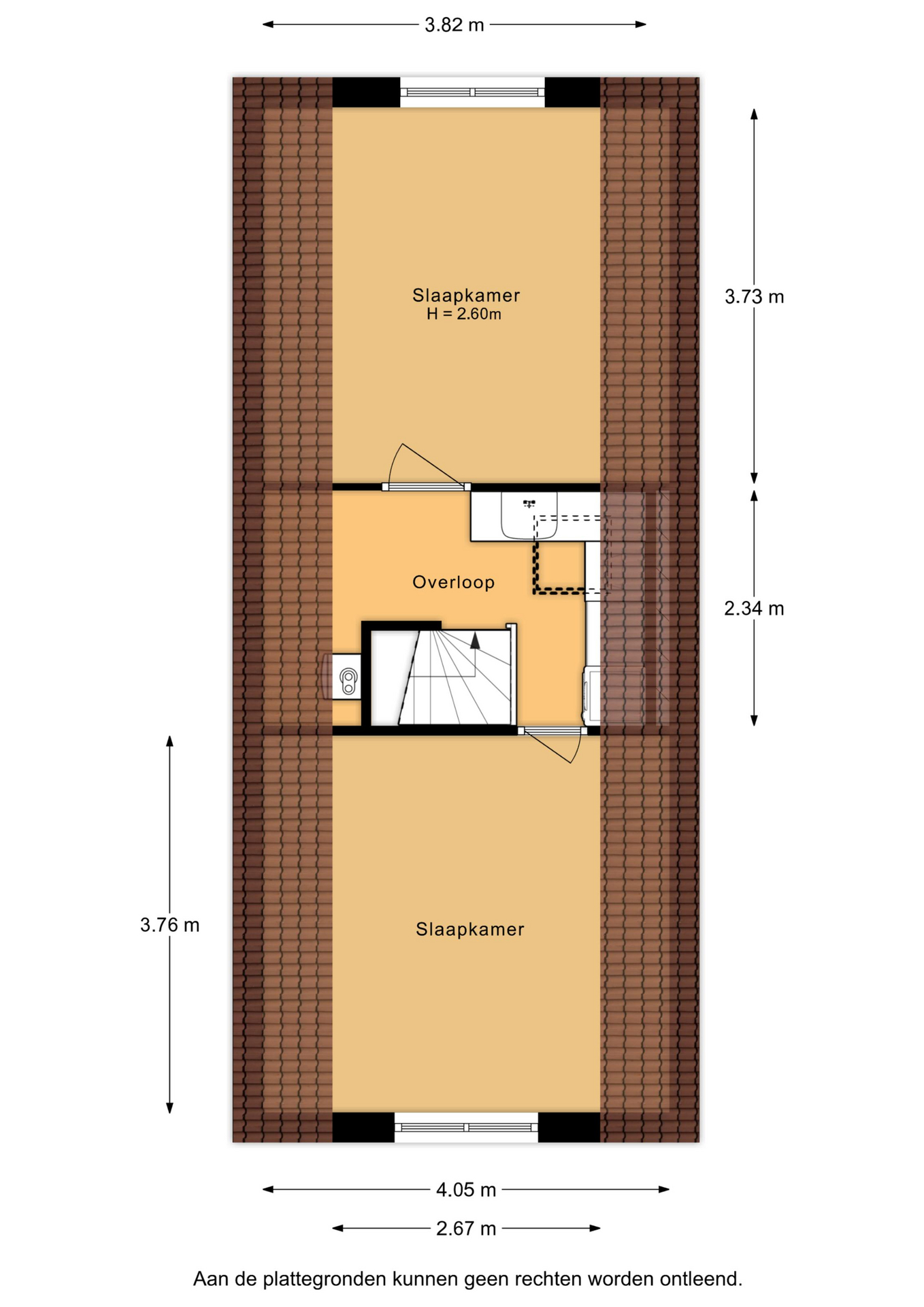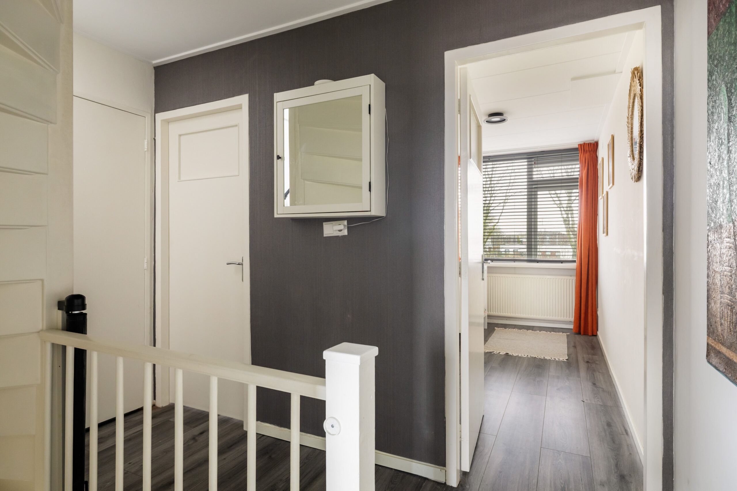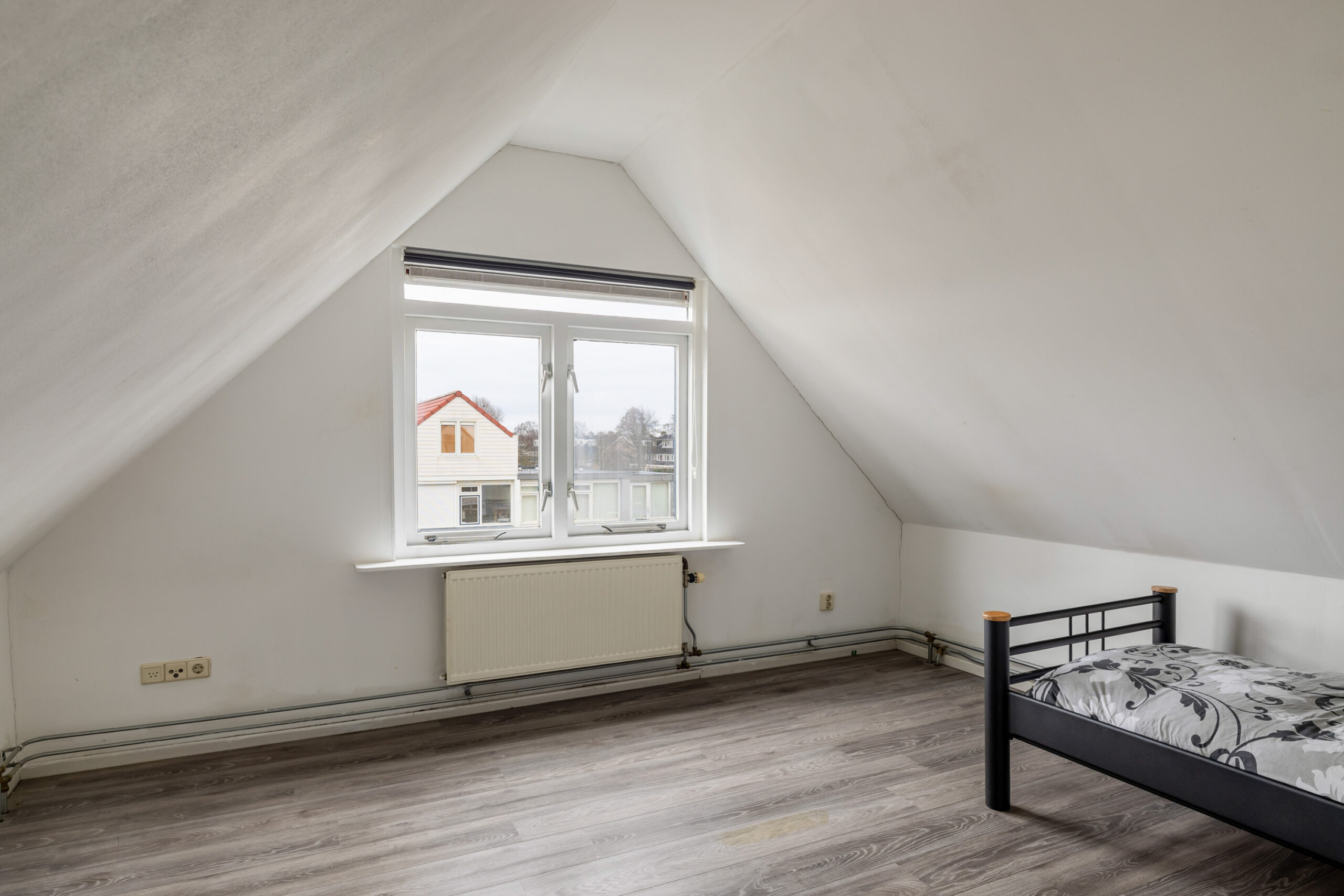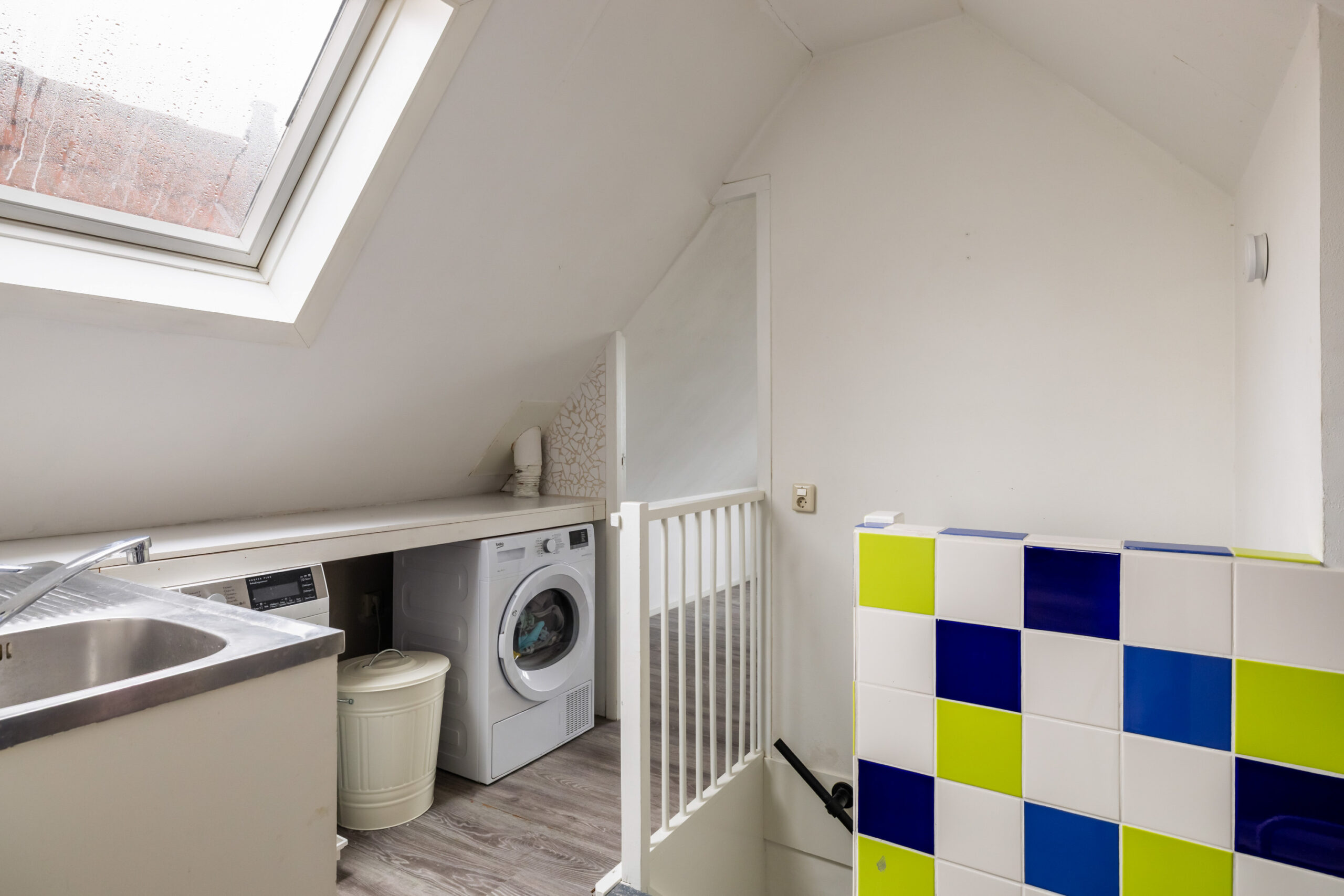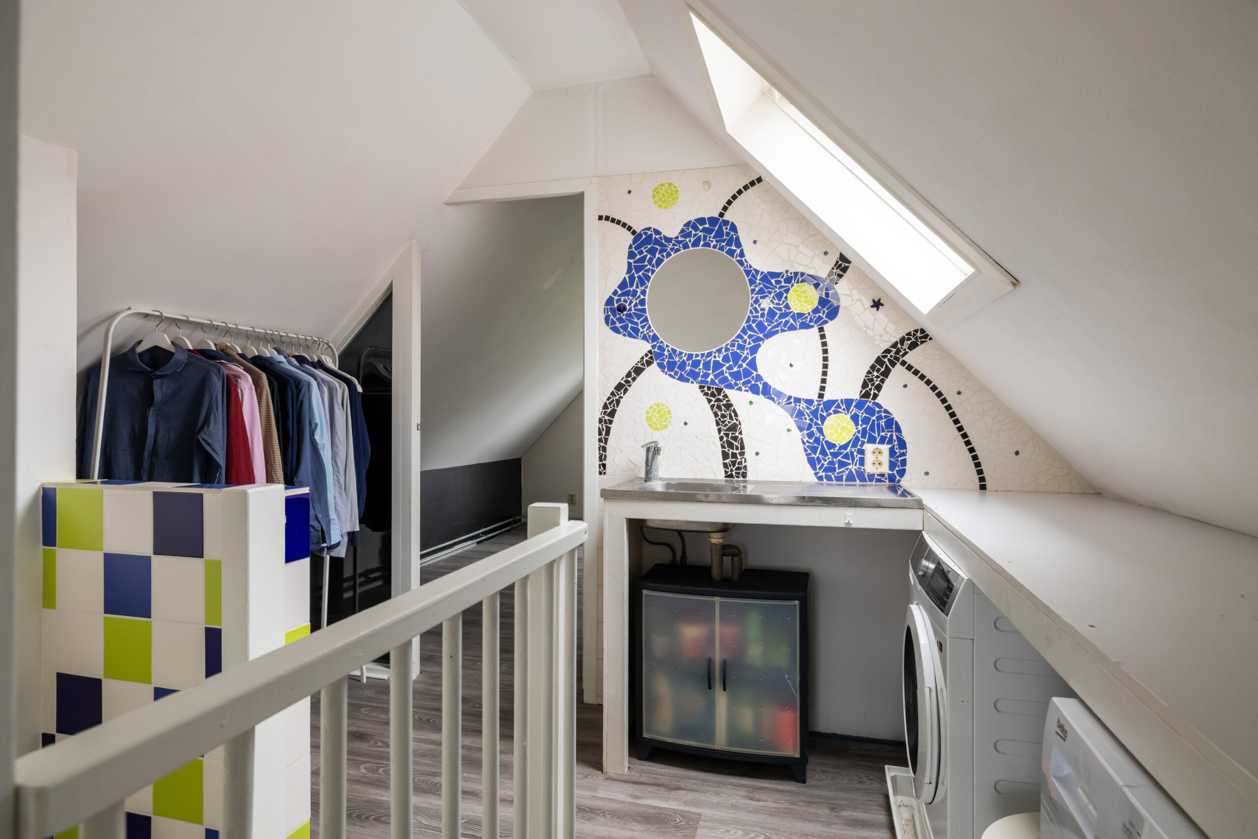Middels een trap vanaf de overloop kom je op de tweede verdieping. Hier bevinden zich 2 slaapkamers en een ruime overloop. De gehele verdieping is medio 2002 gebouwd en voorzien van een geïsoleerde kap. De slaapkamer aan de achterzijde heeft aluminium kozijnen met dubbel glas (2022). De vloer is volledig afgewerkt met laminaat en de wanden zijn gestuukt. Op de overloop is een aanrecht met wastafel geplaatst, ideaal als extra werk- of opbergruimte naast de wasmachine en/of droger.
