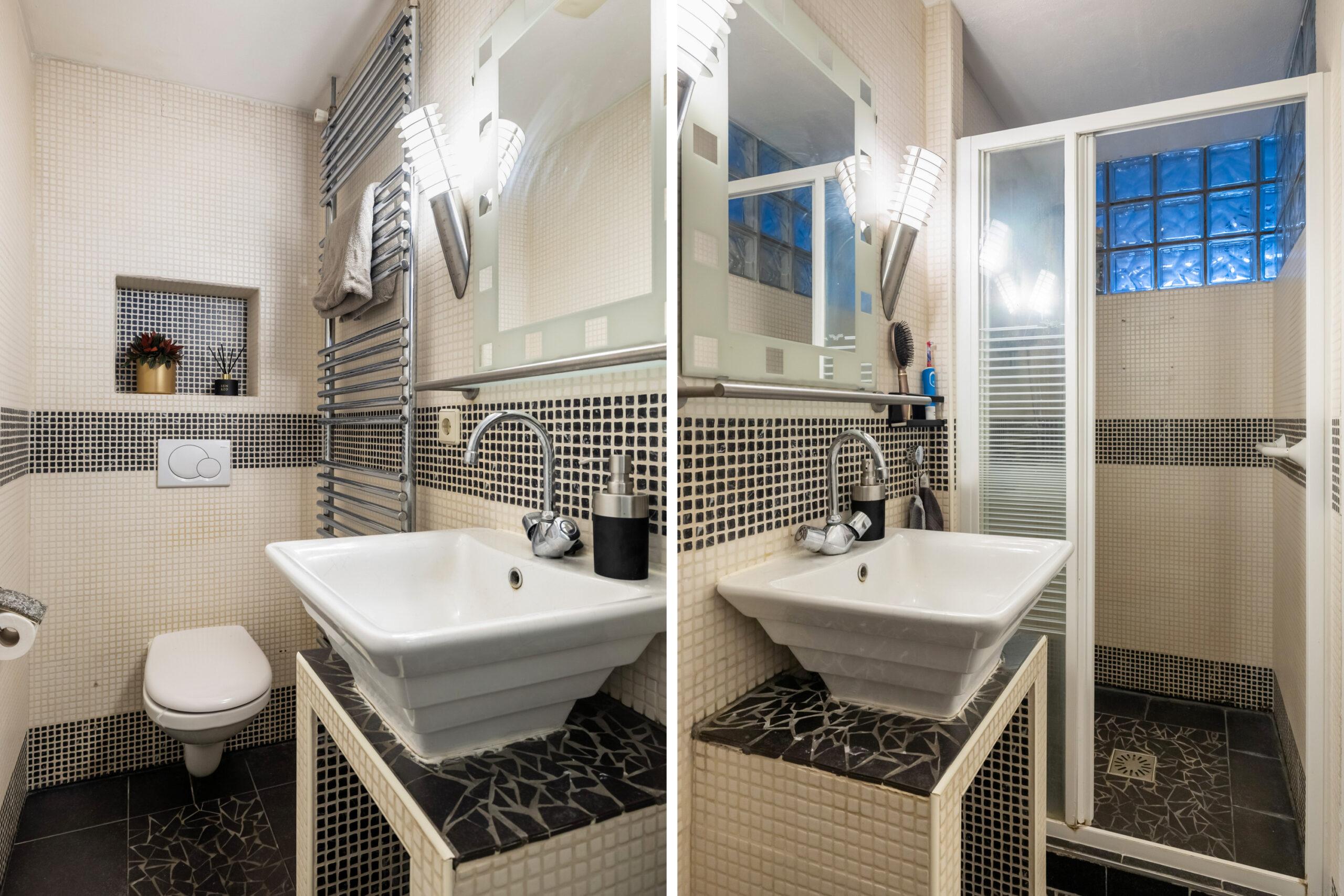 - Badkamervoorzieningen Toilet, douche, wastafel