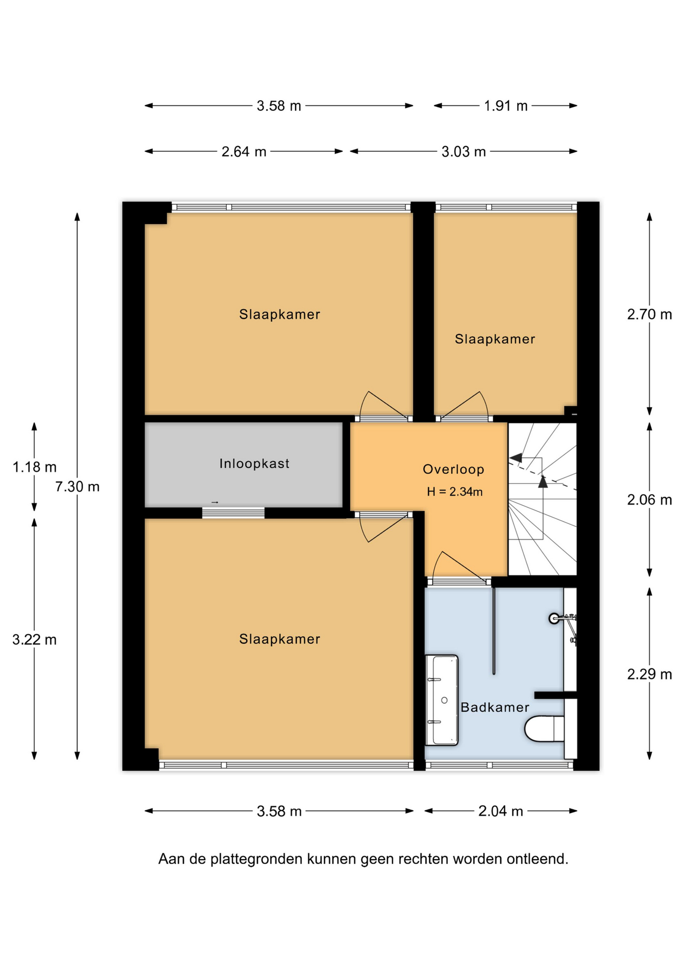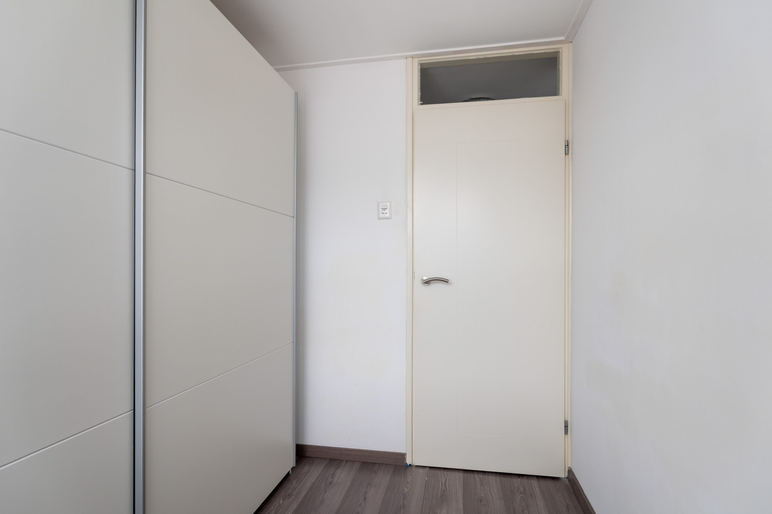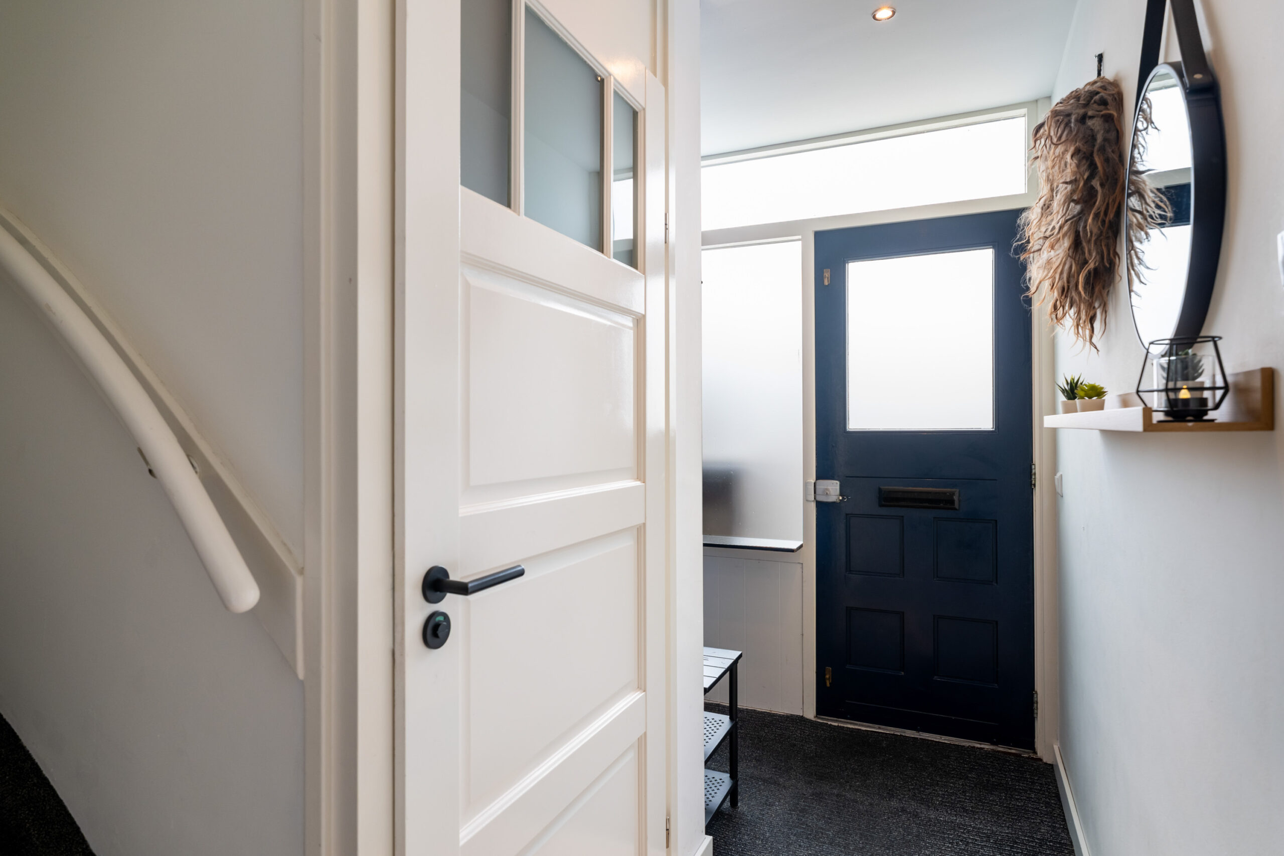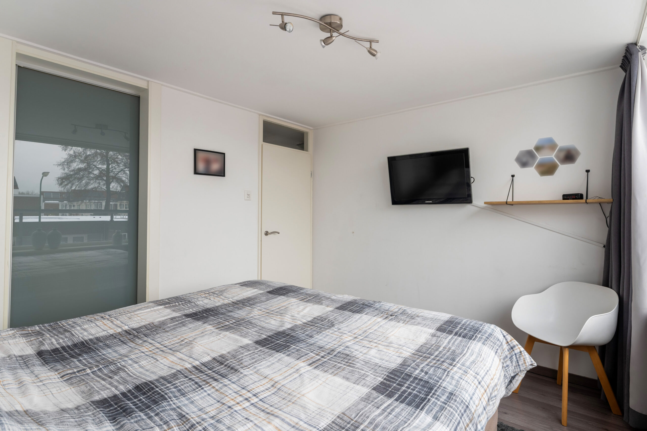 Via de trap in de hal kom je op de eerste verdieping, waar zich drie slaapkamers bevinden. De ruime hoofdslaapkamer is voorzien van een inloopkast. Alle slaapkamers hebben een laminaatvloer en gestuukte wanden en plafonds, deels afgewerkt met behang. De slaapkamers aan de achterzijde zijn bovendien voorzien van rolluiken. In 2017 zijn alle binnendeuren op deze en de tweede verdieping vernieuwd. De luxe badkamer, vernieuwd in 2019, is uitgerust met een royale douche, een dubbel wastafelmeubel en een vrijhangend toilet. De wanden zijn volledig betegeld tot aan het plafond en het gestuukte plafond is voorzien van inbouwspots.