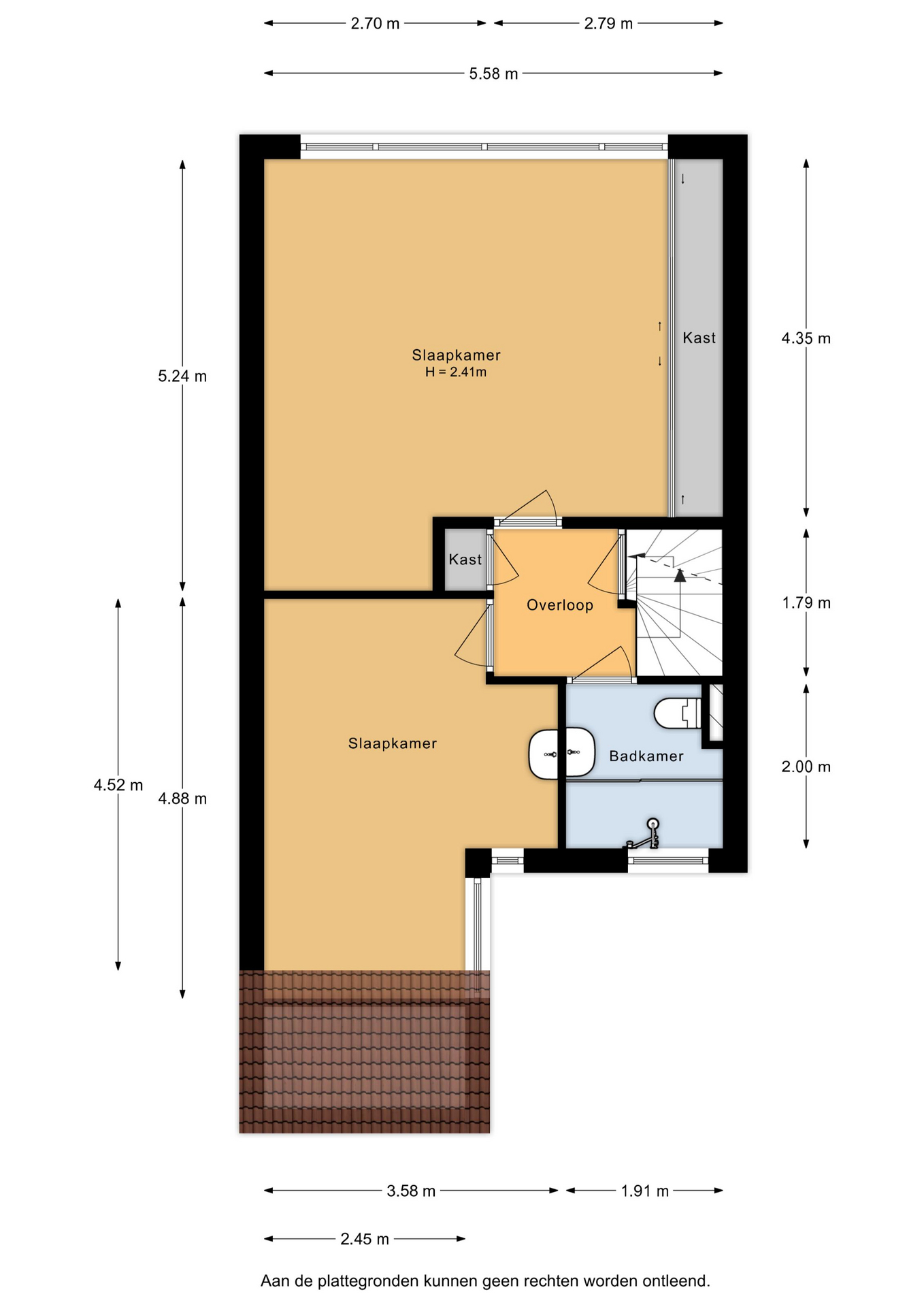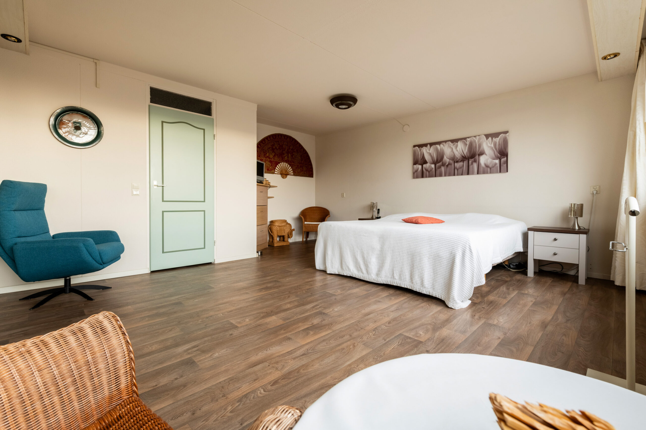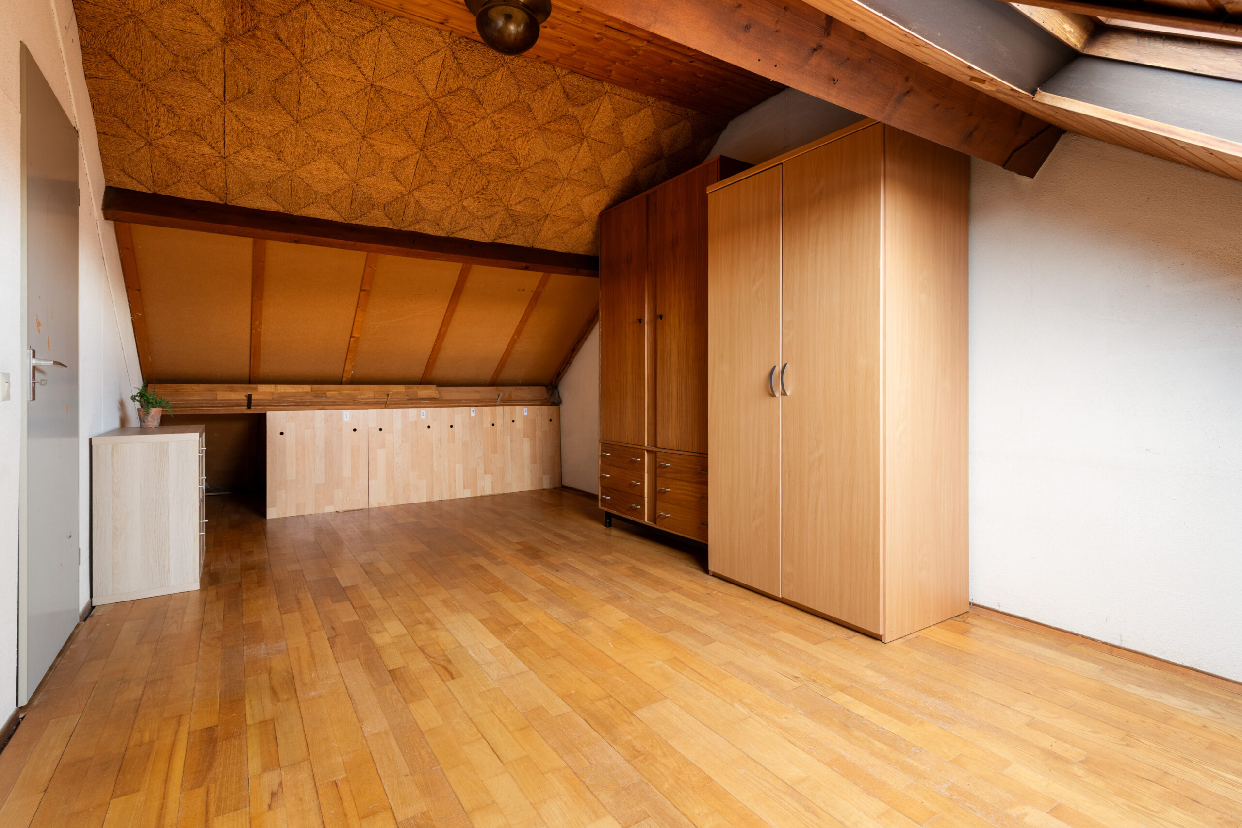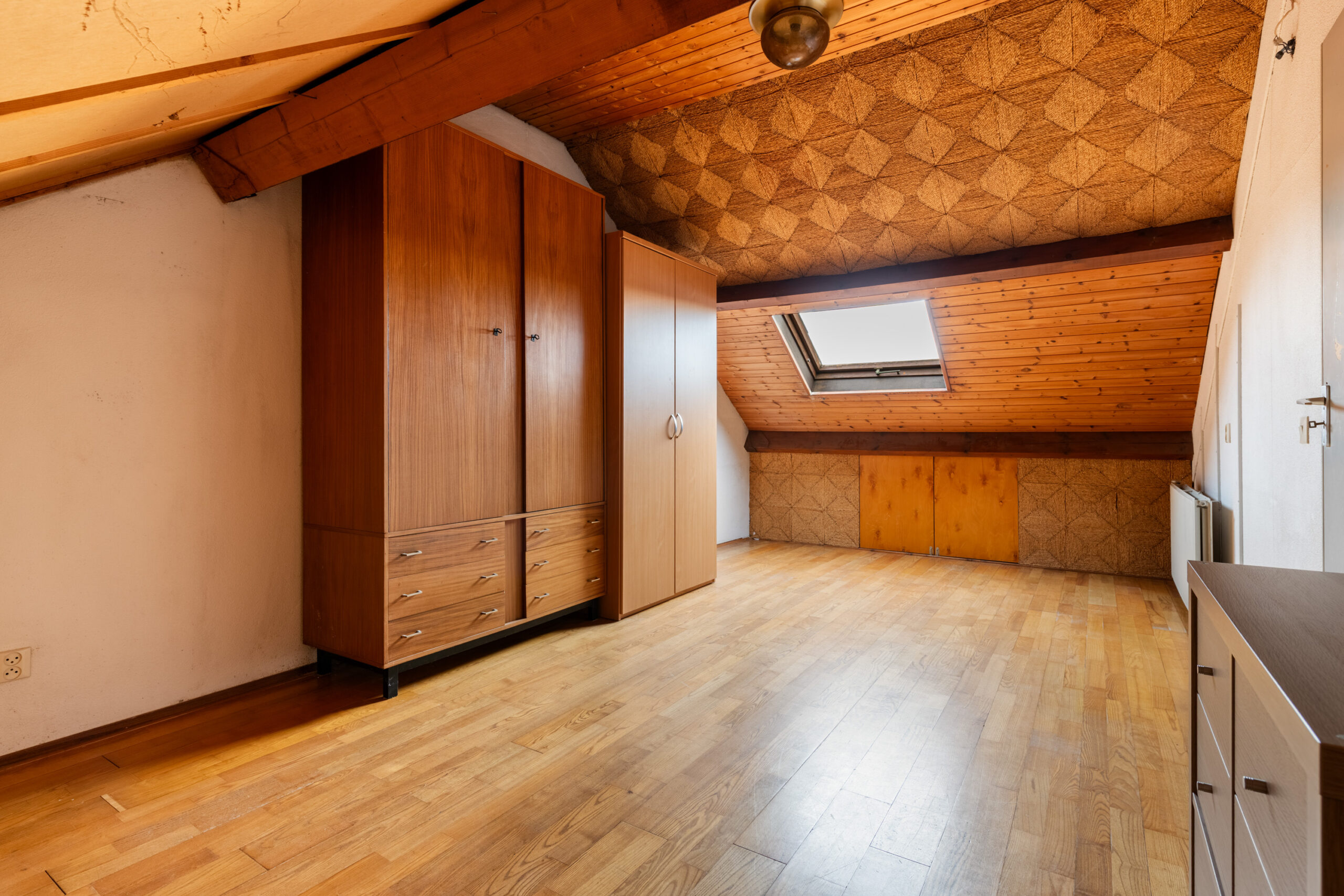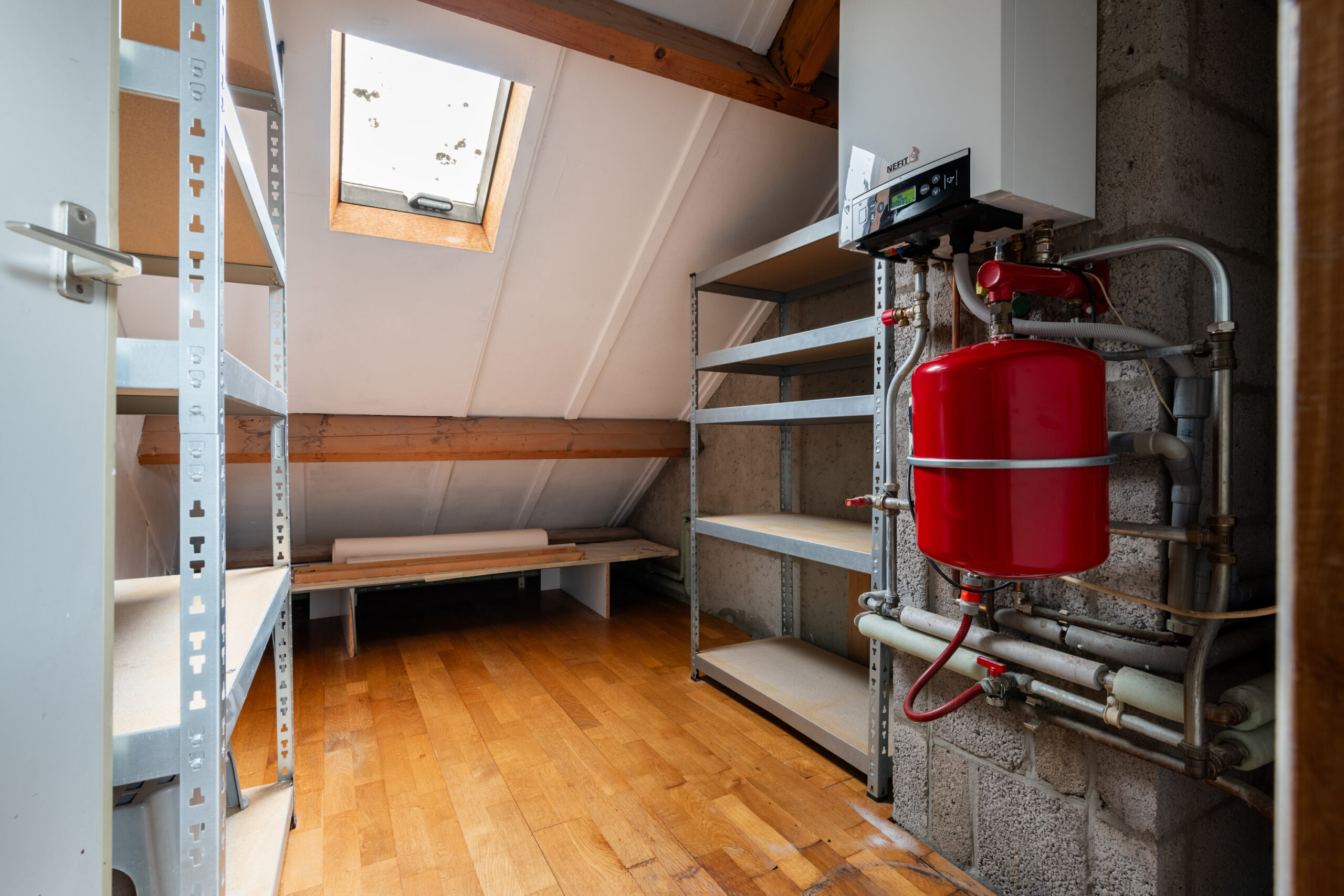 Met een vaste trap bereik je de tweede verdieping, waar een ruime slaapkamer, een voorzolder en een inpandige berging te vinden zijn. De slaapkamer heeft aan de achterzijde een dakraam en is afgewerkt met een parketvloer. Op de voorzolder is ruimte voor je wasmachine en droger, terwijl de berging de plek biedt voor de cv-combiketel.