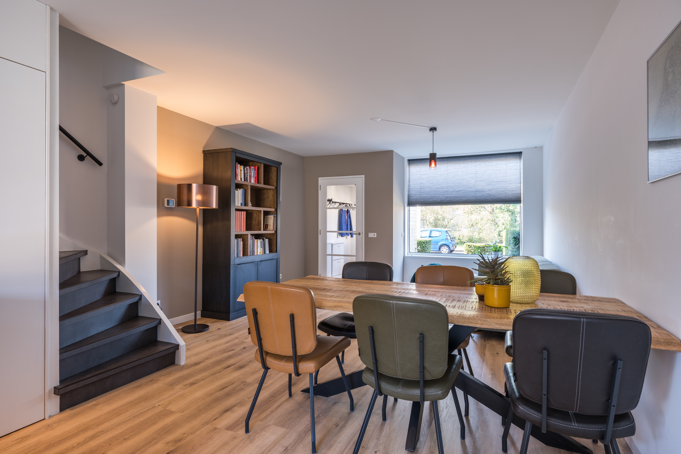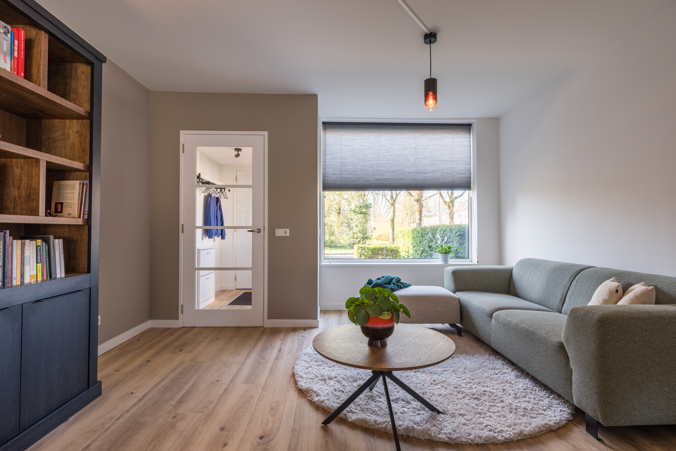 Je komt binnen in de hal met garderobe, meterkast en een modern toilet. Het toilet is vrijhangend, voorzien van een fontein en in 2023 volledig vernieuwd. Vanuit de hal stap je de ruime en lichte woonkamer binnen van circa 39 m². Dankzij de grote raampartijen aan zowel de voor- als achterzijde geniet je hier de hele dag van een prettige lichtinval. Aan de achterzijde is de keuken gesitueerd, die in 2023 volledig is vernieuwd. De keuken is modern uitgevoerd en voorzien van diverse inbouwapparatuur, waaronder een 4-pits inductiekookplaat met geïntegreerde afzuigkap, koelkast, combi-magnetron en een vaatwasmachine. De begane grond is afgewerkt met een pvc-vloer in combinatie met vloerverwarming en is de vloer geïsoleerd. Dit alles is in 2023 uitgevoerd. Daarnaast zijn de wanden en het plafond strak gestuukt. Het raam aan de voorzijde kijkt uit over groen en is voorzien van een elektrisch screen.