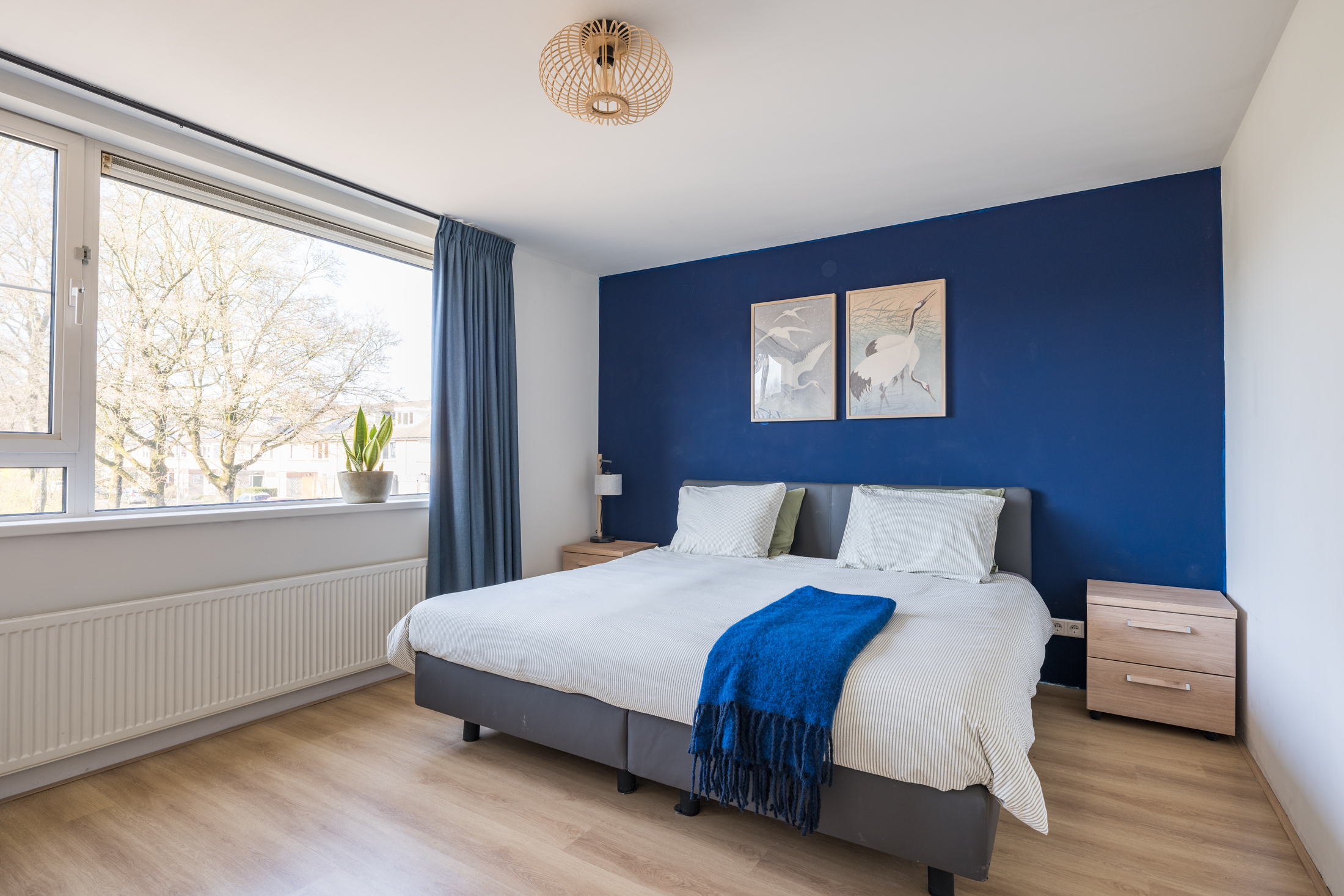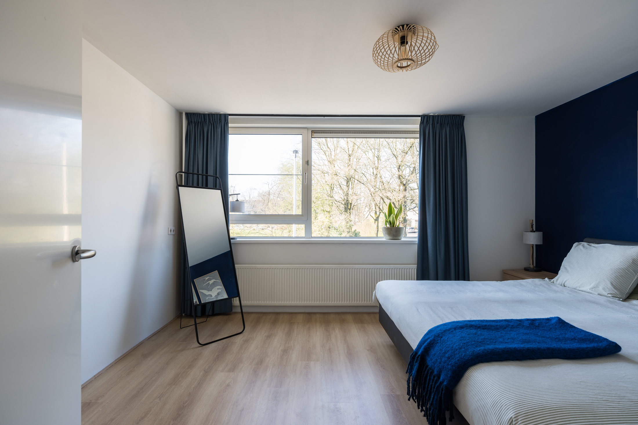 Op de eerste verdieping vind je drie ruime slaapkamers, elk met een frisse en moderne uitstraling dankzij de gestuukte wanden en het gestuukte plafond. De hele verdieping is voorzien van een laminaatvloer. De hoofdslaapkamer is aan de voorzijde gelegen. Zowel de voor- als achterslaapkamers zijn voorzien van elektrische screens. De badkamer is in 2023 volledig vernieuwd en uitgevoerd met een ligbad, douche en wastafelmeubel. Het geheel is tot het plafond betegeld. Daarnaast is er een separaat gelegen toilet, dat eveneens in 2023 volledig is vernieuwd. Ook de deuren en kozijnen op deze verdieping zijn in dat jaar vervangen.