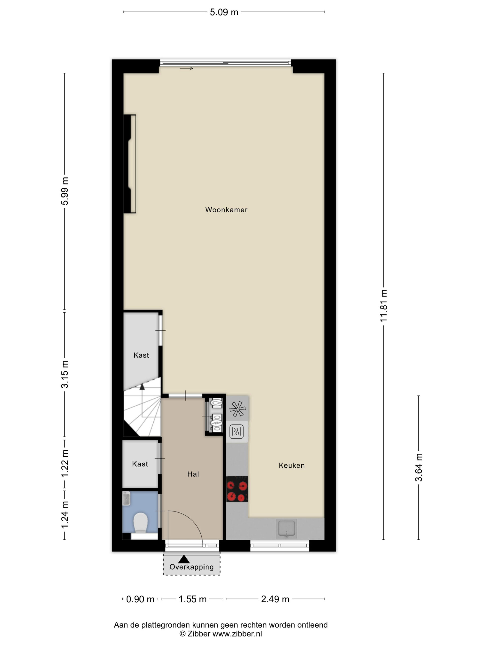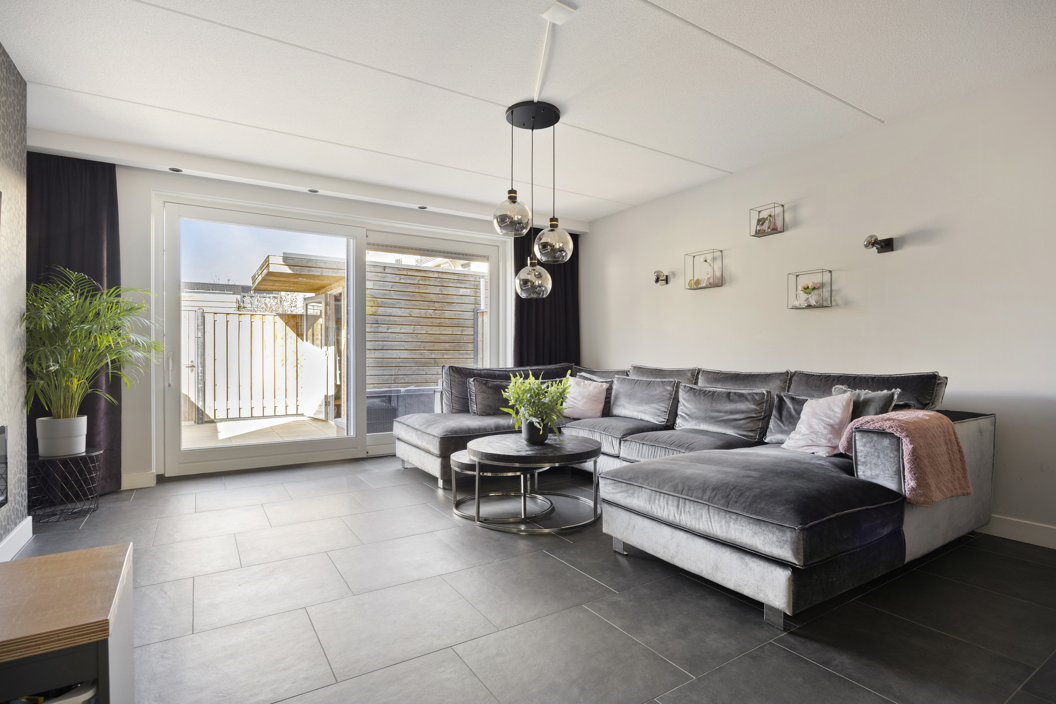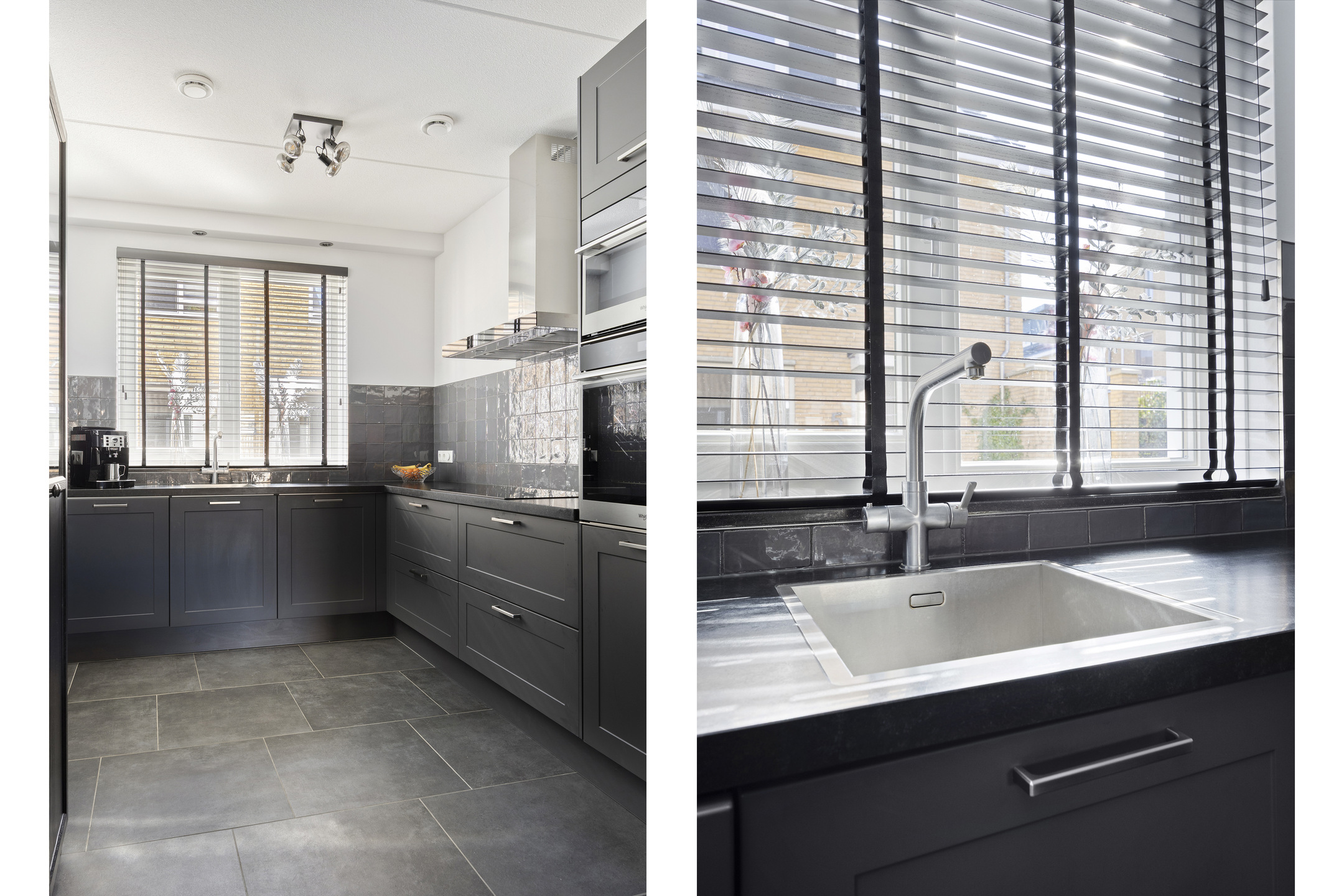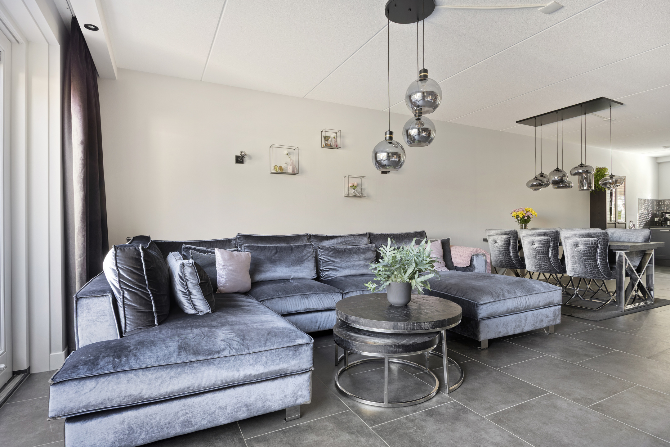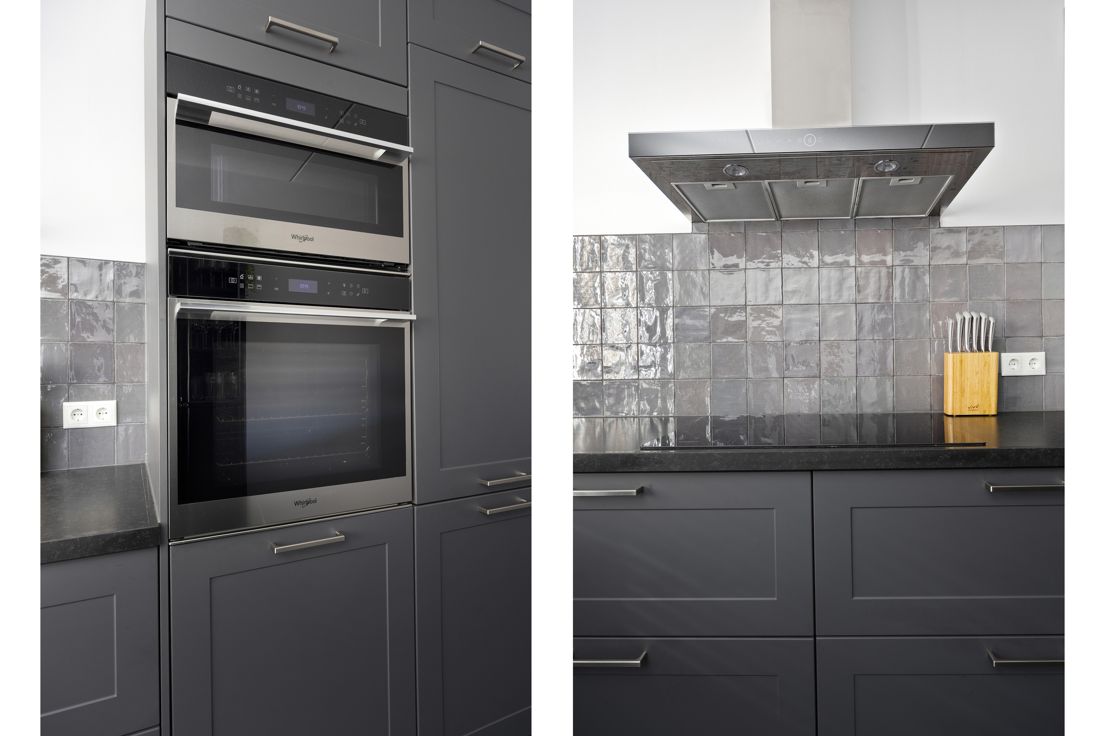 Entree met hal welke toegang geeft tot het toilet, de garderobe, de meterkast en een kastruimte. Het vrijhangende toilet is verzorgd afgewerkt en voorzien van een fontein, met tegelwerk tot circa 1 meter hoogte. De uitgebouwde woonkamer bevindt zich aan de achterzijde en is met circa 2,4 meter verlengd, wat zorgt voor een opvallend fijne en lichte leefruimte. Dankzij de schuifpui sta je in directe verbinding met de achtertuin. De wanden zijn voorzien van renovlies behang en op de vloer ligt een stenen vloer met vloerverwarming. Aan de voorzijde van de woning ligt de keuken, opgesteld in een L-opstelling en voorzien van diverse inbouwapparatuur, waaronder een 4-pits inductiekookplaat, RVS afzuigkap, vaatwasmachine, combi-magnetron, oven, kokend water kraan, koelkast en vriezer.