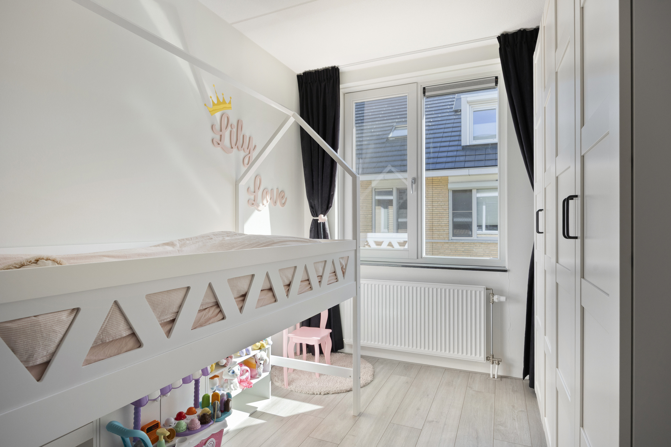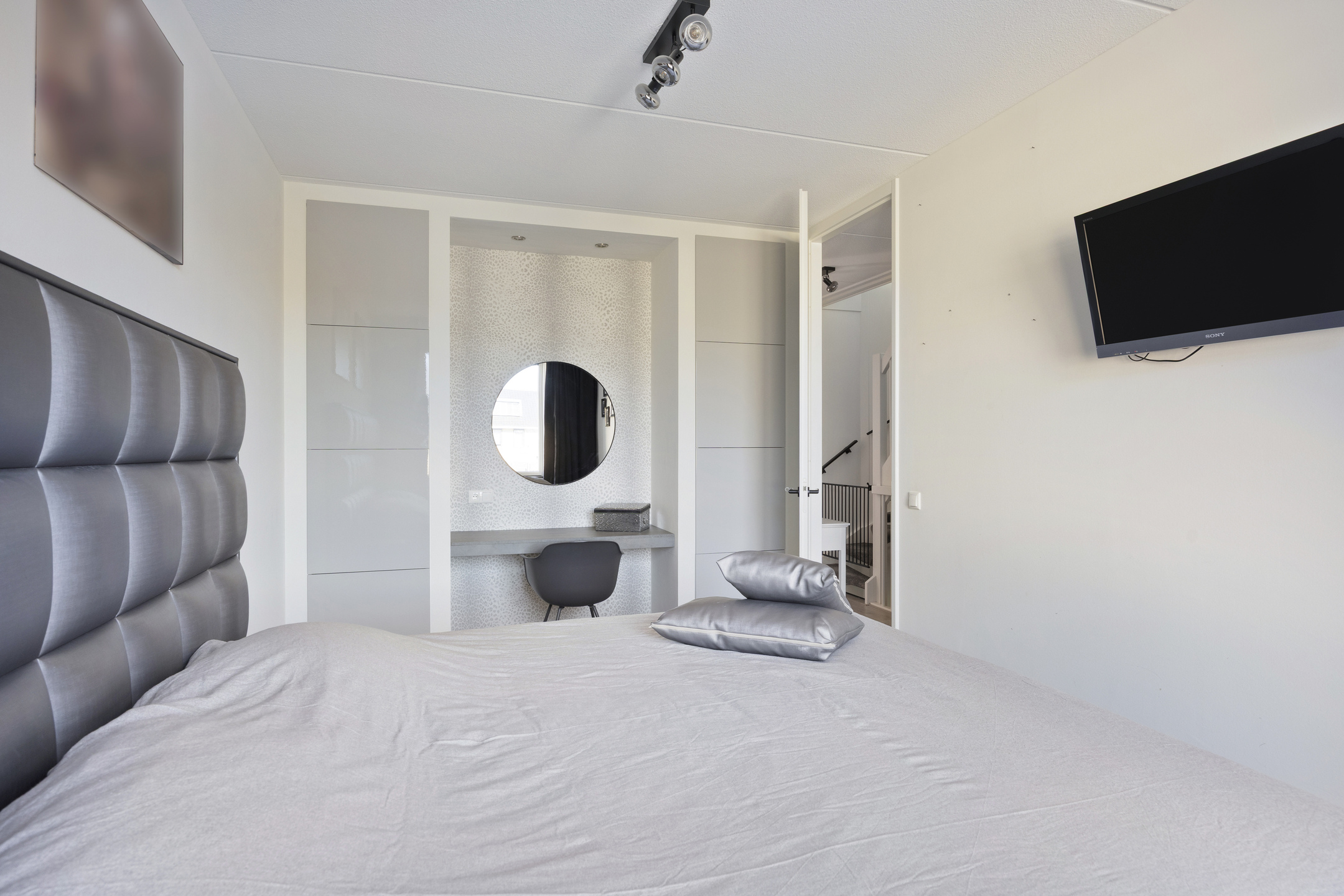 De eerste verdieping beschikt over drie fijne slaapkamers en een ruime badkamer. De slaapkamers hebben strak afgewerkte wanden met renovlies behang en een laminaat vloer welke geheel is doorgelegd. Alle kamers zijn voorzien van hardhouten kozijnen en tevens hebben de draaiende delen horren. De slaapkamers aan de achterzijde zijn voorzien van elektrisch bedienbare rolluiken.De badkamer is compleet en verzorgd uitgevoerd met een ruime inloop regendouche, een wastafelmeubel en een vrijhangend toilet. De ruimte is volledig betegeld tot aan het plafond en voorzien van vloerverwarming. Prettige bijkomstigheid is dat de badkamer voorzien is van een raam.