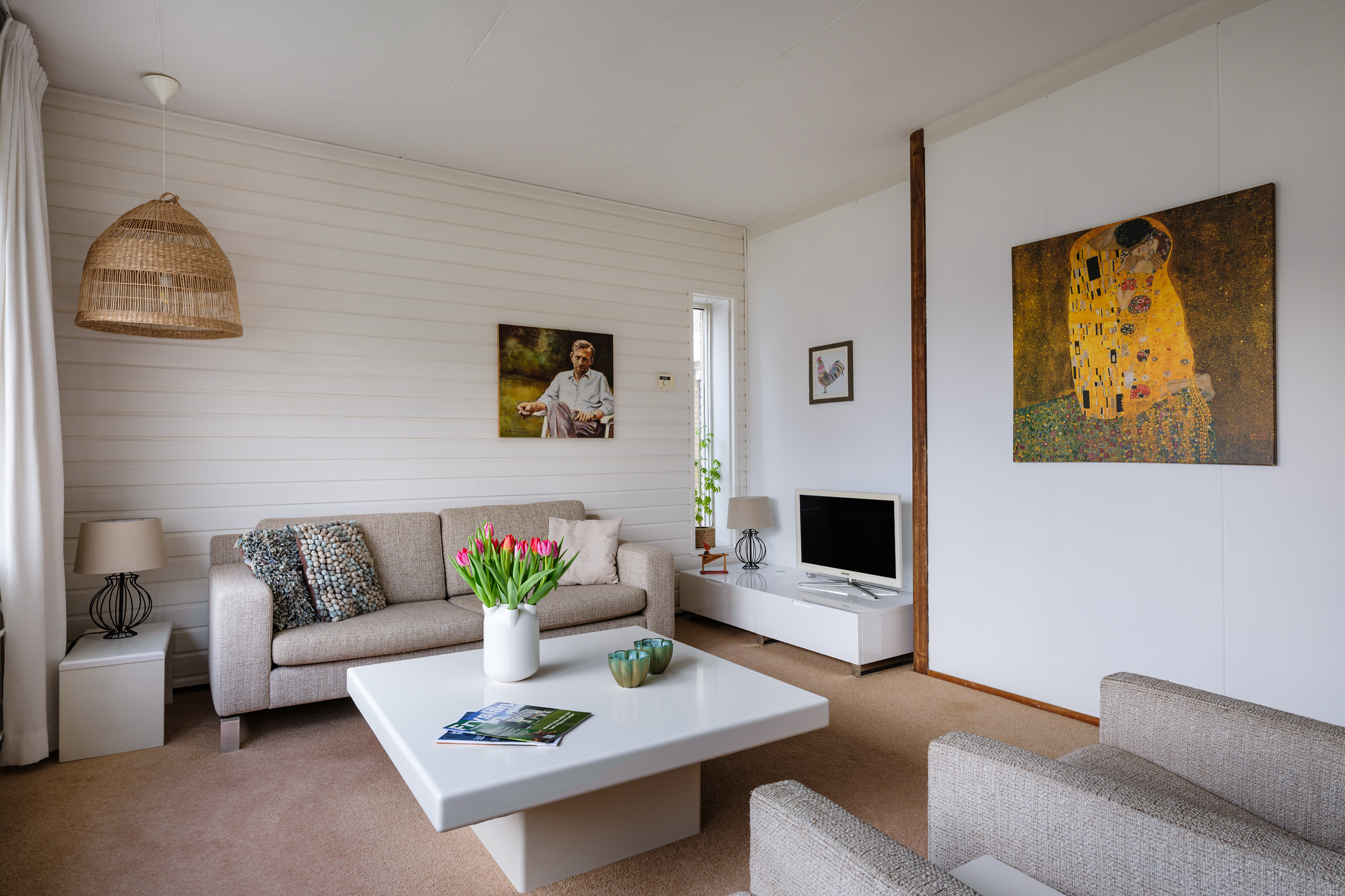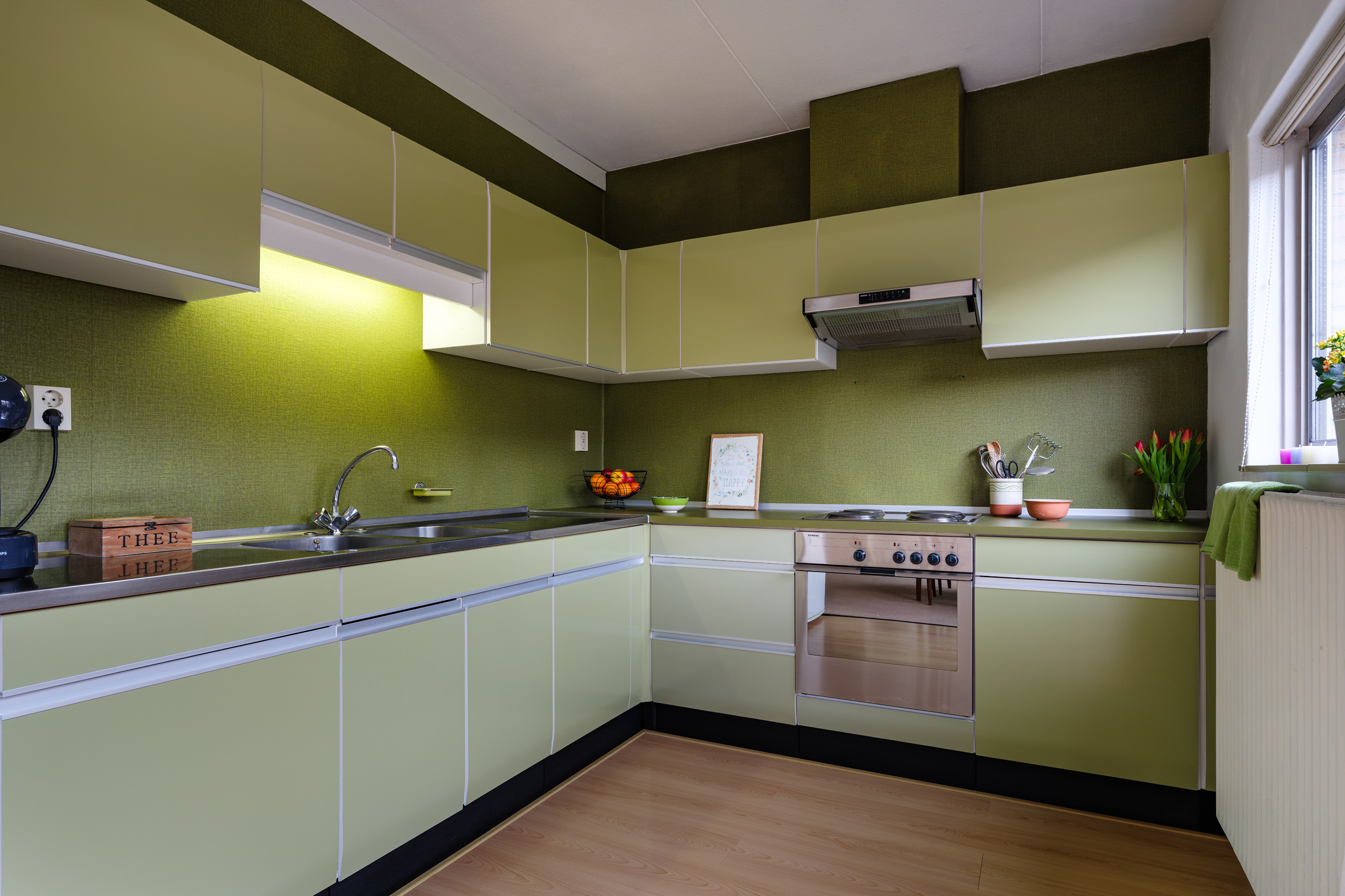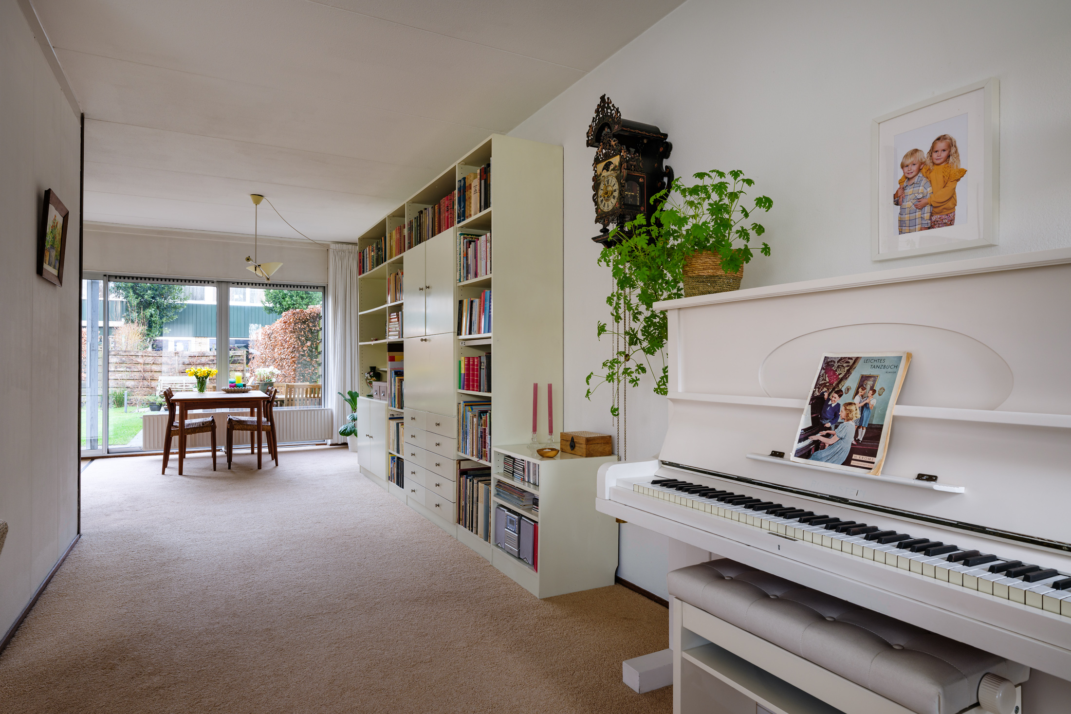 Je komt binnen in een ruime hal met een garderobe, een meterkast en een toilet met fontein. De lichte woonkamer aan de voorzijde loopt door naar de eetkamer aan de achterzijde en vormt samen met de keuken een aangename leefruimte van circa 47 m². De aan de achterzijde gesitueerde keuken in L-opstelling is voorzien van een 4-pits keramische kookplaat, oven en een losstaande koelkast. Via de schuifpui stap je zo het terras op en de garage of tuin in.
