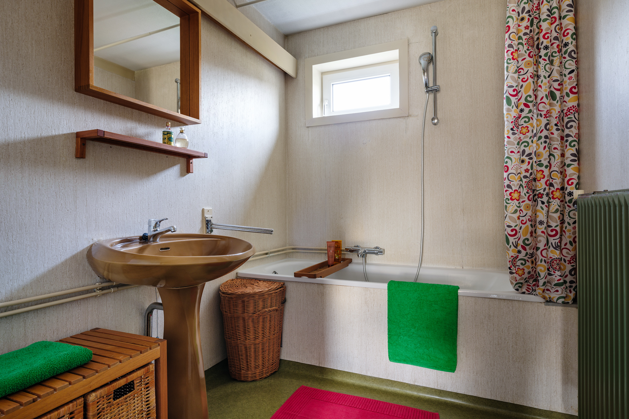 - Badkamervoorzieningen Ligbad, toilet, wastafel