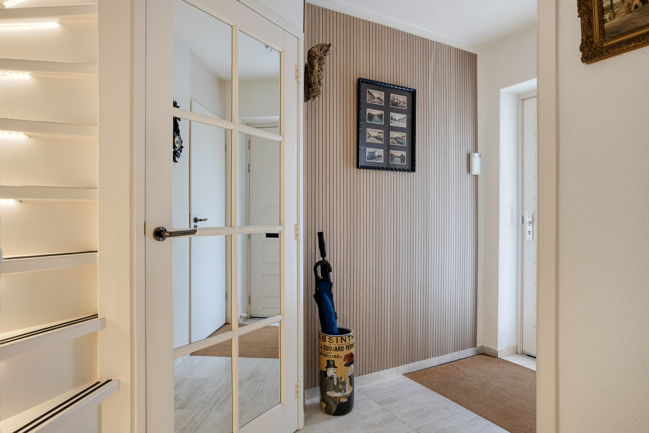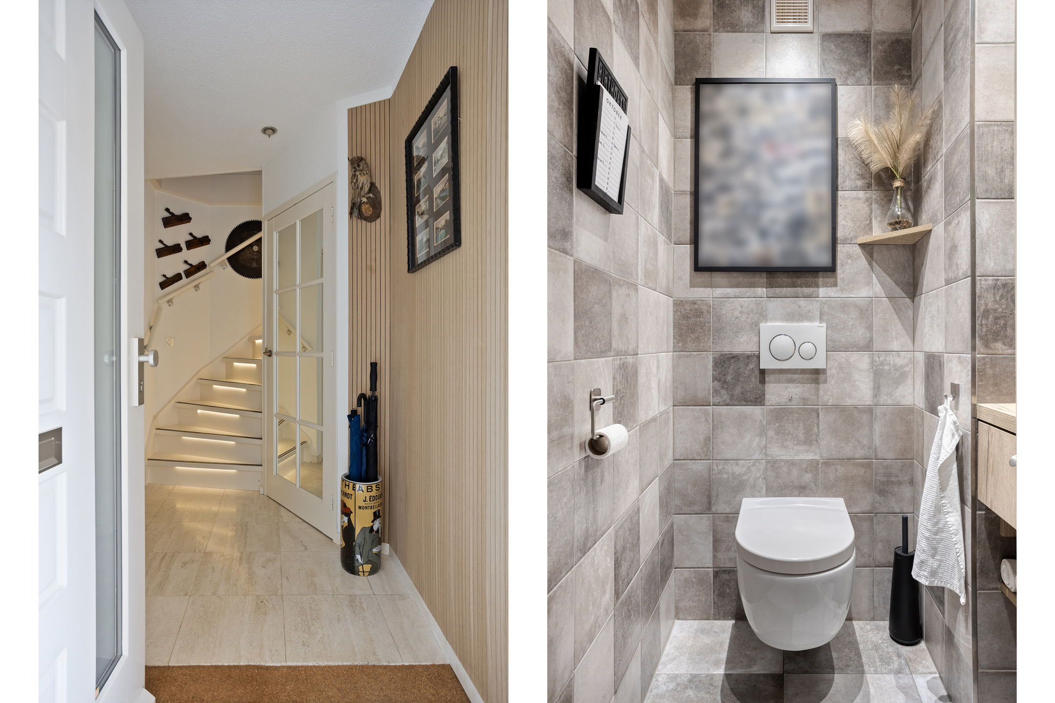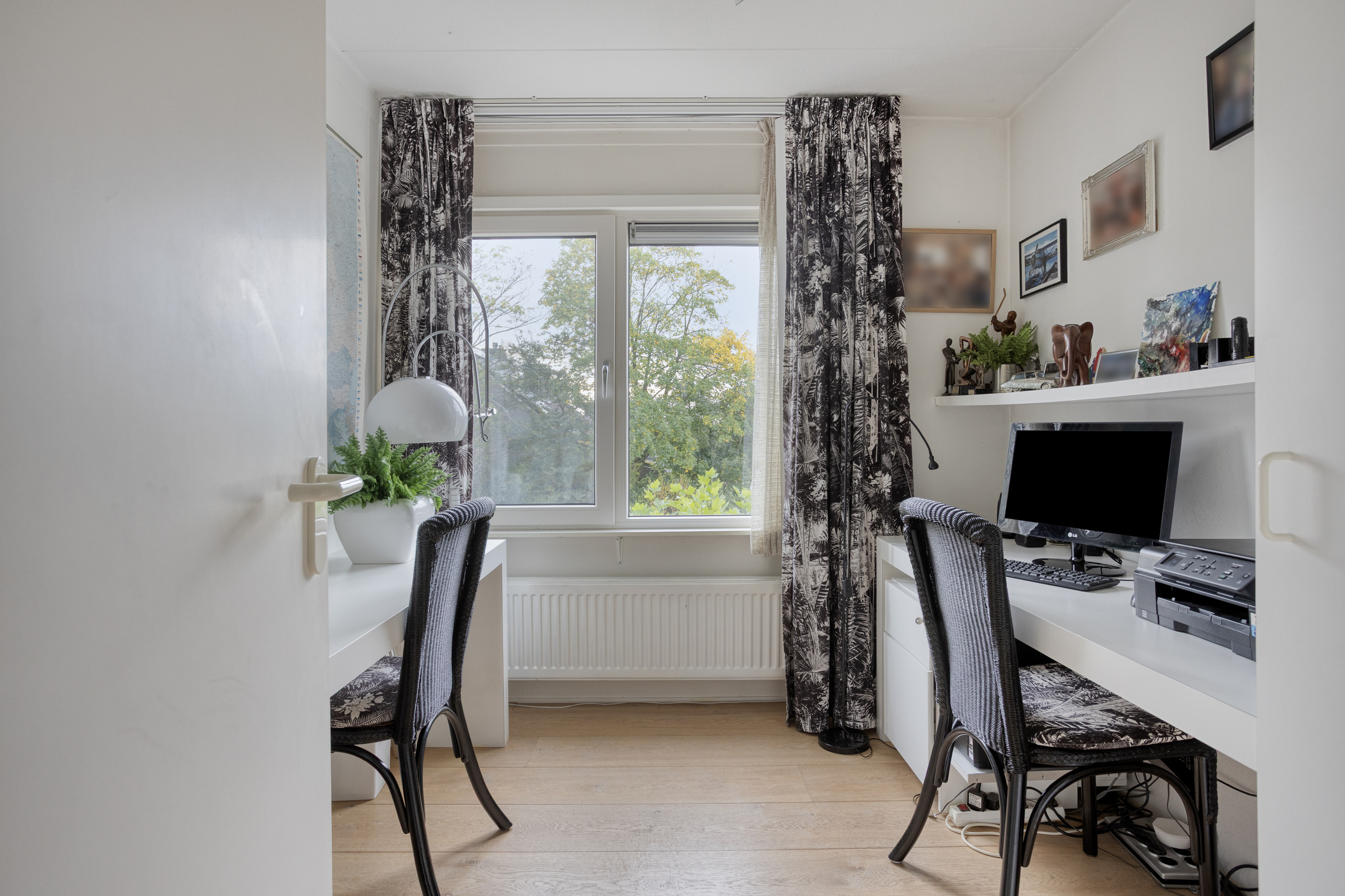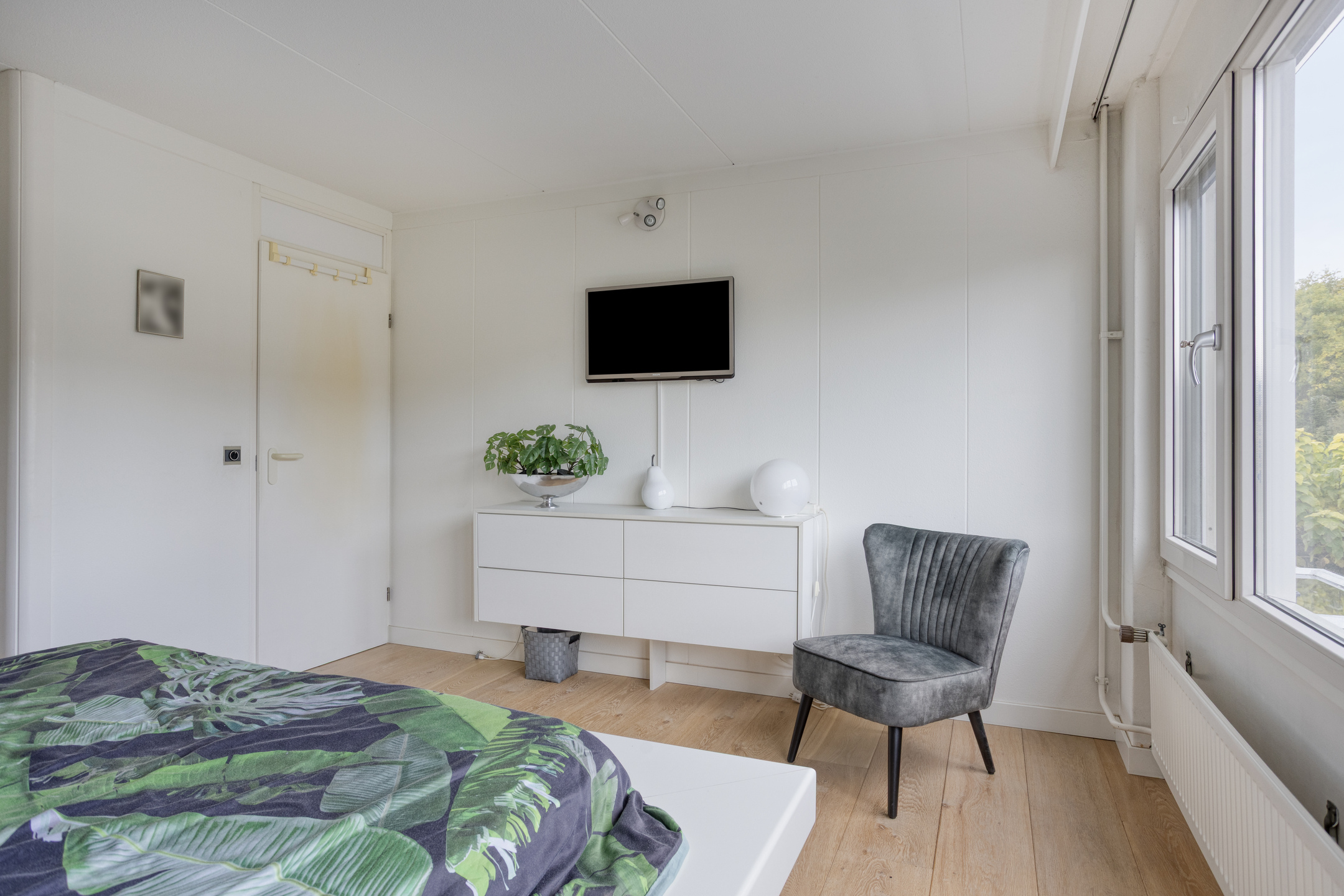 Via de trap kom je op een ruime overloop, waar het licht van de staande ramen op een mooie manier binnenvalt – een fraai detail dat de verdieping een lichte en open uitstraling geeft. Op deze verdieping bevinden zich drie slaapkamers en de badkamer. De slaapkamers zijn netjes afgewerkt met schilderwerk wanden, twee kamers hebben een massief eiken vloer en de derde slaapkamer heeft vloerbedekking. De ramen en kozijnen op deze verdieping zijn in 2017 volledig vernieuwd en in kunststof uitgevoerd. De badkamer is modern en strak afgewerkt, volledig betegeld in een lichte kleurstelling en voorzien van vloerverwarming en een handdoekenradiator. Verder beschikt de badkamer over een ruime douche, een dubbel wastafelmeubel en een vrijhangend toilet.