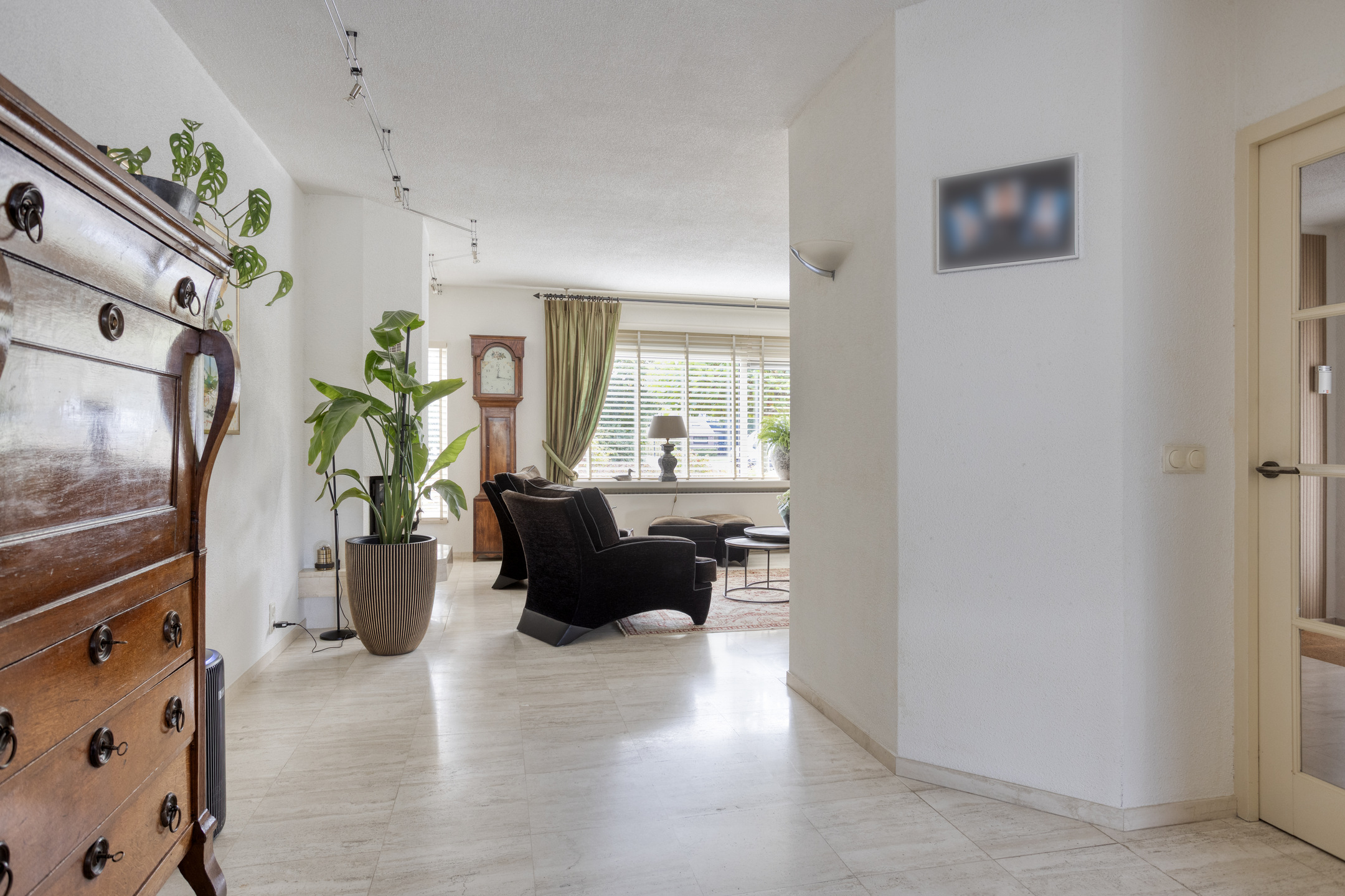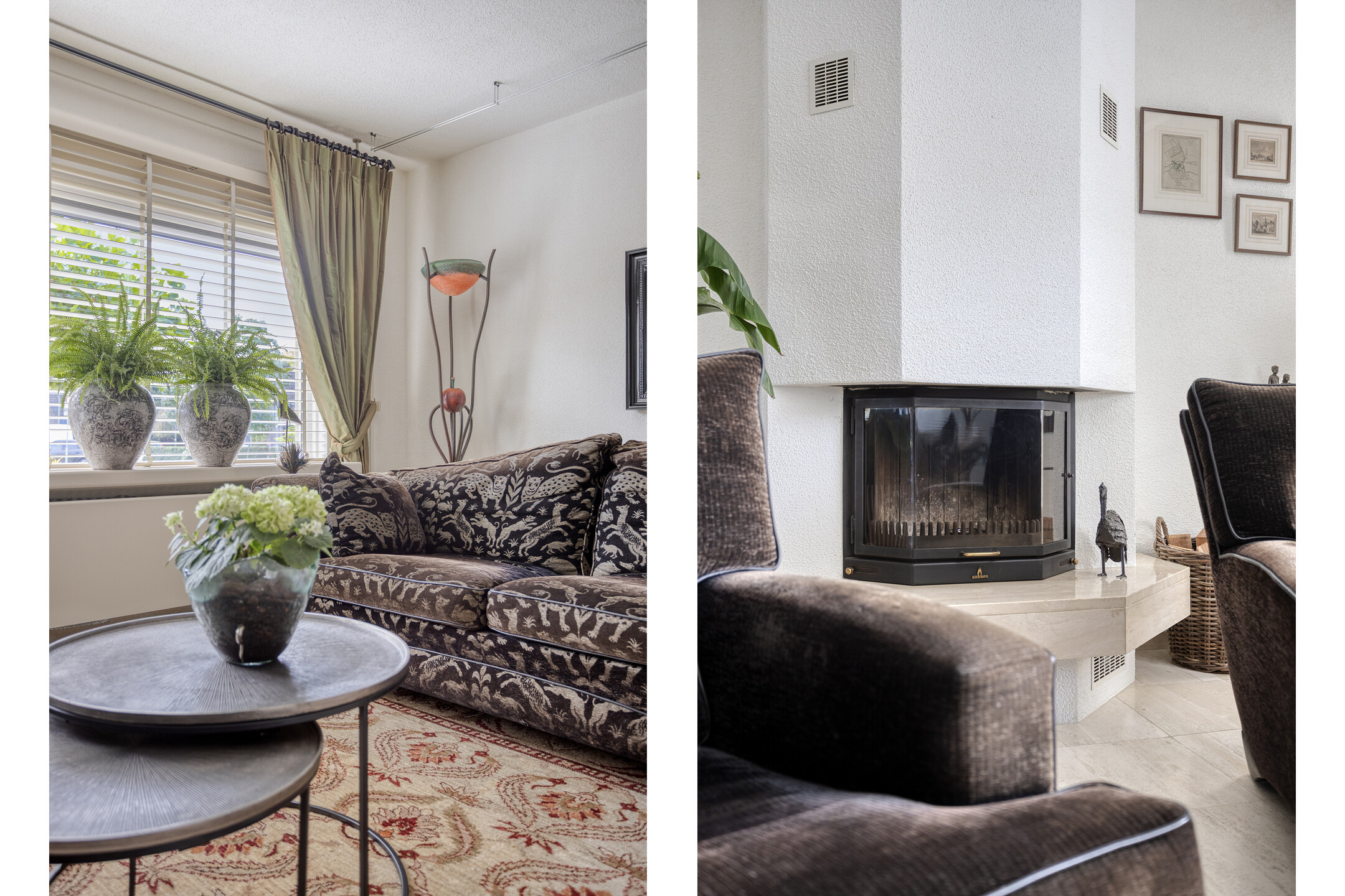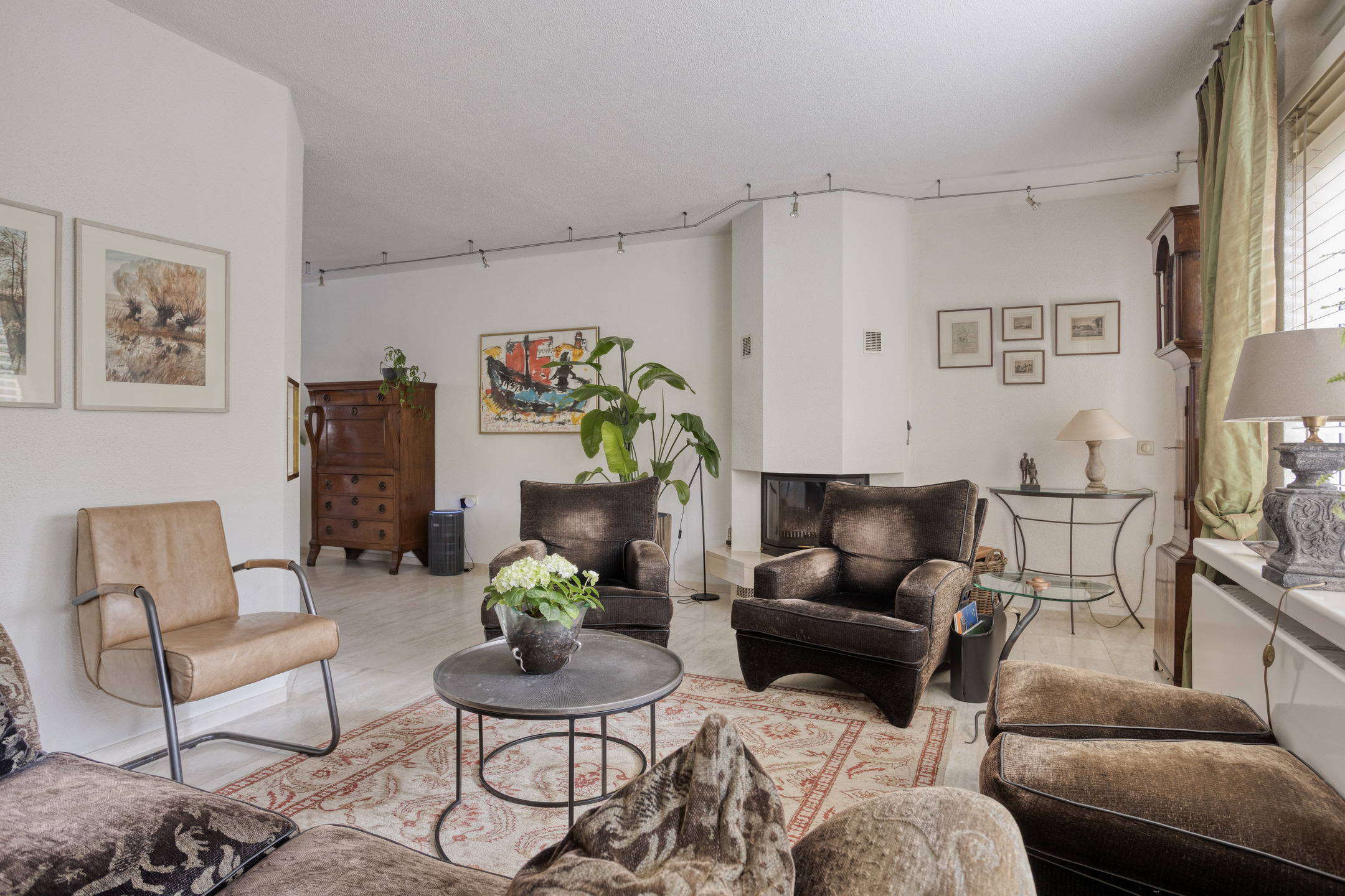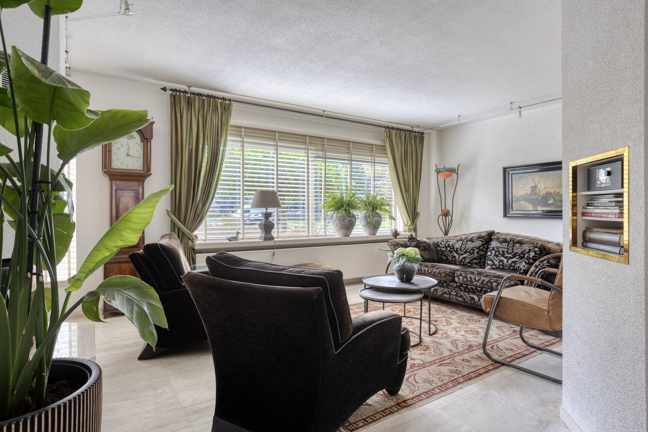 Je komt binnen in een ruime hal met garderobe, trap naar de eerste verdieping en een toiletruimte. Het toilet is vrijhangend, tot het plafond betegeld en voorzien van een fontein. De lichte woon- en eetkamer is aan de achterzijde uitgebouwd en beslaat samen met de keuken een oppervlakte van circa 64 m². Dankzij de uitbouw is aan de achterzijde een ruime woonkeuken ontstaan, perfect voor wie graag kookt en eet in één gezellige ruimte. De keuken is uitgerust met diverse inbouwapparatuur, waaronder een vaatwasmachine, magnetron, oven, koelkast en een 4-pits inductiekookplaat. Vanuit de keuken heb je bovendien direct toegang tot de aangebouwde garage van ca. 20 m². Aan de voorzijde bevindt zich de zitkamer met een gezellige haard. Dankzij de ruime voortuin en het vele openbaar groen heb je hier een vrij uitzicht, wat zorgt voor een heerlijk open gevoel. De begane grond is volledig voorzien van een natuurstenen vloer met vloerverwarming (bijverwarming). De wanden zijn geschilderd en het plafond is gestuukt.