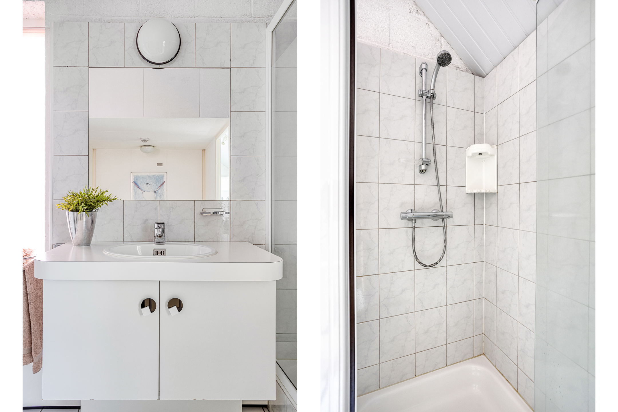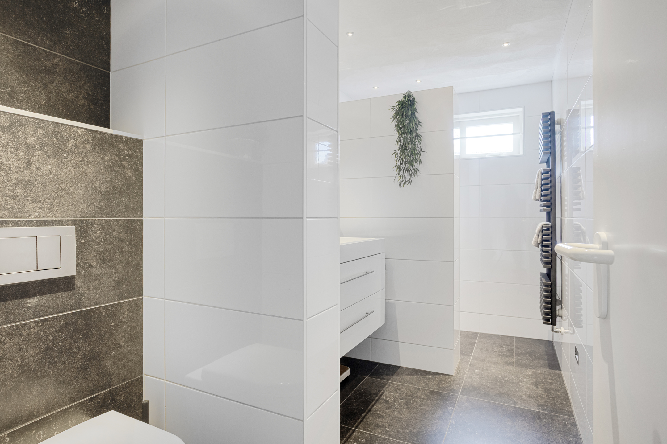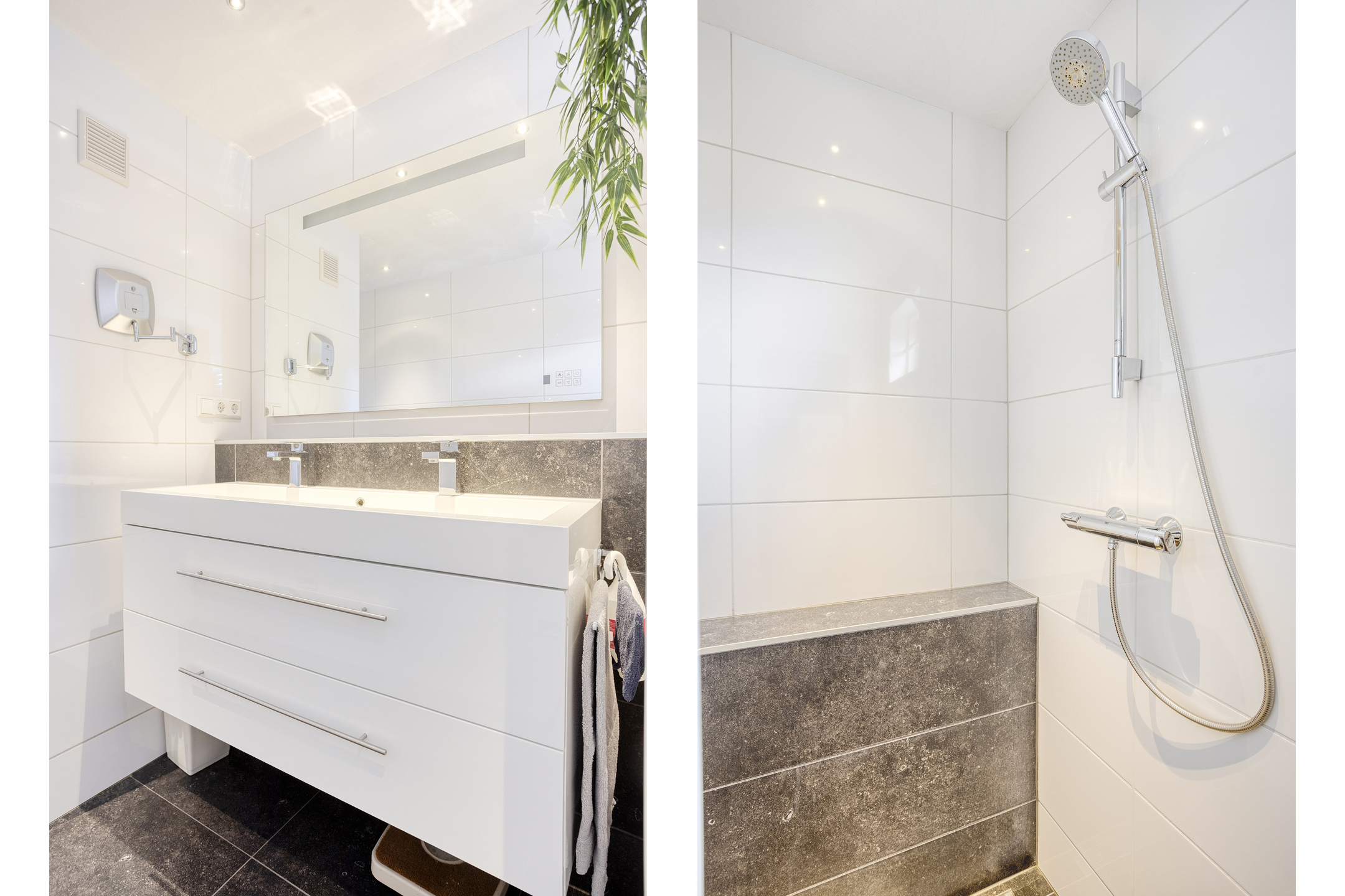 - Badkamervoorzieningen Toilet, douche, dubbele wastafel
