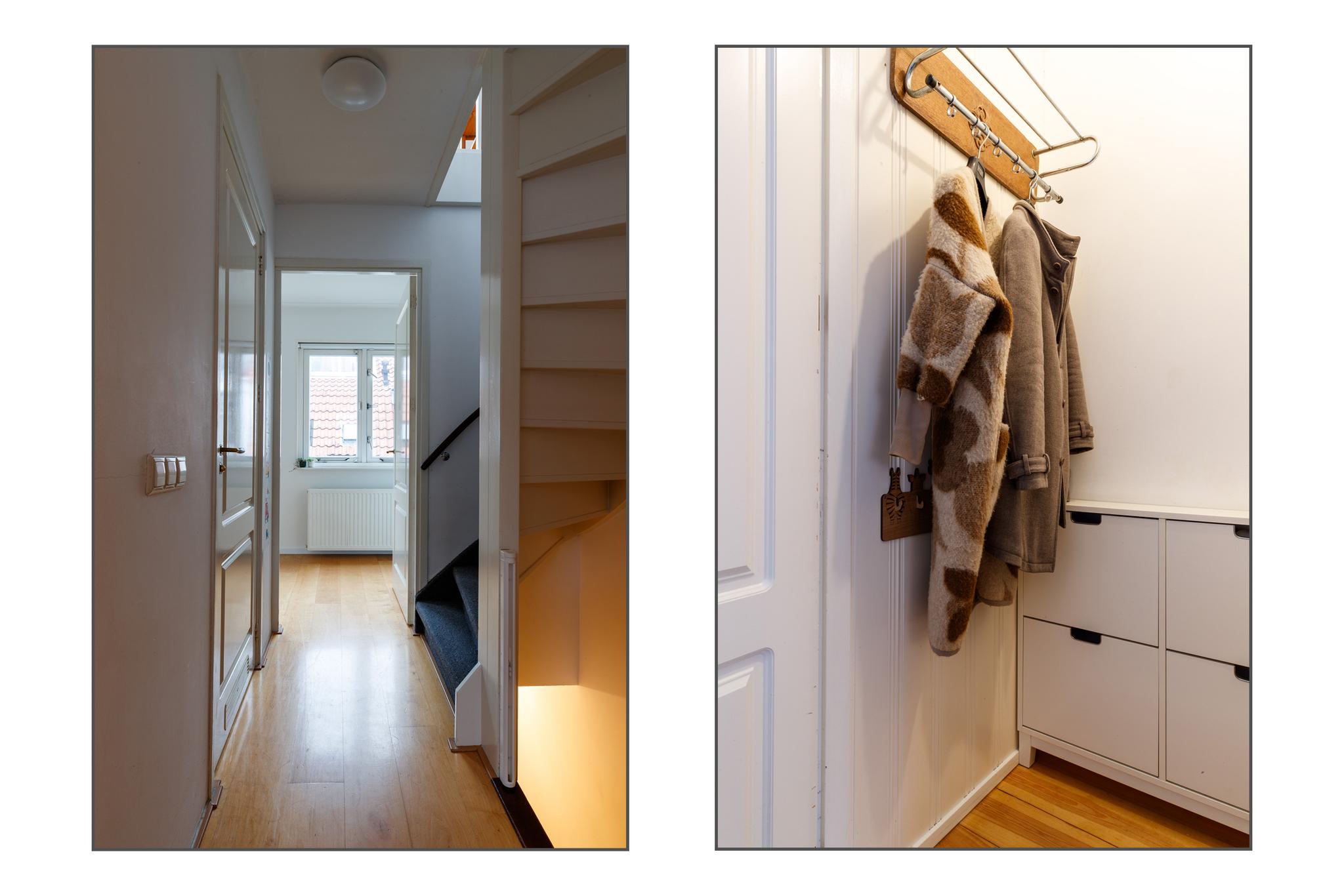 Entree, hal, garderobe, meterkast en toilet. Het toilet is staand en het geheel is tot het plafond betegeld. Woon-/eetkamer met aan de achterzijde in de aanbouw de keuken. De woon-/eetkamer heeft een houten vloer, gestuukte wanden en een gestuukt plafond. Er is een ruime bergkast onder de trap aanwezig. In de aanbouw bevindt zich de keuken. De keuken (2016) is in een L-opstelling en is voorzien van een 4-pits inductie kookplaat, RVS afzuigkap, vaatwasmachine, Grohe kokend water kraan en Amerikaanse koelkast (gaat mee). Vanuit de keuken is de stadstuin te bereiken. De tuin is in 2021 volledig gerenoveerd, bestraat en er is ook een nieuwe berging geplaatst. Het buitenschilderwerk is in 2018 uitgevoerd.