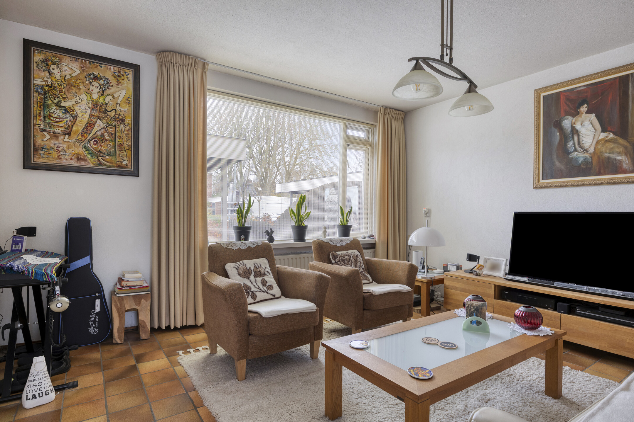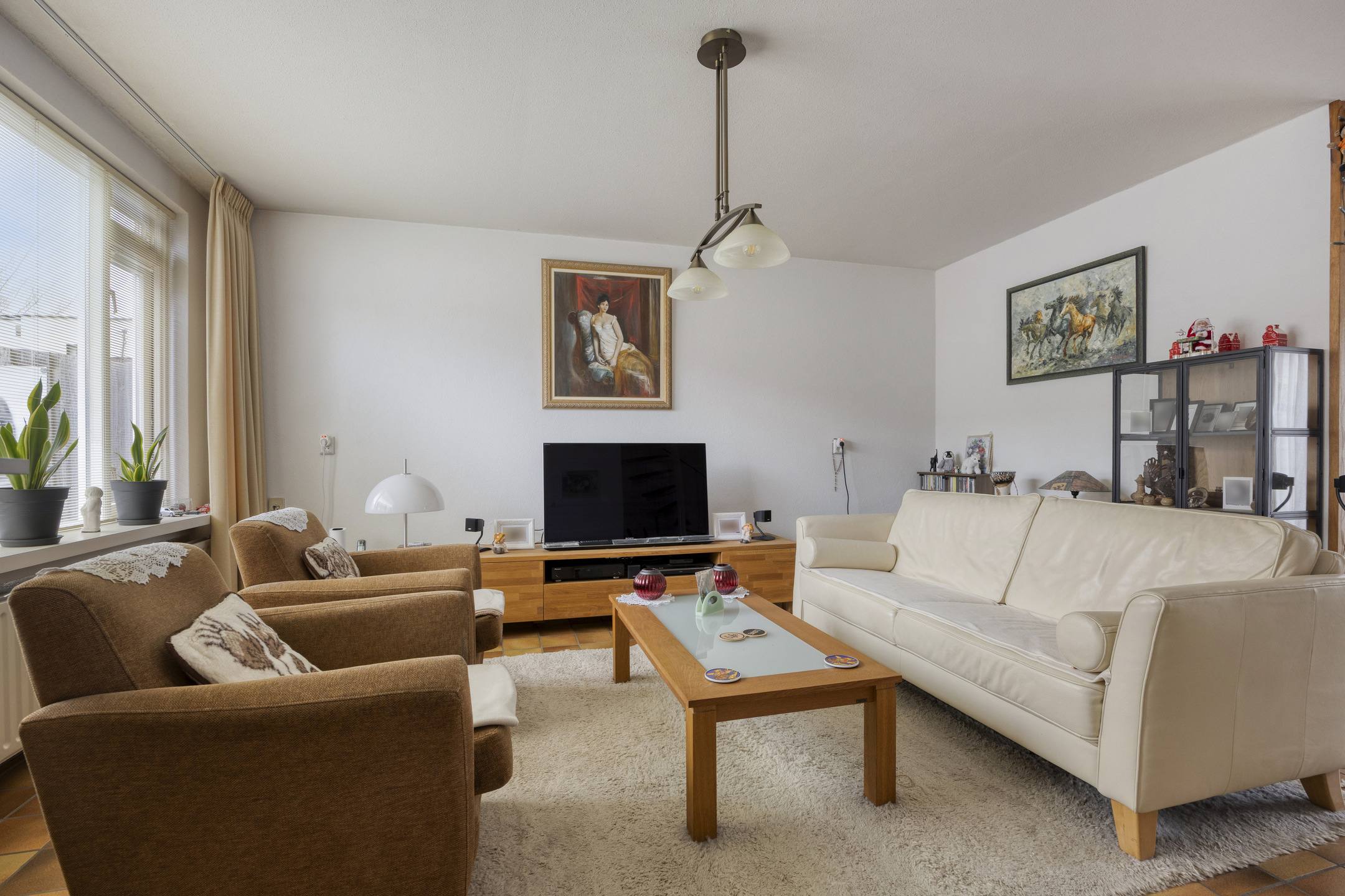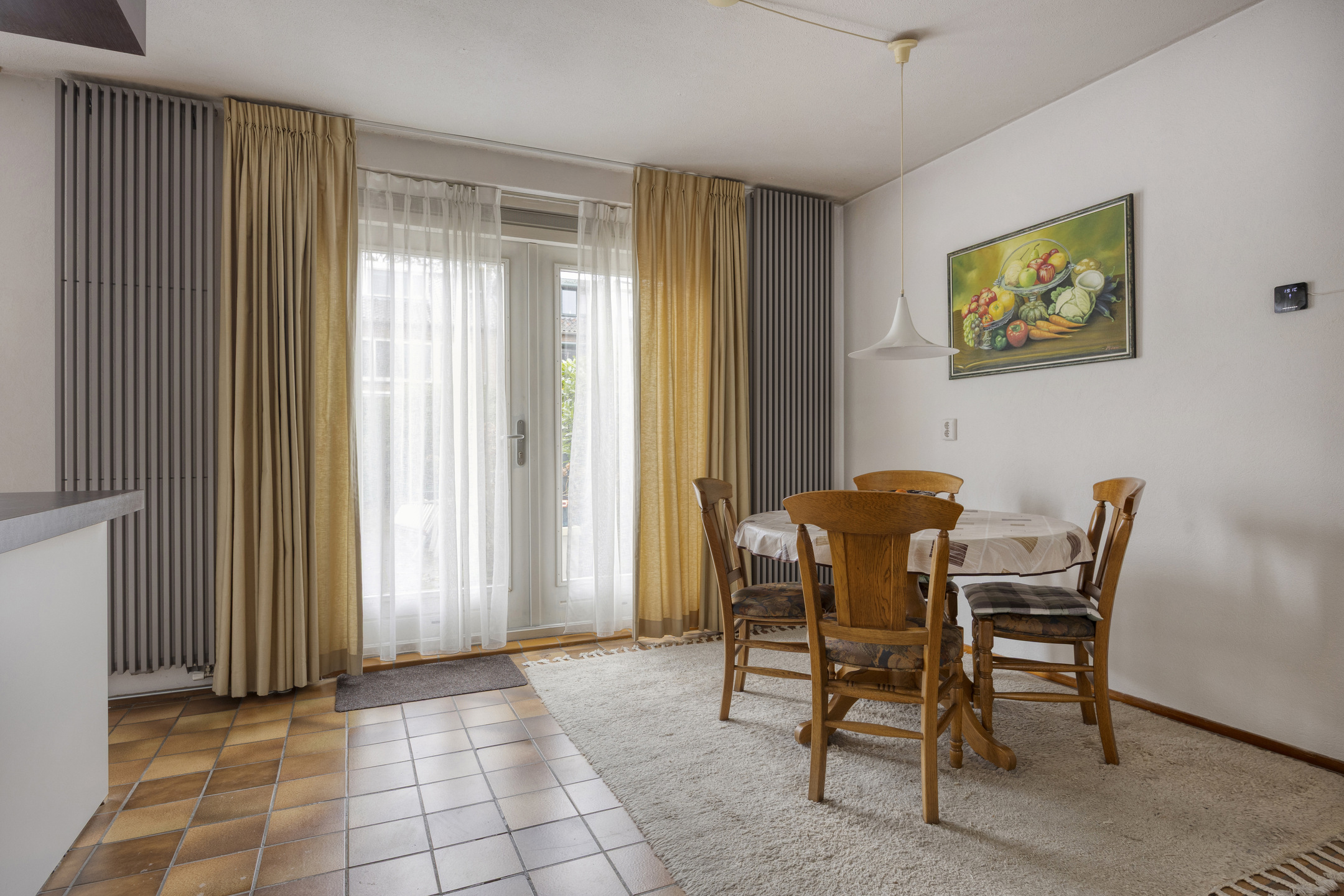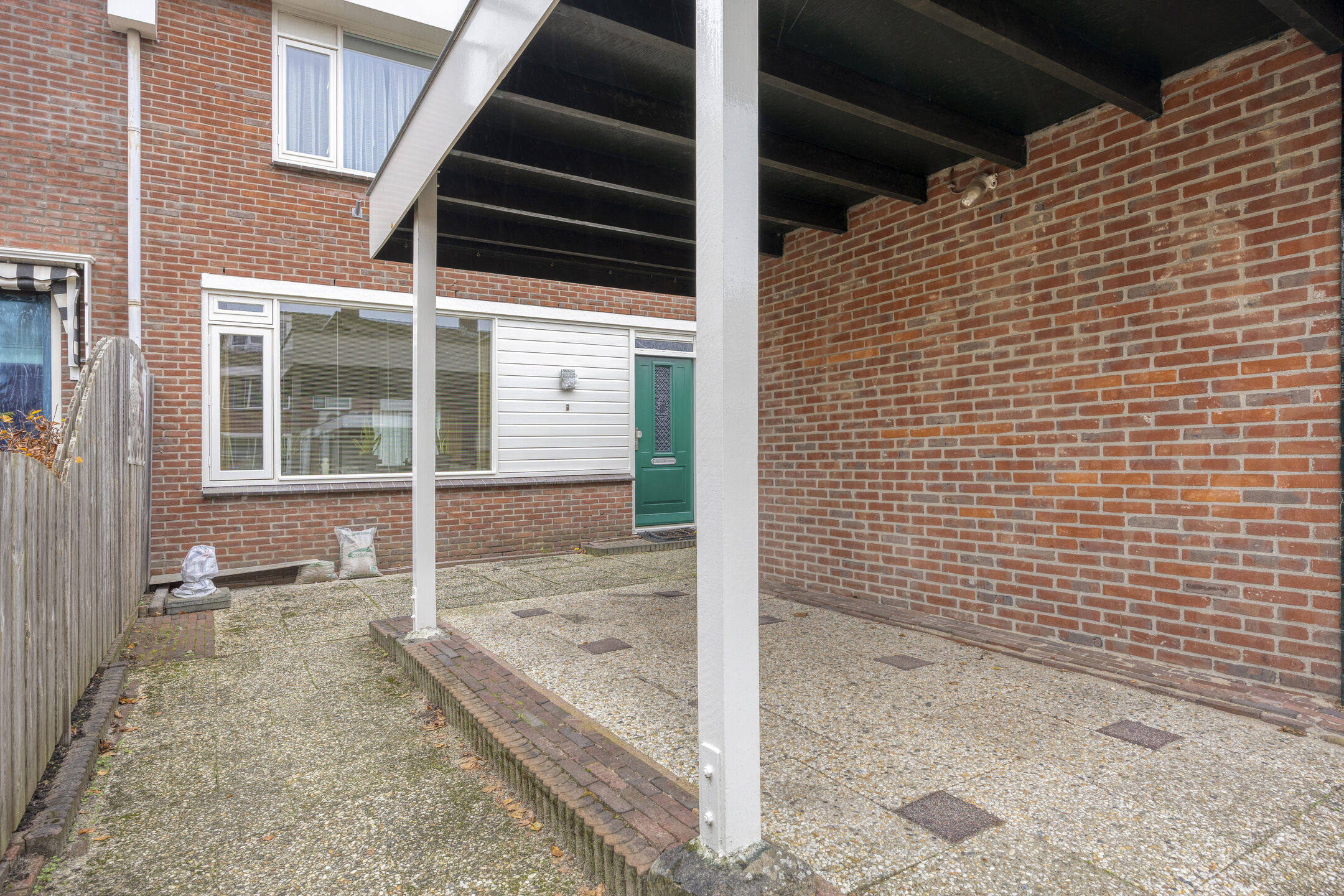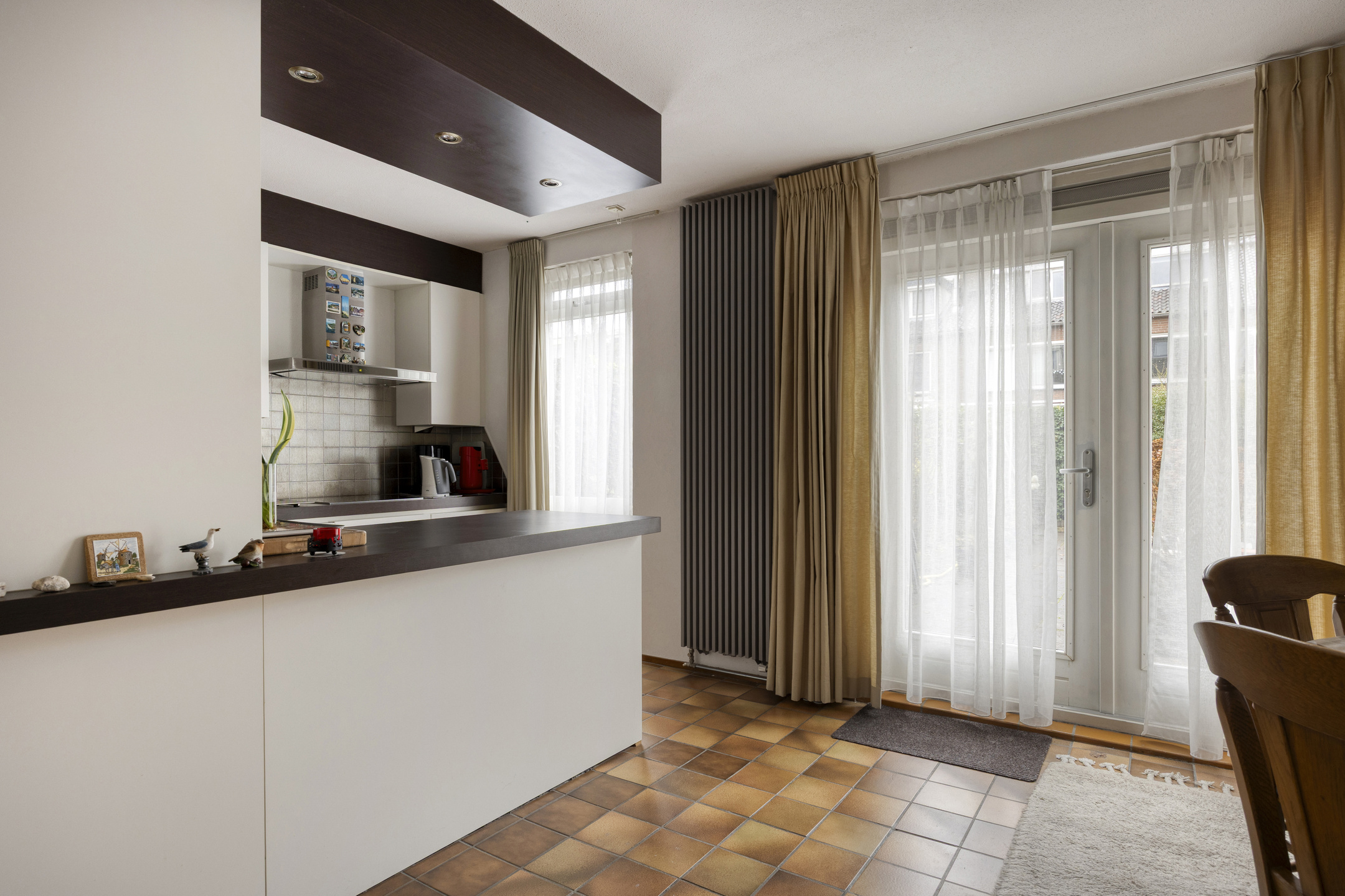 Je komt binnen in een hal met de meterkast, een plek voor de garderobe en het toilet. Het toilet is uitgerust met een staand closet en een fontein en is tot ongeveer 1.60 m betegeld. Vanuit de hal loop je door naar de lichte en ruim opgezette woon-/eetkamer van circa 43 m² (inclusief de keuken). De woonkamer heeft een plavuizen vloer en schilderwerk wanden. De keuken in L-opstelling is in 2009 vernieuwd en voorzien van een 4-pits keramische kookplaat, afzuigkap, oven, koelkast, vaatwasmachine en vriezer. Via de vernieuwde openslaande deuren stap je zo de achtertuin in. Aan de voorzijde vind je een stenen berging en een carport, ideaal voor extra opslag en het parkeren van je auto.