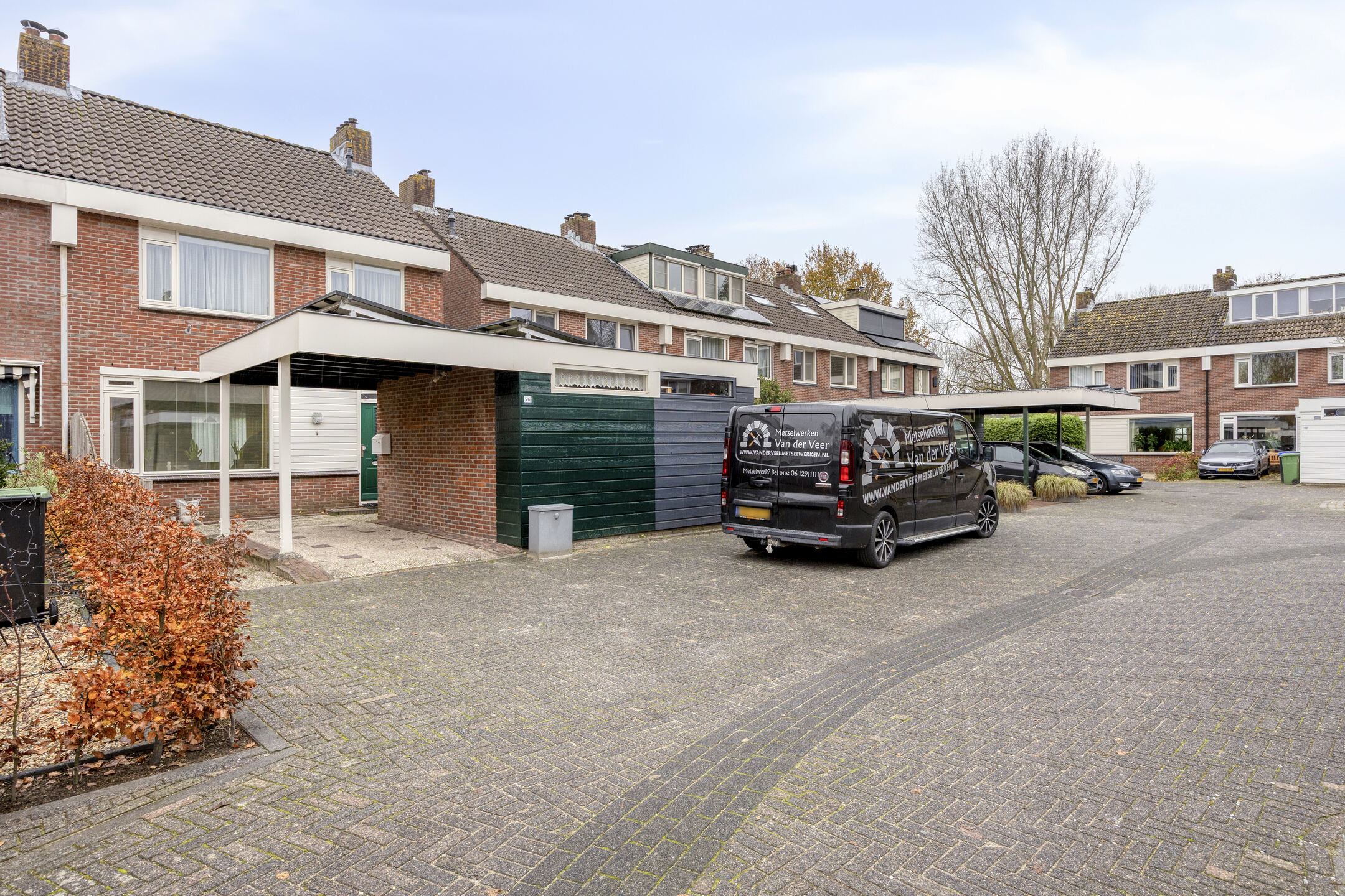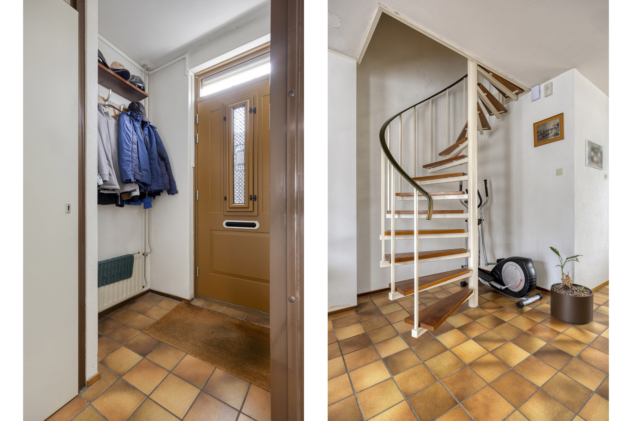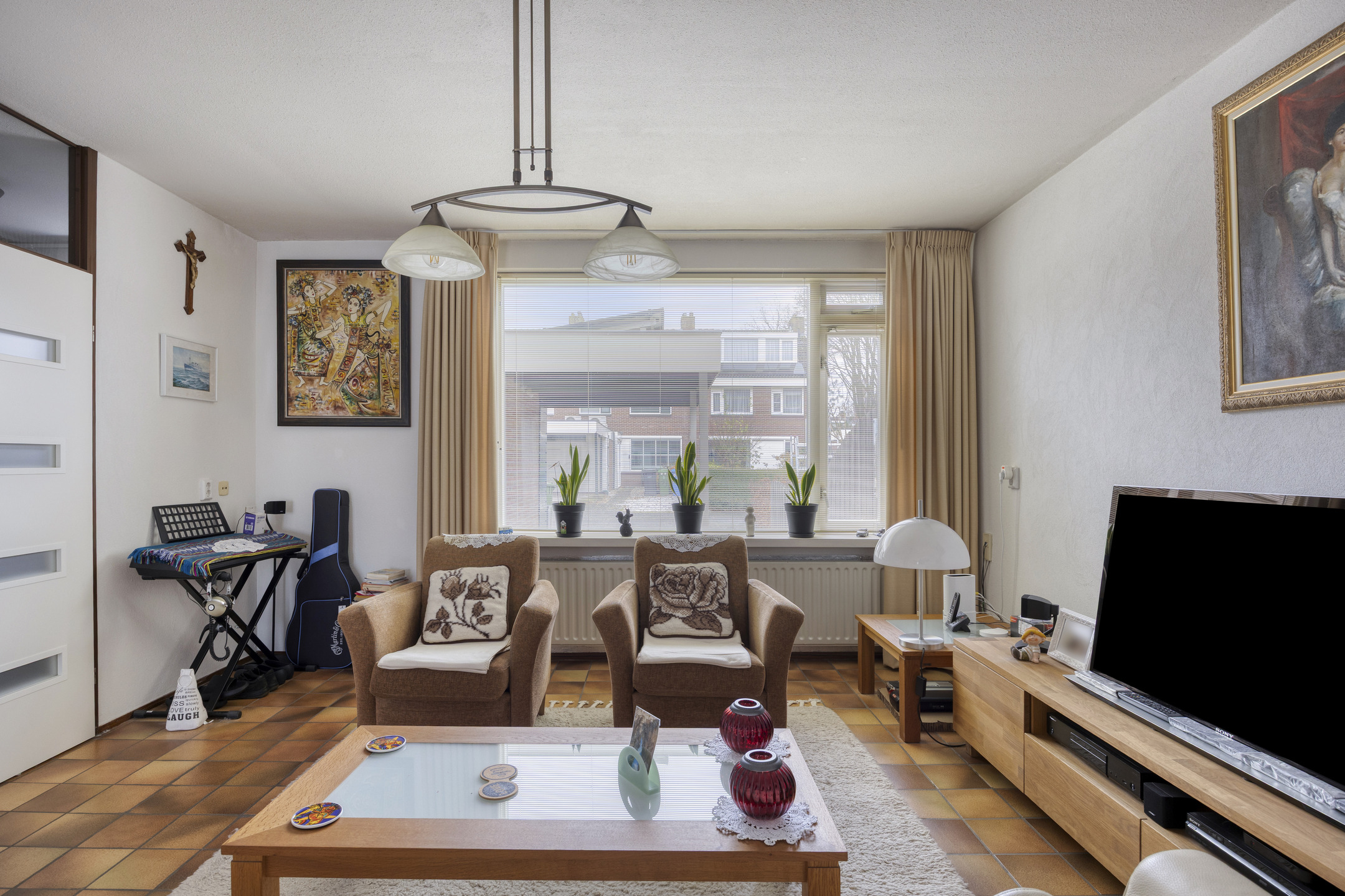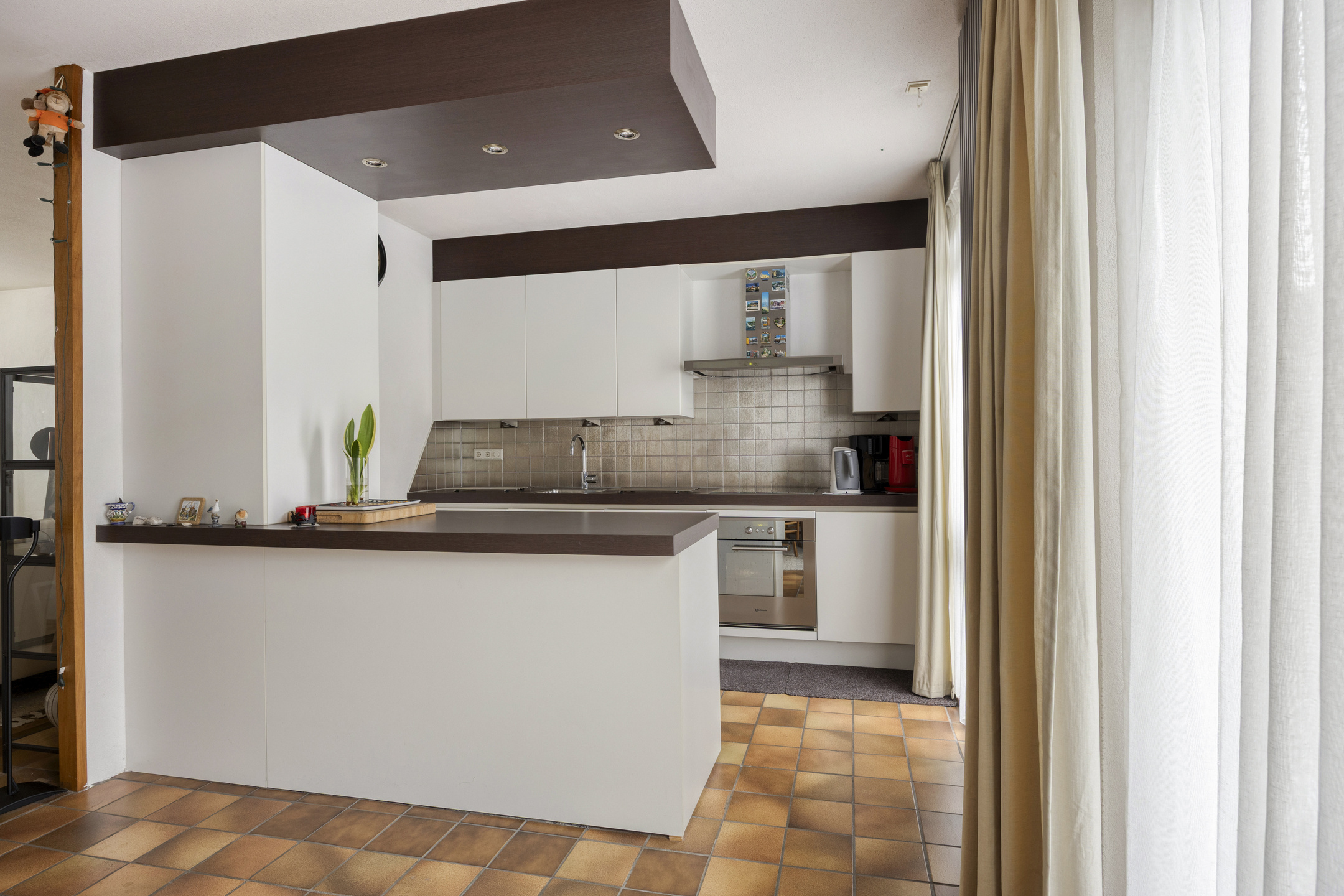 Je komt binnen in een hal met de meterkast, een plek voor de garderobe en het toilet. Het toilet is uitgerust met een staand closet en een fontein en is tot ongeveer 1.60 m betegeld. Vanuit de hal loop je door naar de lichte en ruim opgezette woon-/eetkamer van circa 43 m² (inclusief de keuken). De woonkamer heeft een plavuizen vloer en schilderwerk wanden. De keuken in L-opstelling is in 2009 vernieuwd en voorzien van een 4-pits keramische kookplaat, afzuigkap, oven, koelkast, vaatwasmachine en vriezer. Via de vernieuwde openslaande deuren stap je zo de achtertuin in. Aan de voorzijde vind je een stenen berging en een carport, ideaal voor extra opslag en het parkeren van je auto.