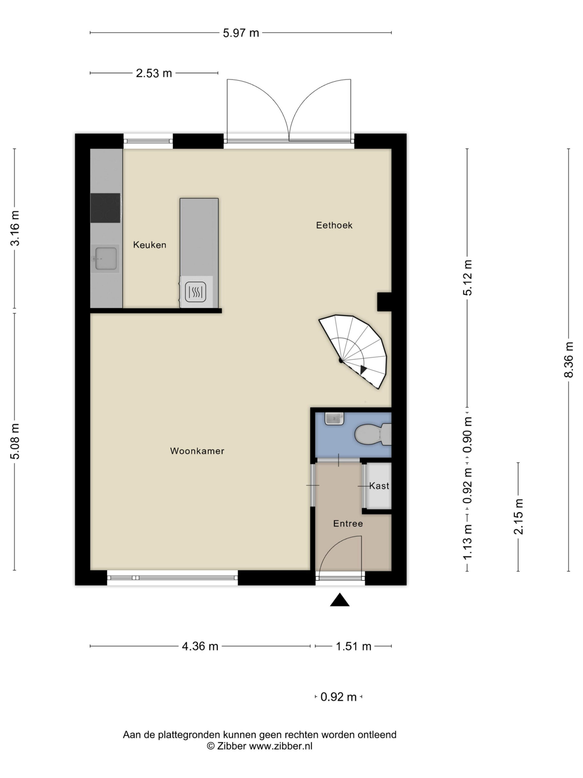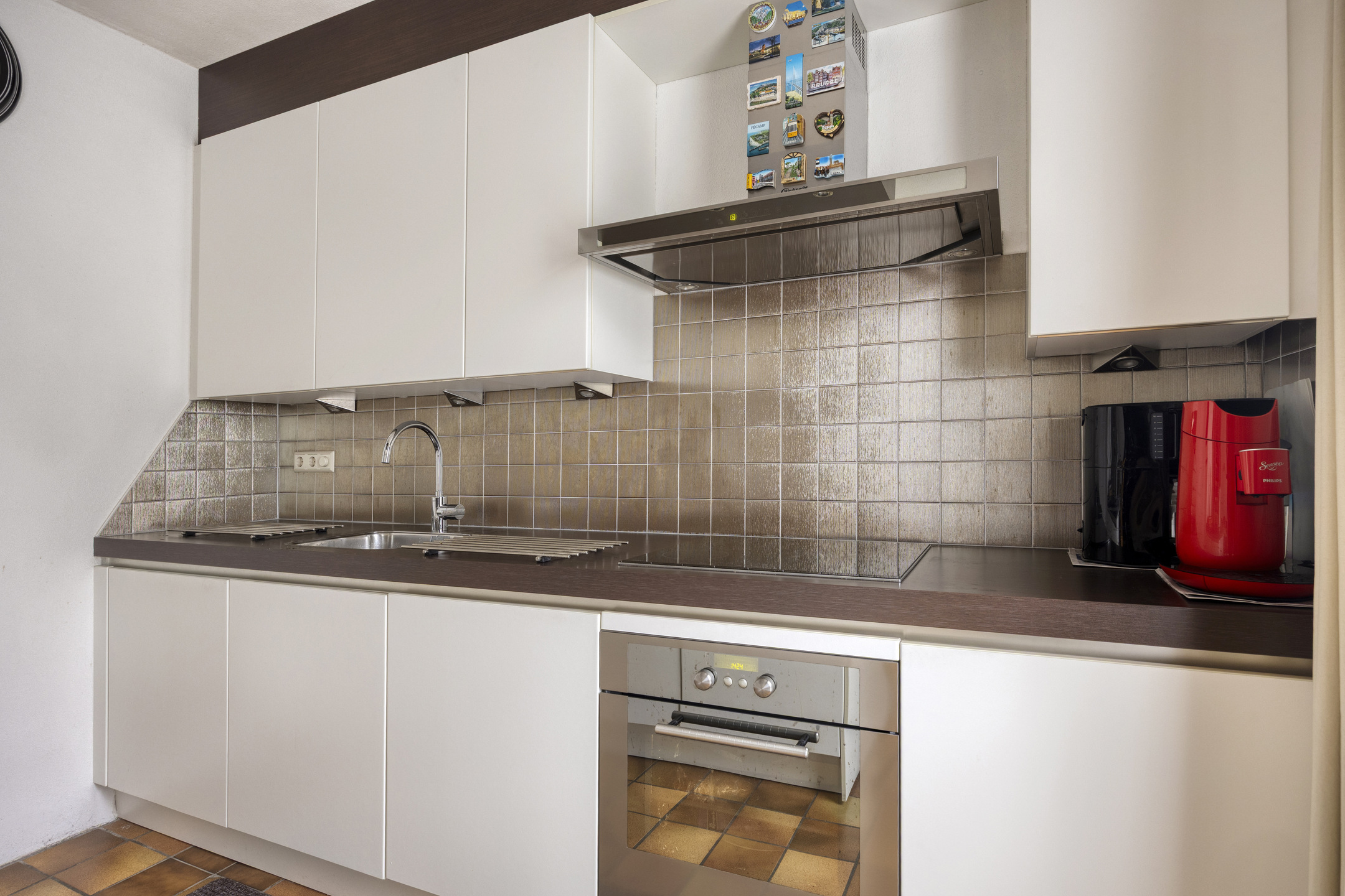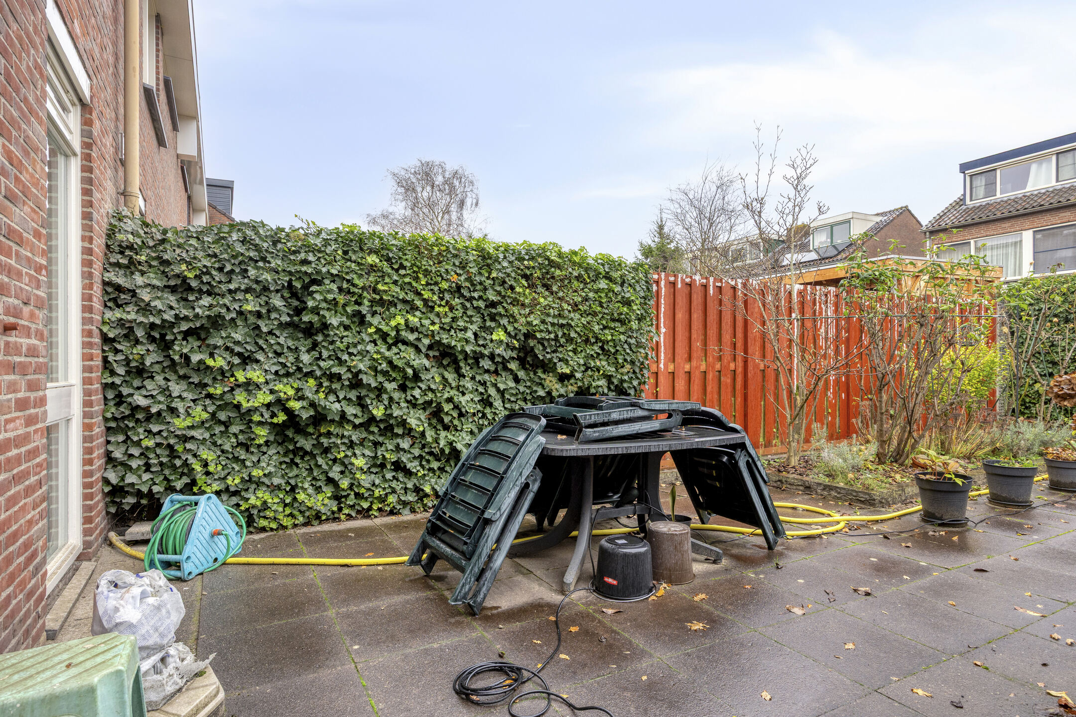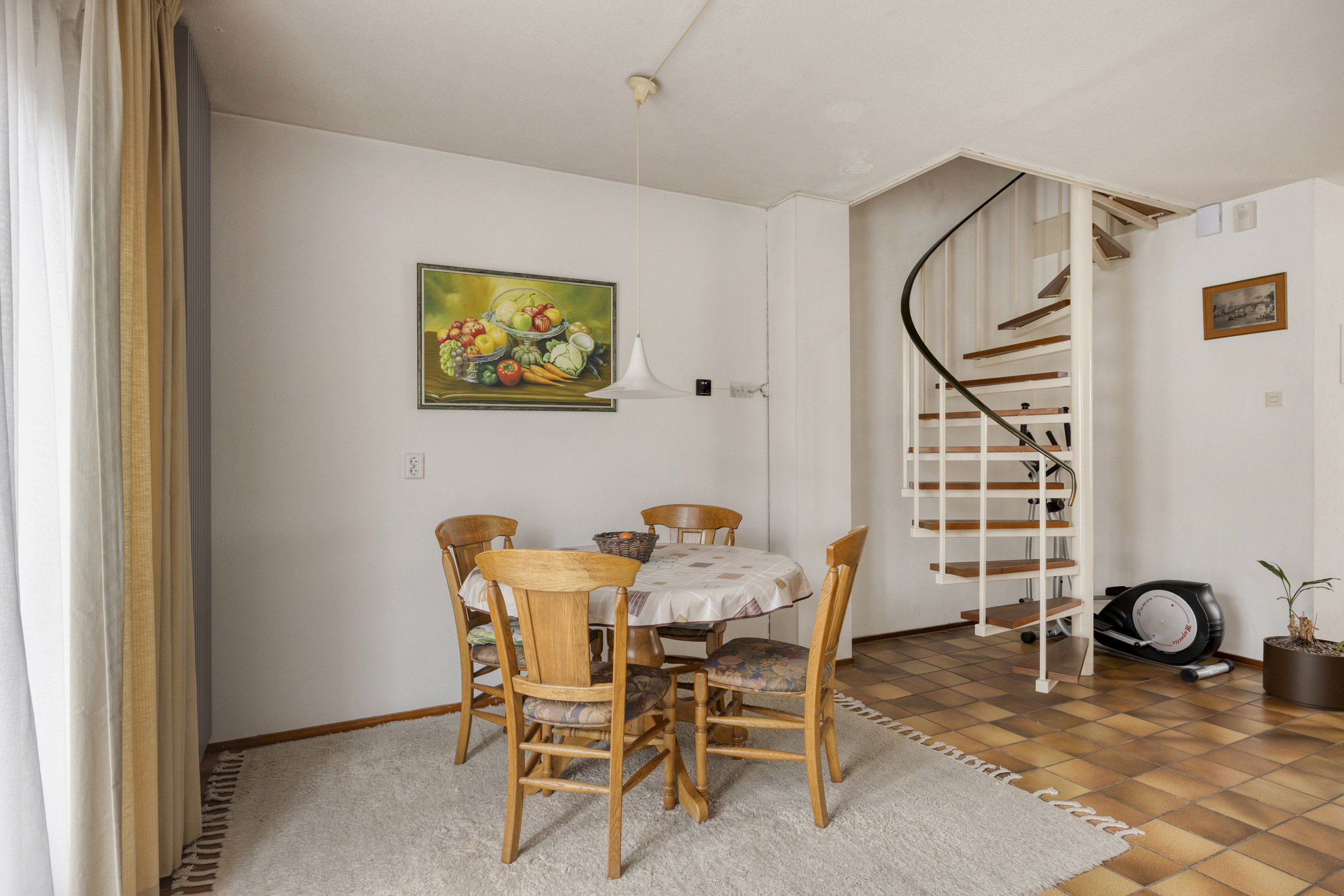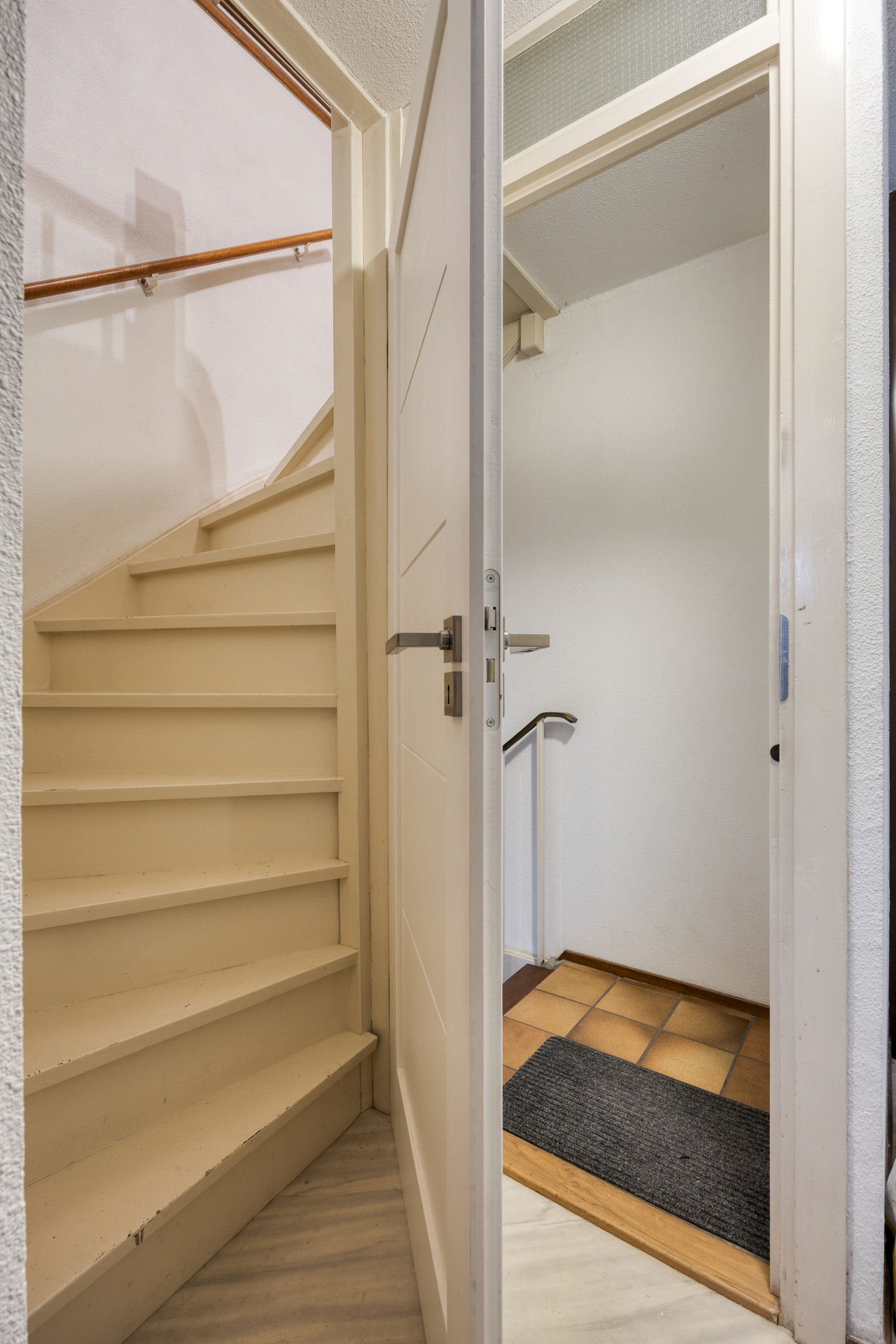 Je komt binnen in een hal met de meterkast, een plek voor de garderobe en het toilet. Het toilet is uitgerust met een staand closet en een fontein en is tot ongeveer 1.60 m betegeld. Vanuit de hal loop je door naar de lichte en ruim opgezette woon-/eetkamer van circa 43 m² (inclusief de keuken). De woonkamer heeft een plavuizen vloer en schilderwerk wanden. De keuken in L-opstelling is in 2009 vernieuwd en voorzien van een 4-pits keramische kookplaat, afzuigkap, oven, koelkast, vaatwasmachine en vriezer. Via de vernieuwde openslaande deuren stap je zo de achtertuin in. Aan de voorzijde vind je een stenen berging en een carport, ideaal voor extra opslag en het parkeren van je auto.