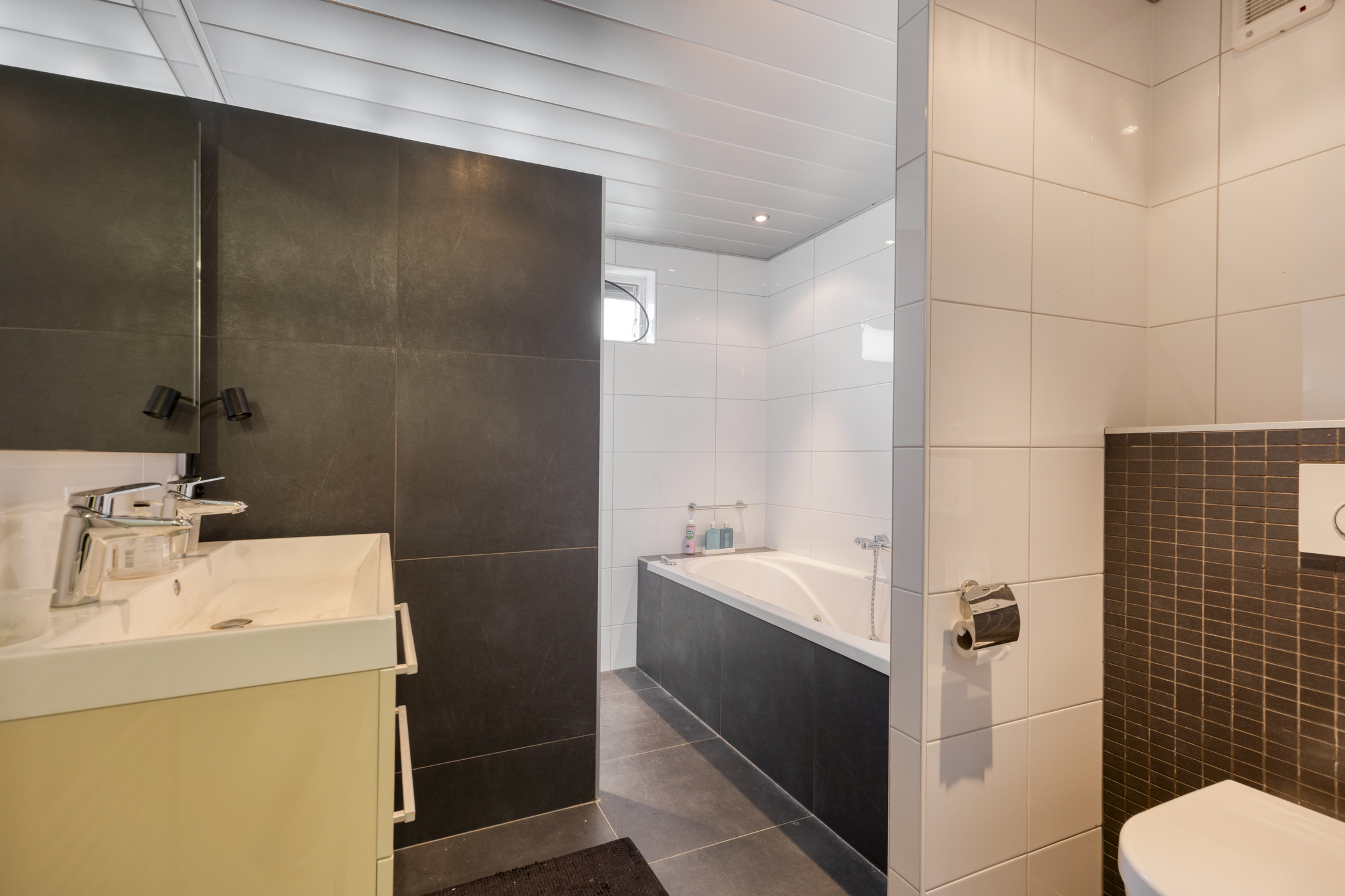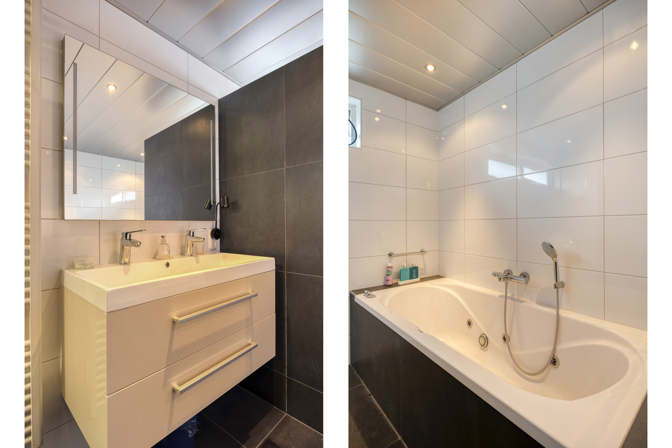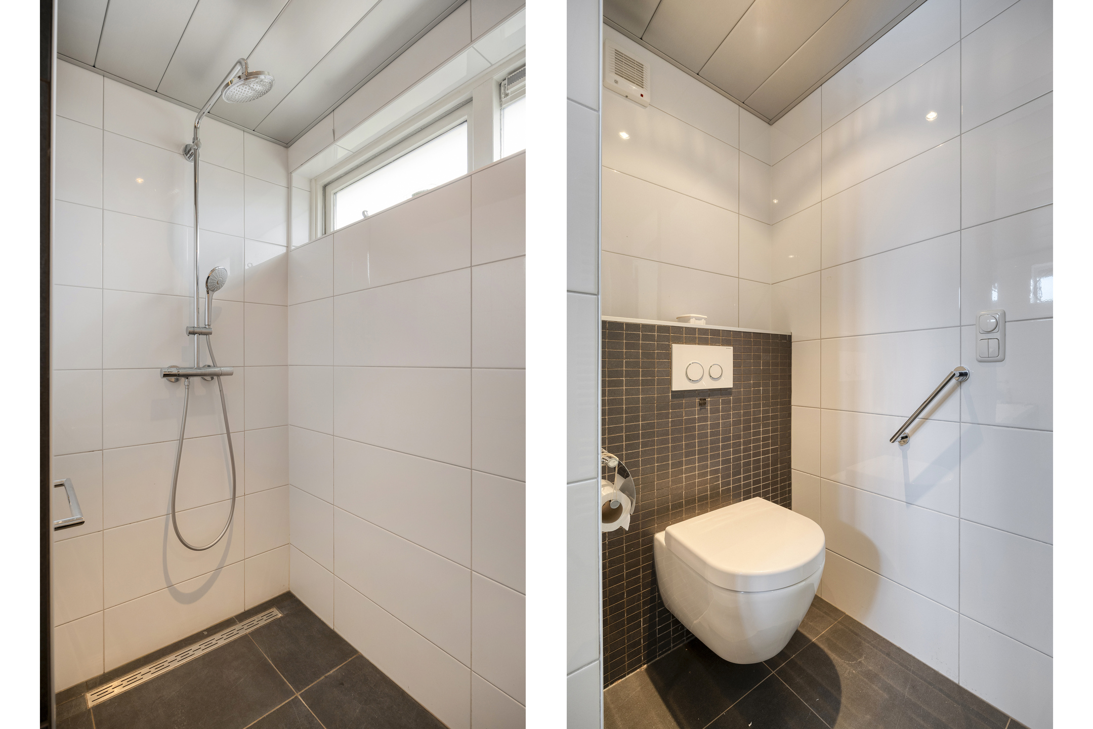 - Badkamervoorzieningen Ligbad, toilet, douche, dubbele wastafel
