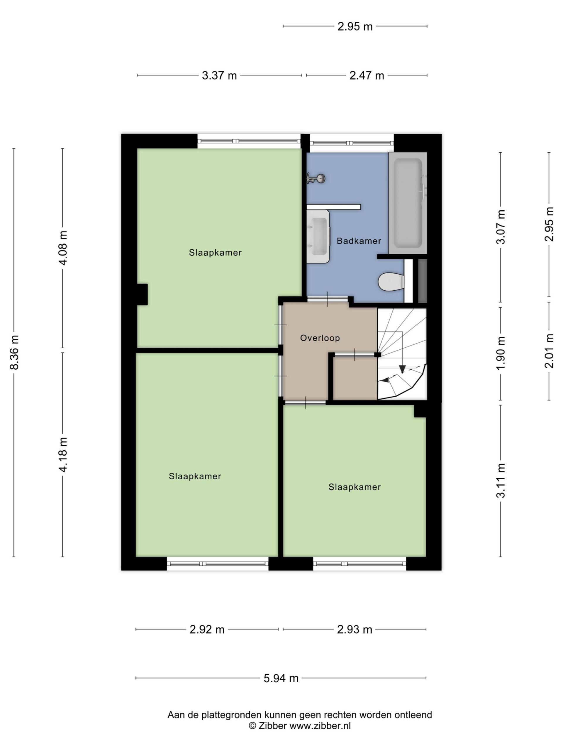 Op deze verdieping zijn drie slaapkamers en de badkamer. De slaapkamers zijn stuk voor stuk ruim en hebben houten kozijnen met dubbel glas. De hele verdieping is afgewerkt met vloerbedekking en schilderwerk op de wanden. De badkamer is compleet ingericht met een ruime douche, een dubbele wastafel, een vrijhangend toilet en een ligbad. De wanden zijn tot aan het plafond betegeld, wat de ruimte een verzorgde en moderne uitstraling geeft.