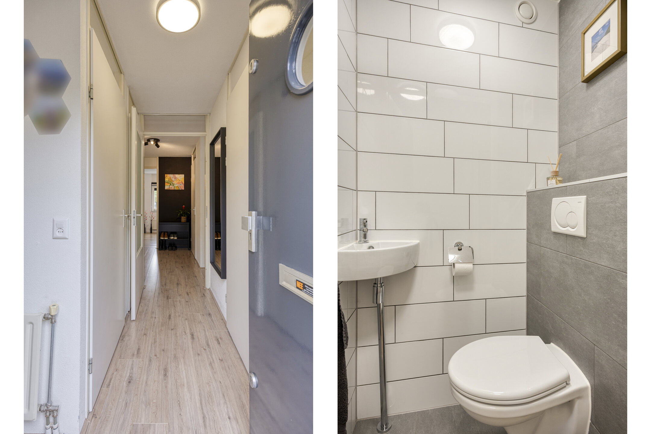 Door de opzet van de woning is er een ruime entree en hal aanwezig. Op de begane grond vind je de twee slaapkamers, de badkamer, het toilet en 2 inpandige bergingen. De hoofdslaapkamer is ruim van opzet en voorzien van een walk-in-closet. De laminaatvloer en de wanden met fijn grenol en schilderwerk maken het geheel een rustige en verzorgde ruimte. De tweede slaapkamer is recent gemoderniseerd en afgewerkt met een visgraat parketvloer. Daarnaast is er onder de trap een handige inbouwkast aanwezig. Het separate toilet is volledig tot het plafond betegeld en uitgevoerd met een vrijhangend toilet en fontein. De badkamer is eveneens betegeld tot aan het plafond en beschikt over een douche en een dubbel wastafelmeubel. De maisonnette beschikt over twee inpandige bergingen. De eerste biedt plek voor de wasmachine en droger en herbergt tevens de c.v.-combiketel. De tweede berging ligt direct naast de voordeur en is ideaal te gebruiken als garderobe of extra opslagruimte.