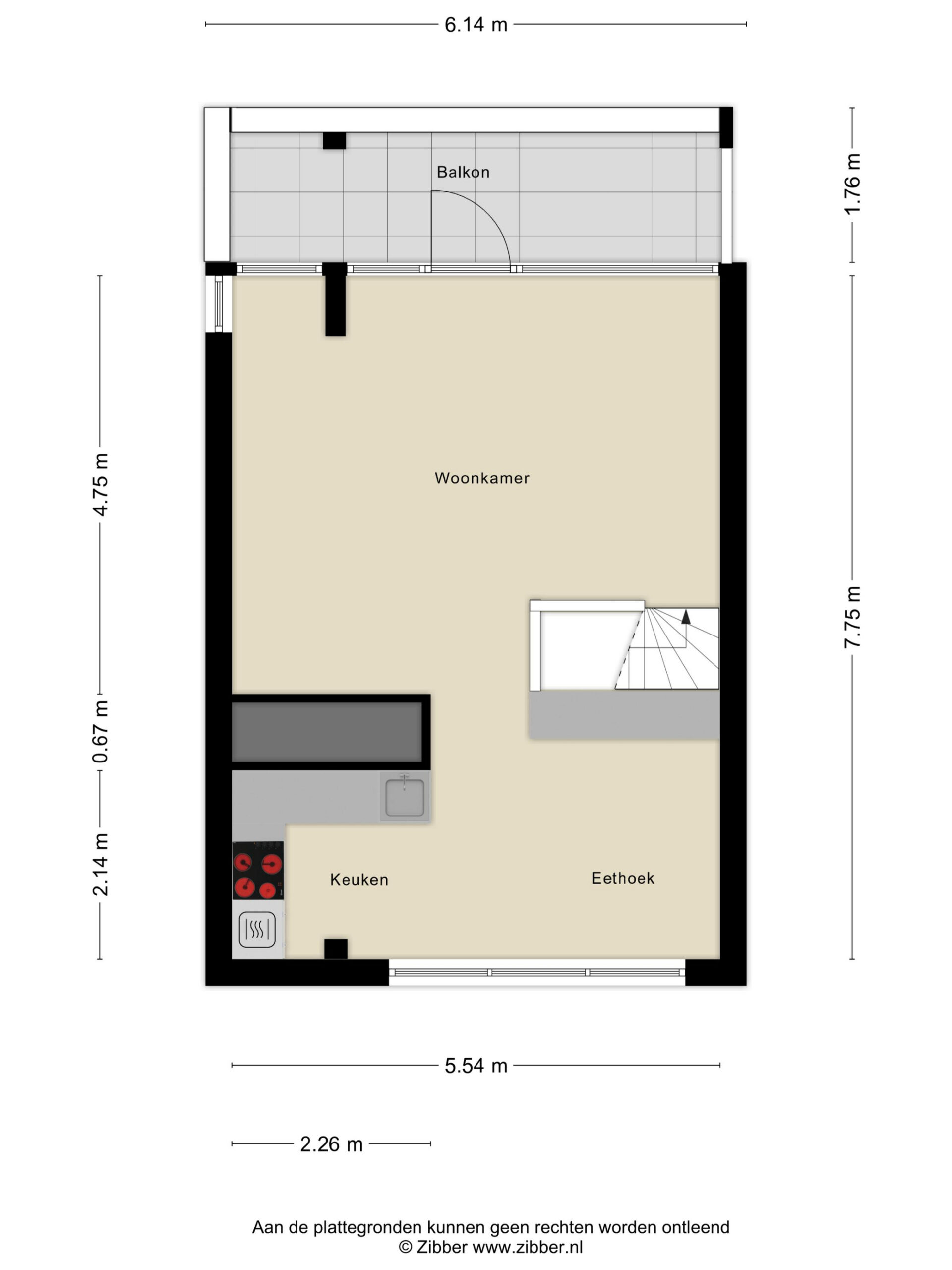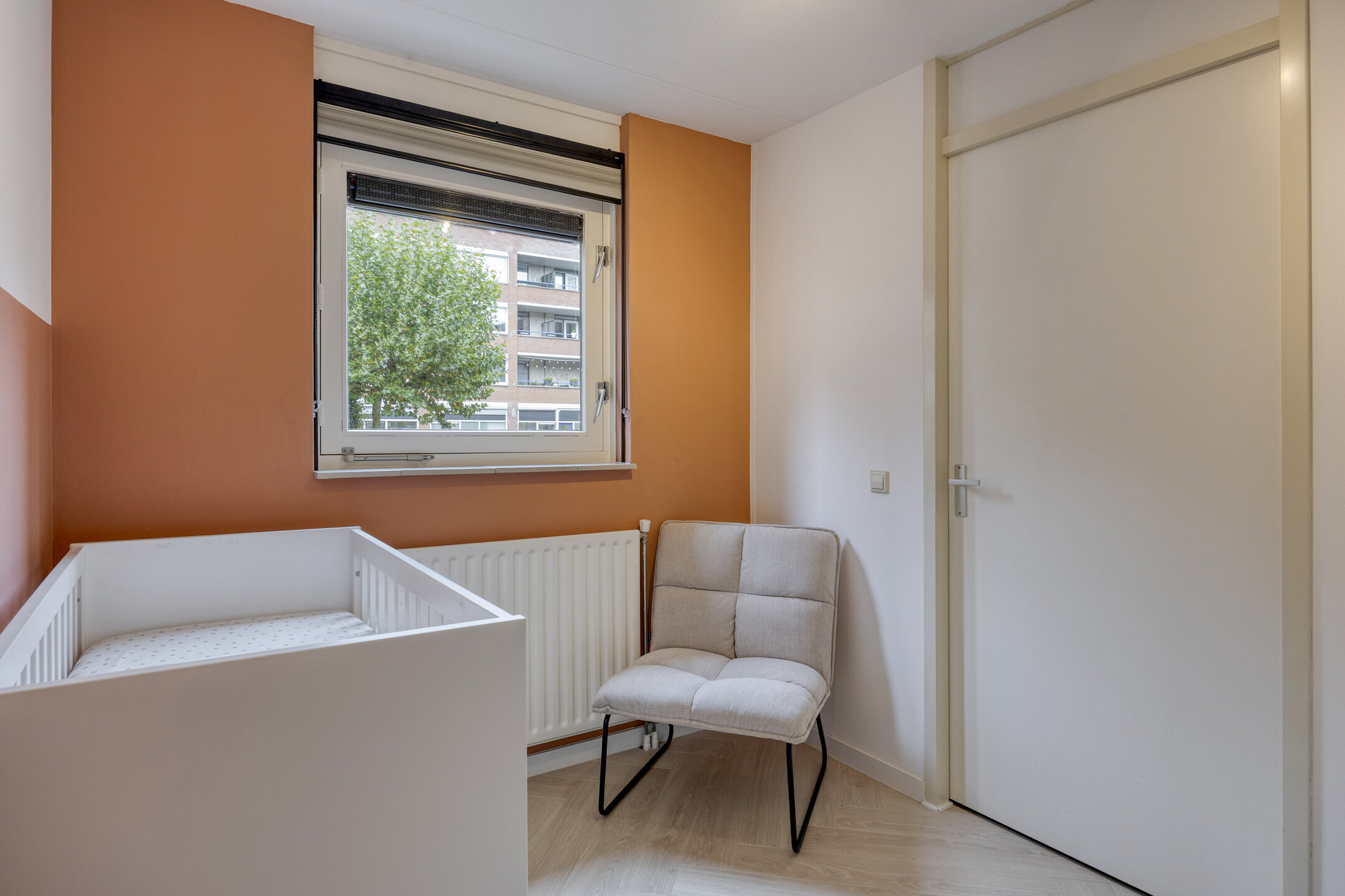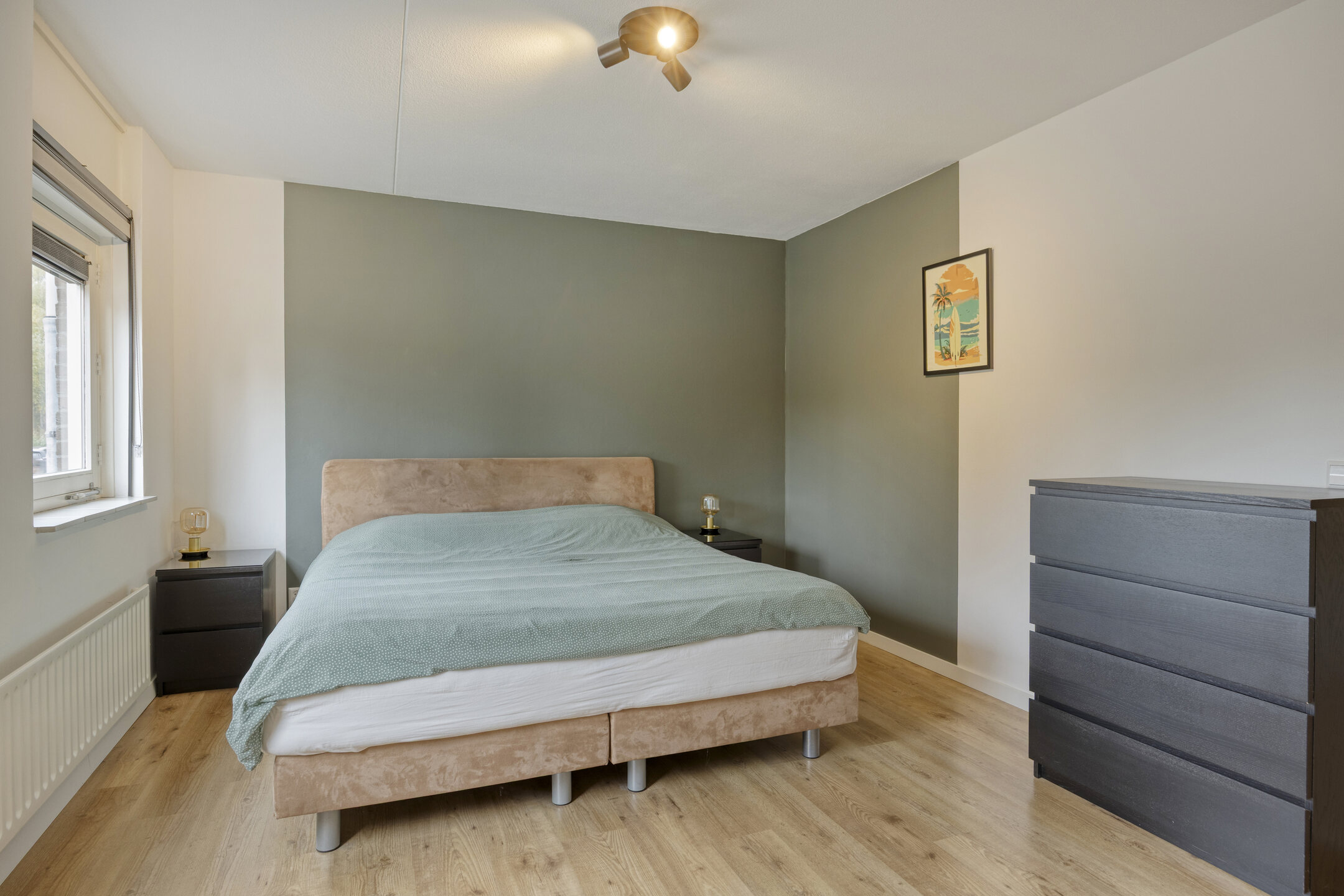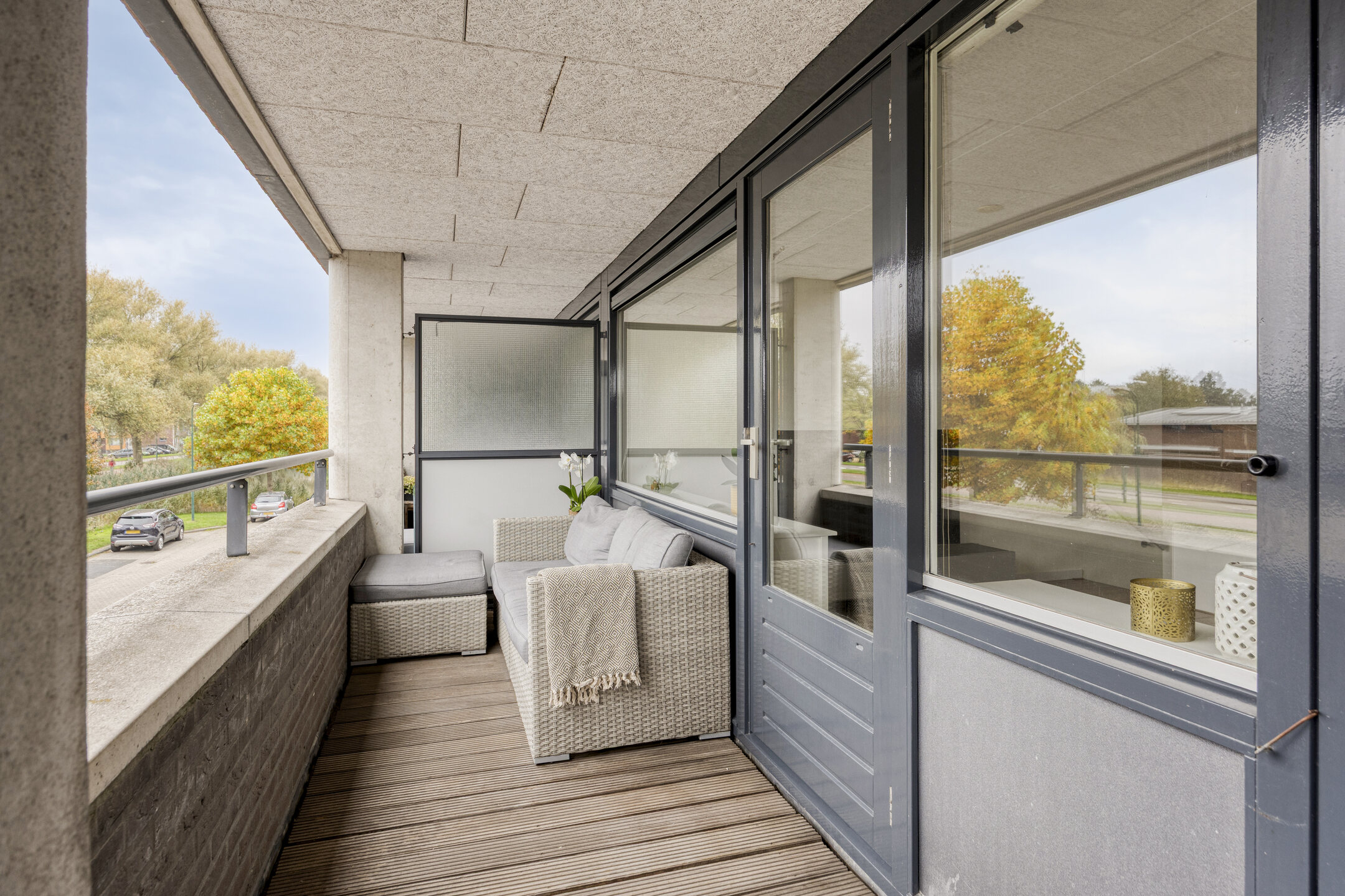 De eerste verdieping is volledig ingericht als leefruimte, met een lichte woonkamer en een open keuken. De laminaatvloer en de wanden met fijn granol en schilderwerk zorgen voor een verzorgde uitstraling. De keuken bevindt zich aan de voorzijde en is uitgevoerd in een hoekopstelling. Deze keuken, geplaatst in 2016, is uitgerust met een 4-pits inductiekookplaat, een rvs-afzuigkap (recirculatie), combi-magnetron, koelkast en vaatwasmachine. Het geheel is afgewerkt met een granito aanrechtblad. Aan de zuidoostzijde ligt over de volle breedte van de maisonnette een overdekt balkon. Dankzij de ligging op de eerste verdieping geniet je hier van een mooi uitzicht en heb je bovendien veel privacy, zonder directe inkijk vanaf de straat.