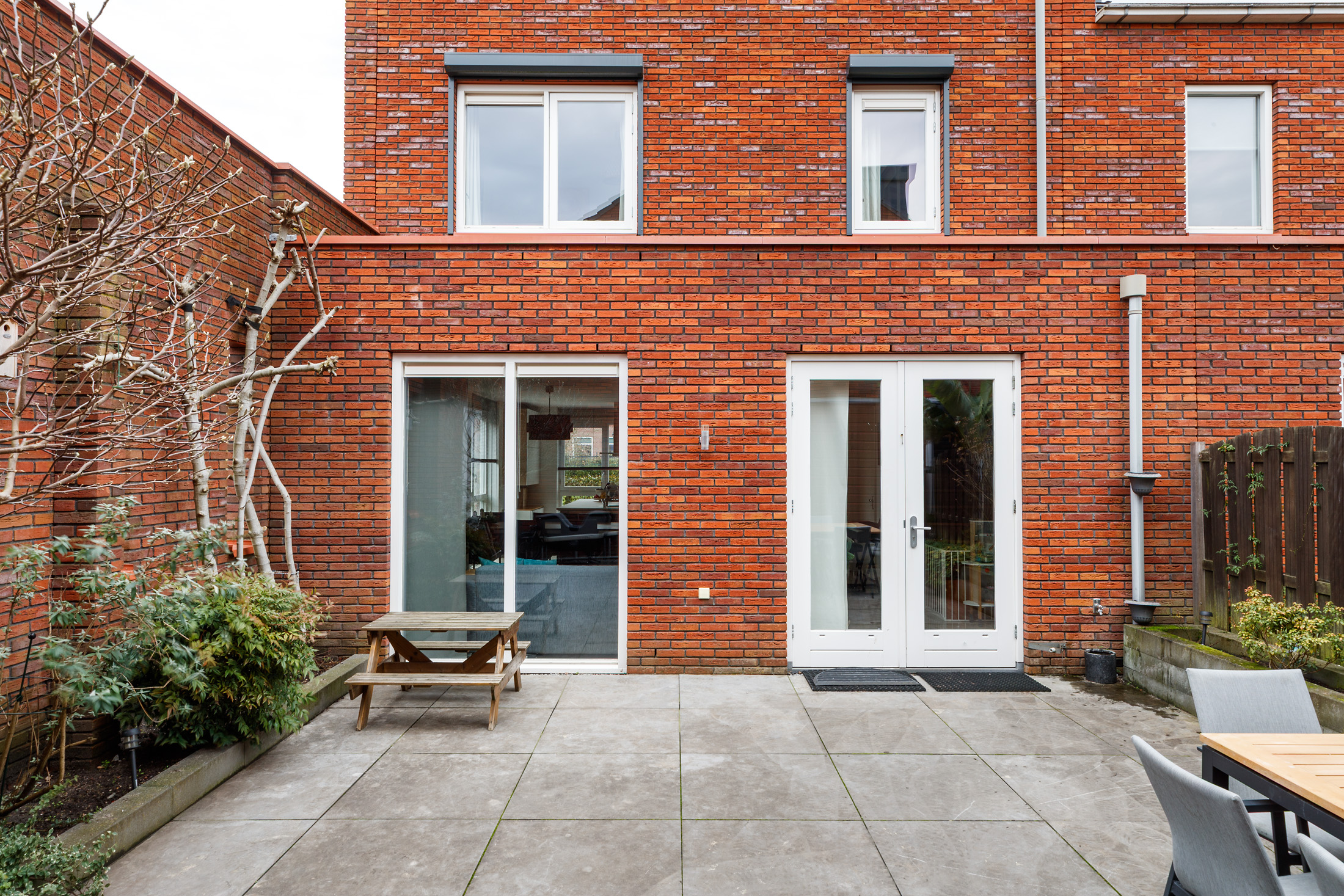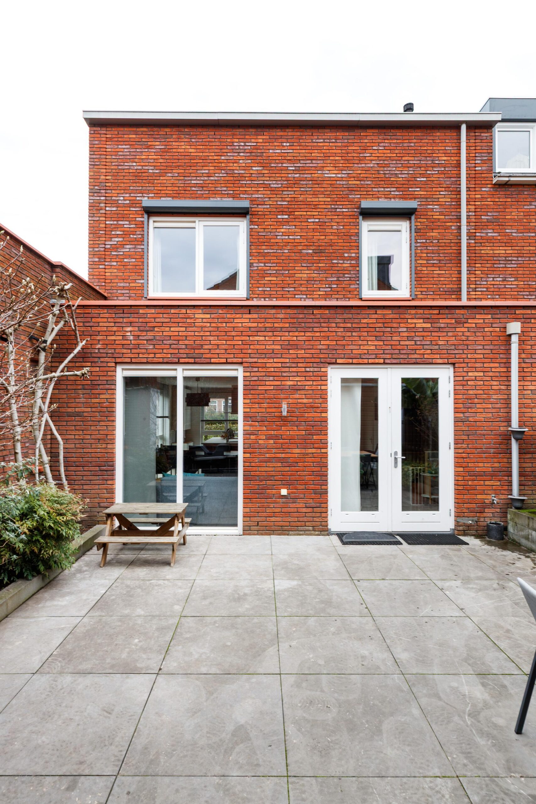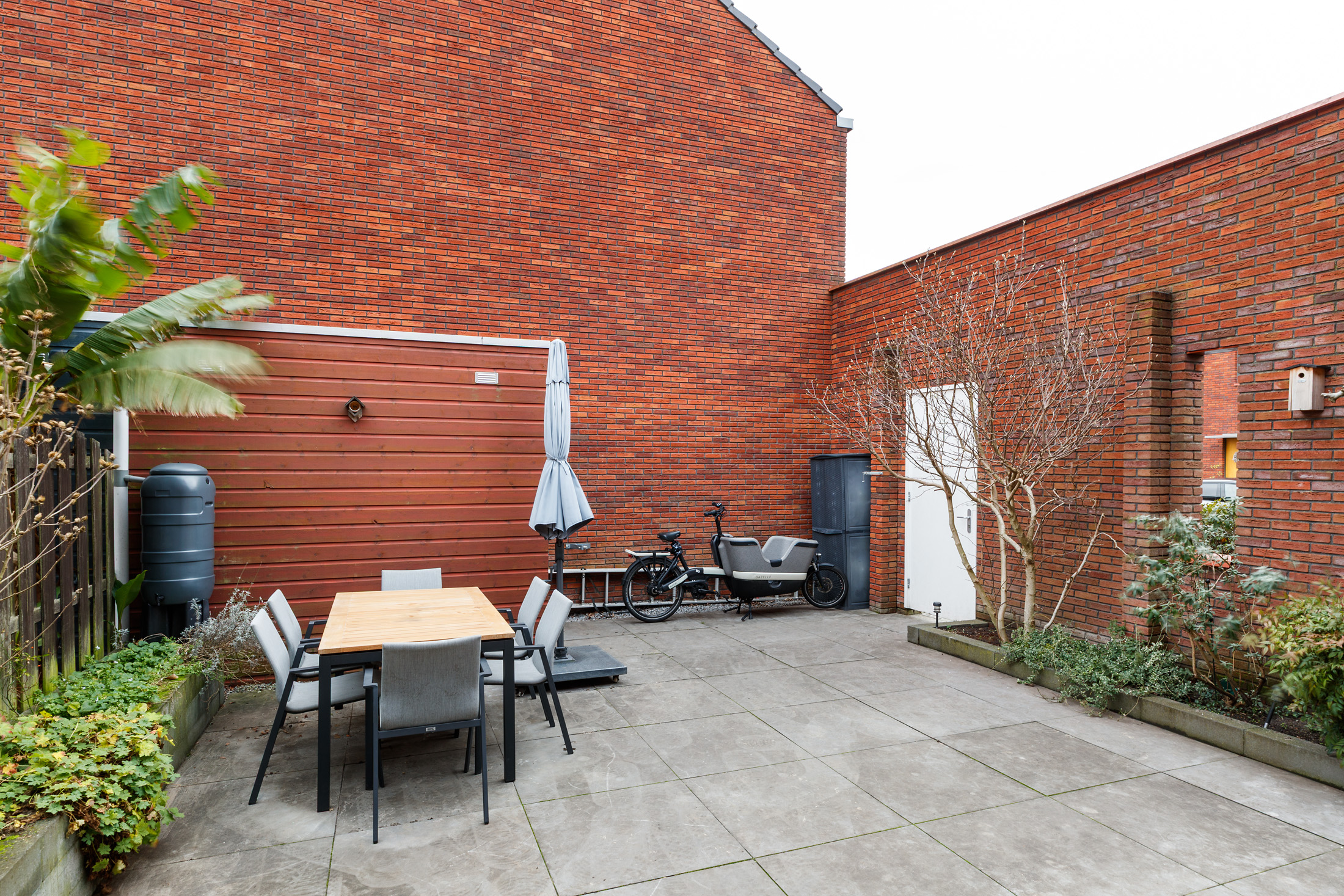 Via de openslaande deuren stap je zo de achtertuin in. Deze ligt op het zuidwesten, waardoor je ’s middags en ’s avonds lekker van de zon geniet. De tuin is in 2019 helemaal opnieuw aangelegd en voorzien van een nieuwe haag. Achterin vind je bovendien een praktische houten berging. Parkeren kan op de privé parkeerplaats op het binnenterrein.