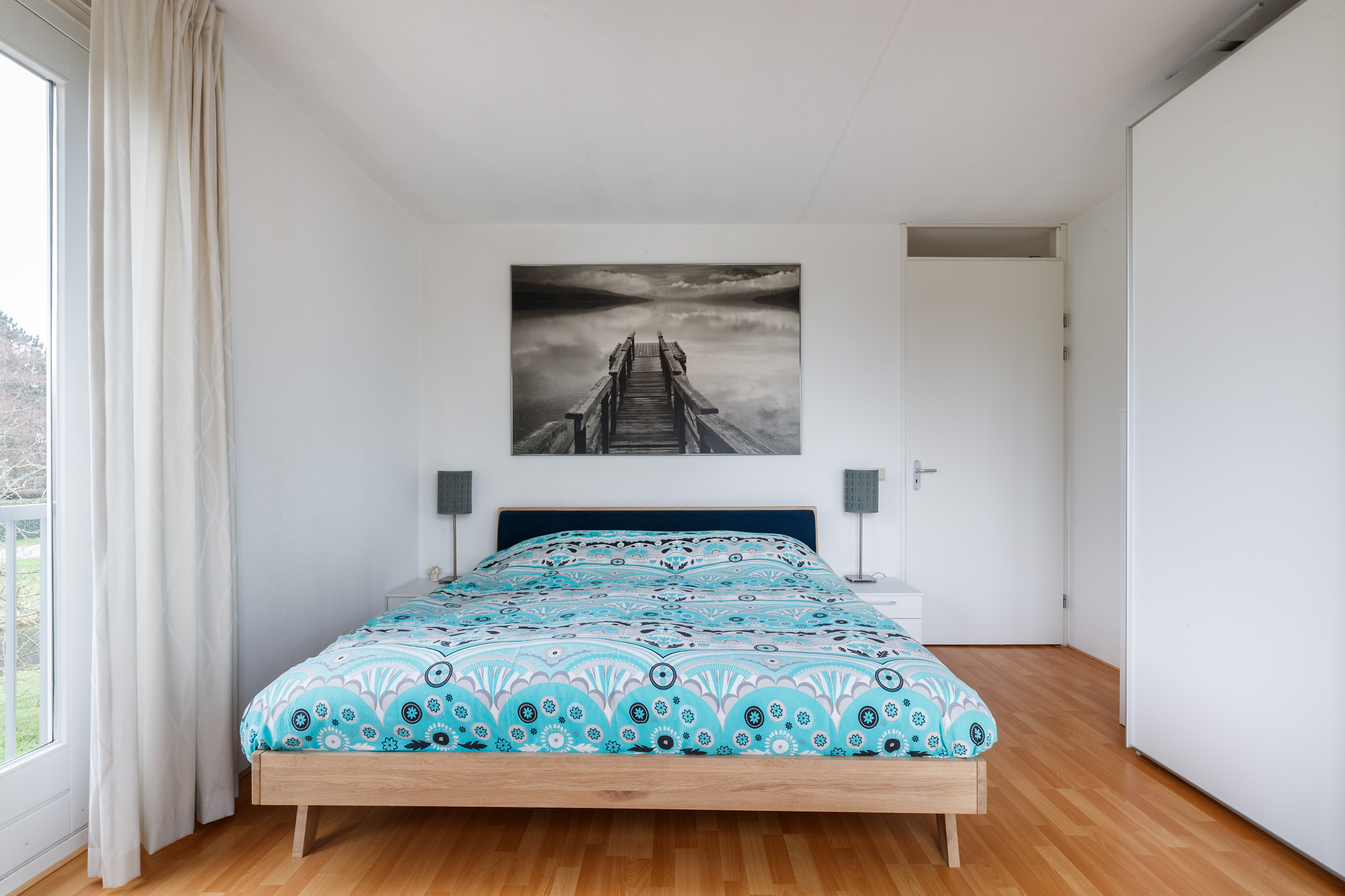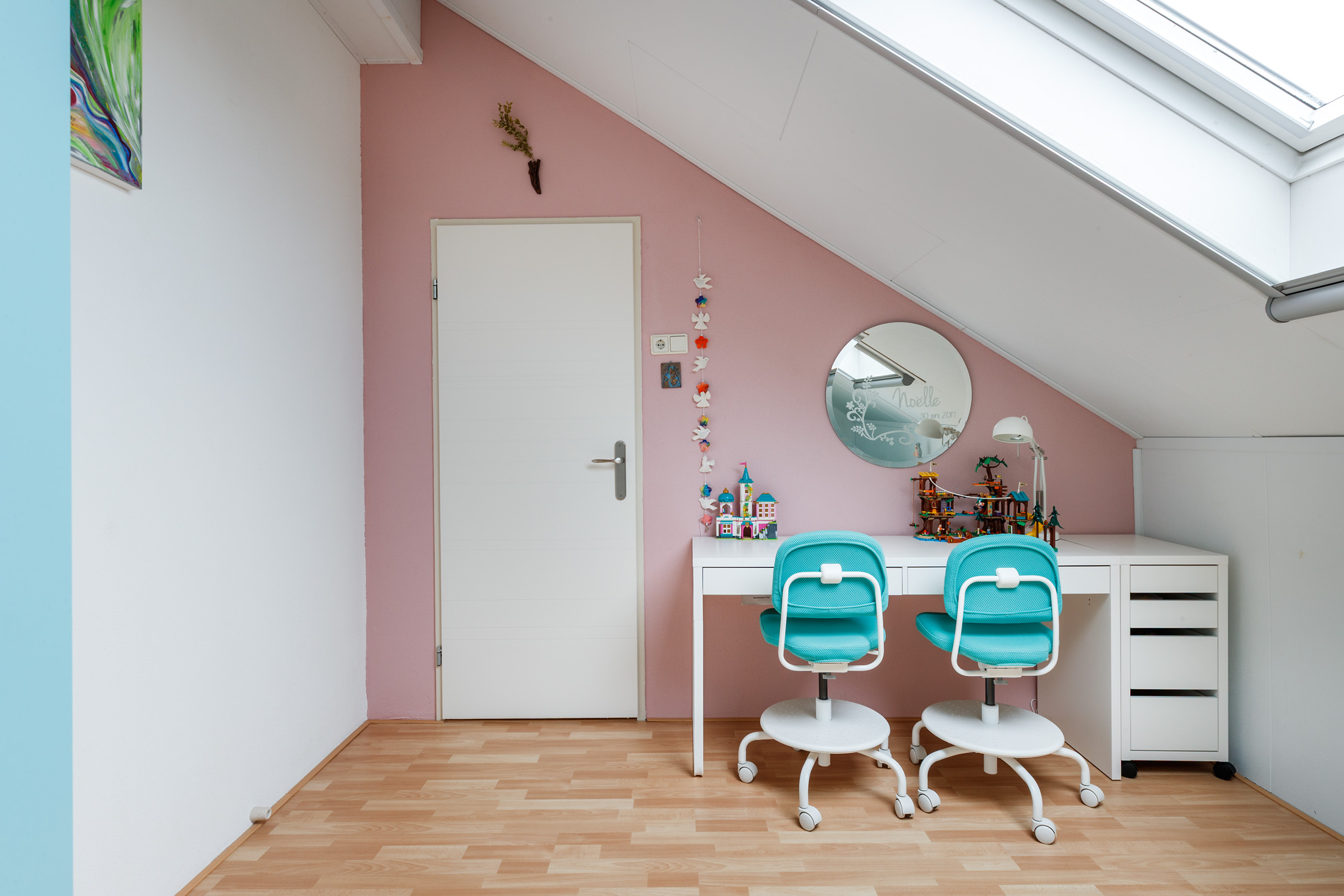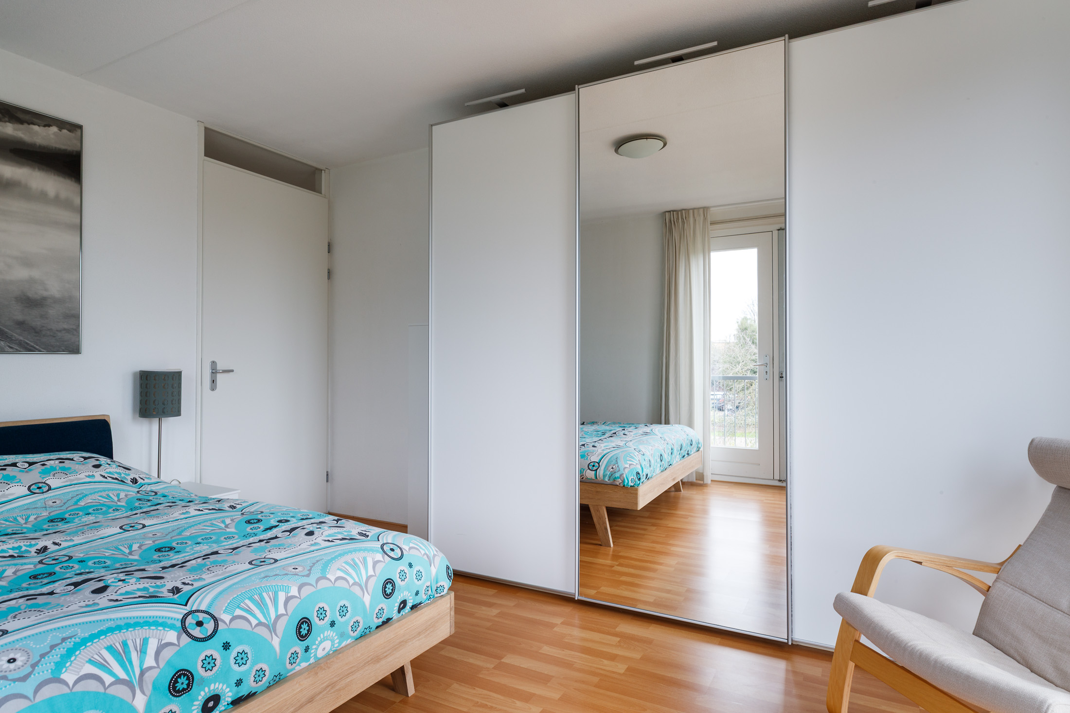 De tweede verdieping is bereikbaar via een vaste trap en biedt twee slaapkamers. Op de voorzolder is de wasruimte met aansluiting voor wasmachine en droger. Beide slaapkamers zijn voorzien van een laminaatvloer, schilderwerk wanden en Velux Integra-dakramen, die zorgen voor veel licht. De dakramen zijn elektrisch bedienbaar en beschikken aan de achterzijde over een regensensor. Ook hier zijn rolhorren en – gordijnen aanwezig.