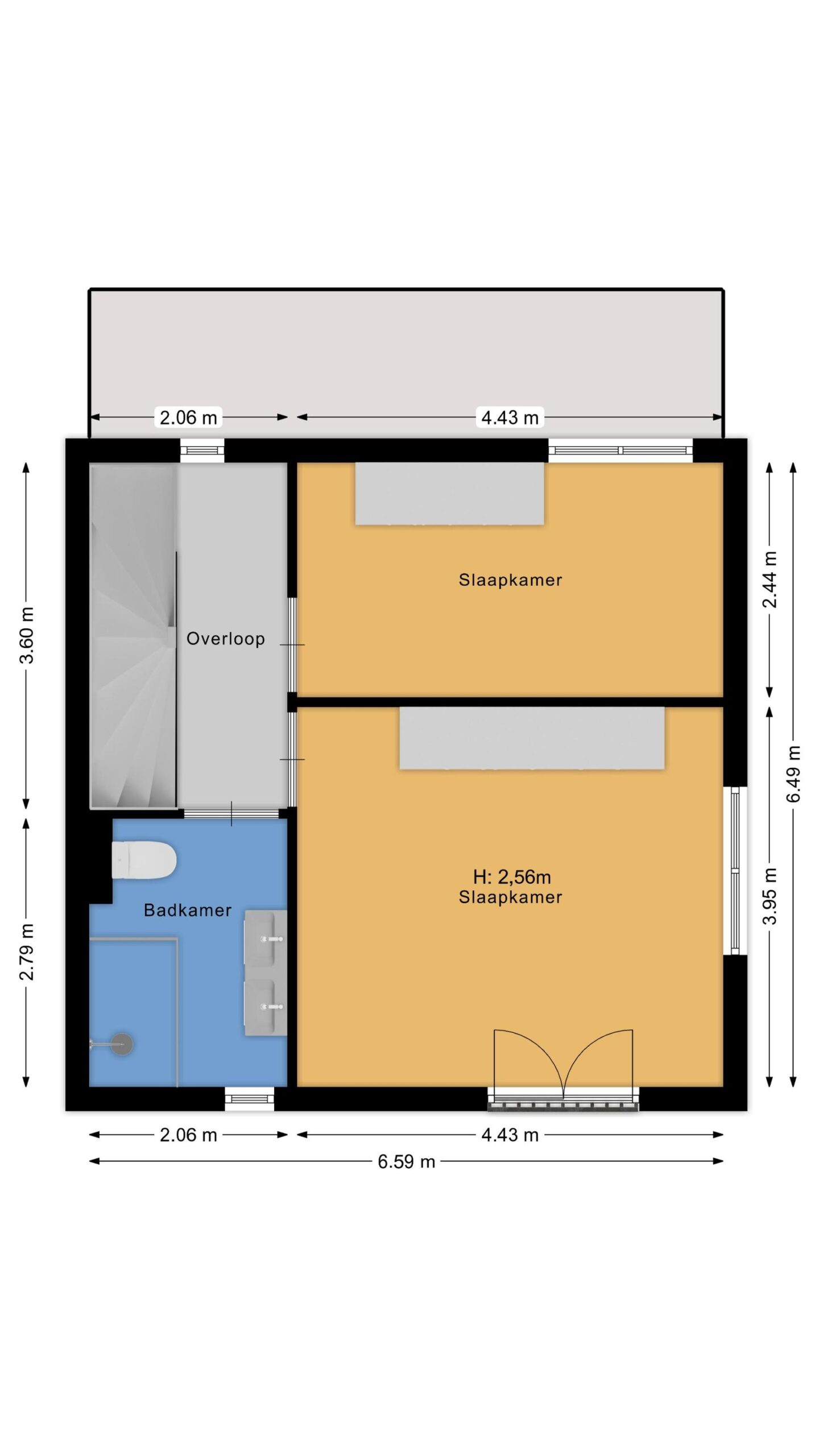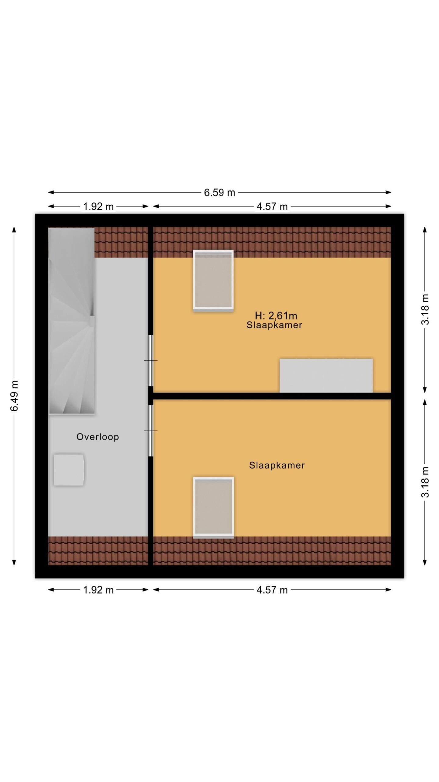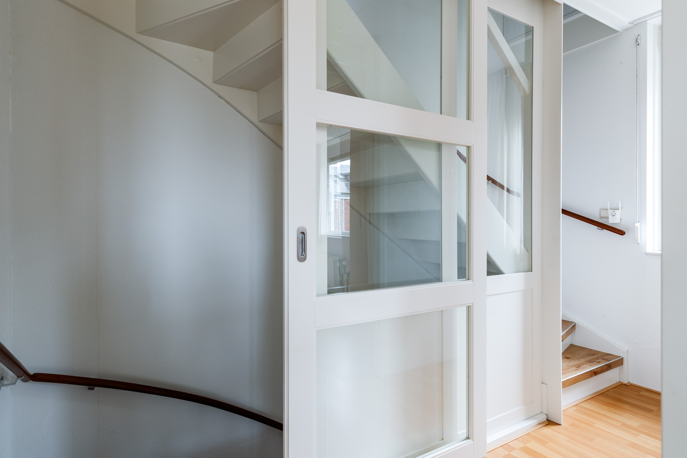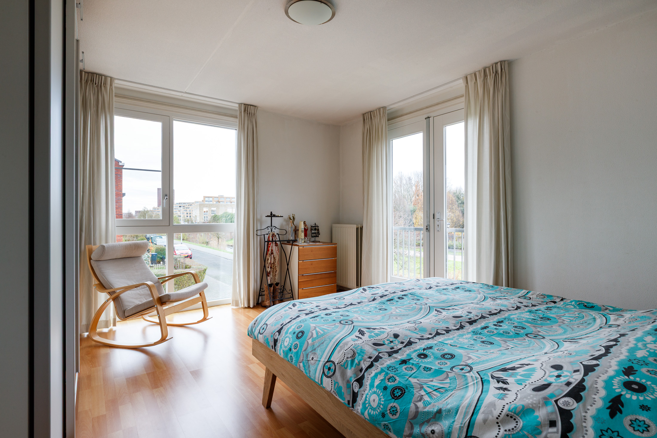 De tweede verdieping is bereikbaar via een vaste trap en biedt twee slaapkamers. Op de voorzolder is de wasruimte met aansluiting voor wasmachine en droger. Beide slaapkamers zijn voorzien van een laminaatvloer, schilderwerk wanden en Velux Integra-dakramen, die zorgen voor veel licht. De dakramen zijn elektrisch bedienbaar en beschikken aan de achterzijde over een regensensor. Ook hier zijn rolhorren en – gordijnen aanwezig.