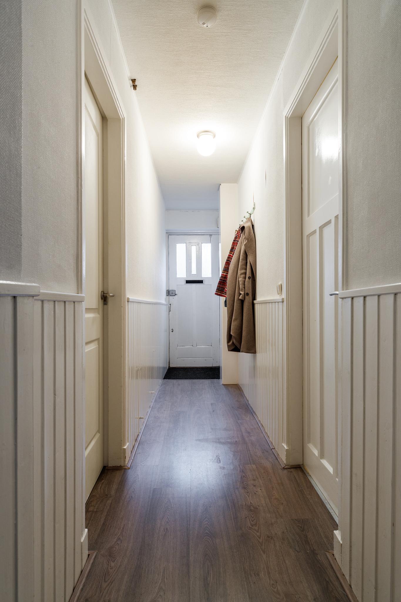 Entree, hal met garderobe. De woon-/eetkamer heeft een laminaatvloer, gestuukte wanden en een gestuukt plafond. De keuken is aan de achterzijde gelegen en heeft een 4-pits gaskookplaat, RVS afzuigkap en oven. Vanuit de keuken is de kelder te bereiken. De kelder is ca. 1.75 m hoog en is ideaal te gebruiken voor de voorraad en/of opslag.